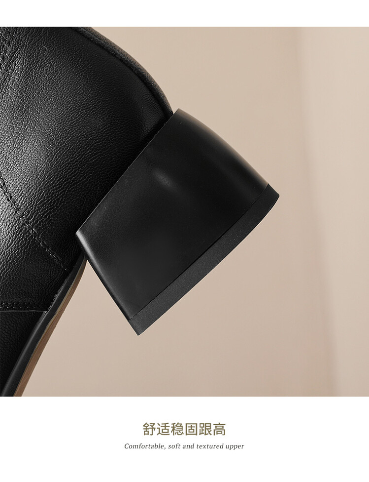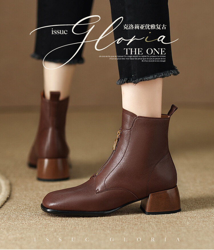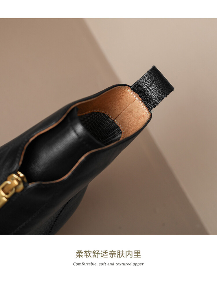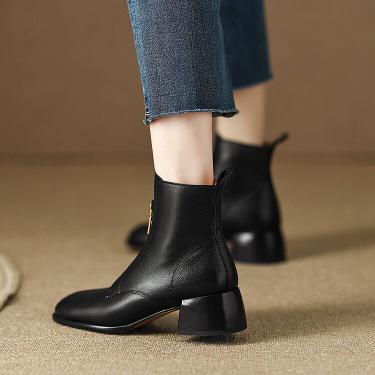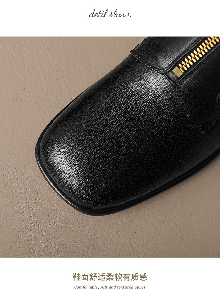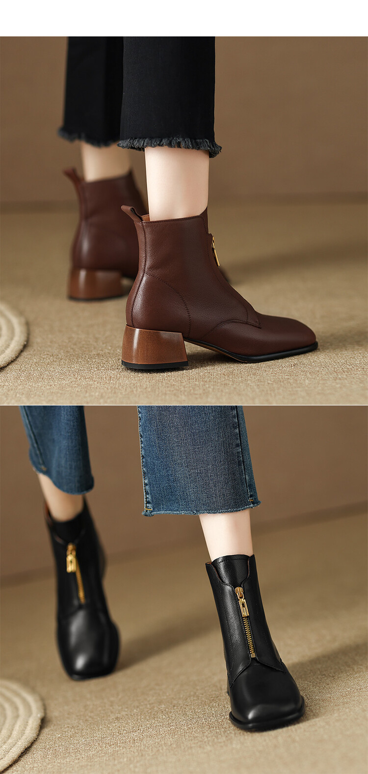 【预售5天】秋冬加绒前拉链方头粗跟时装短靴法式小羊皮马丁靴女LD&6132