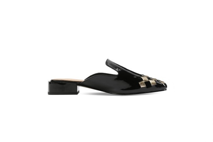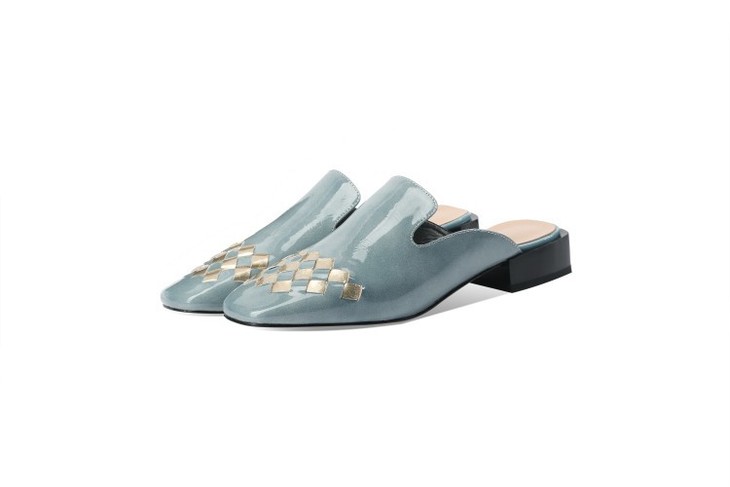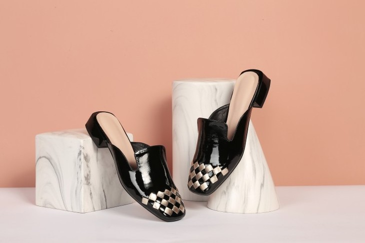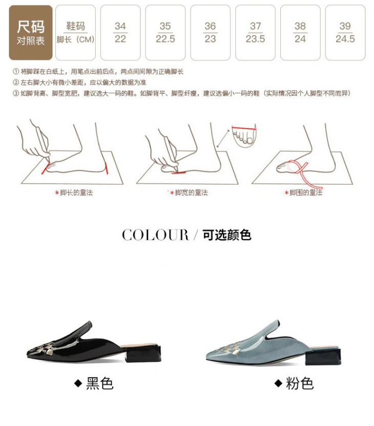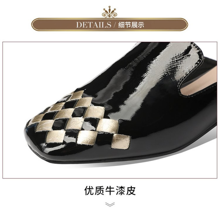 OLD-207真皮包头中跟亮皮方头后空粗跟百搭拖鞋