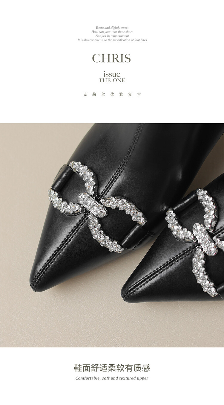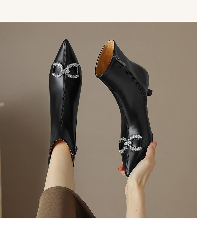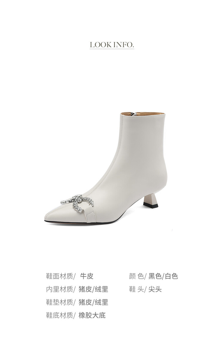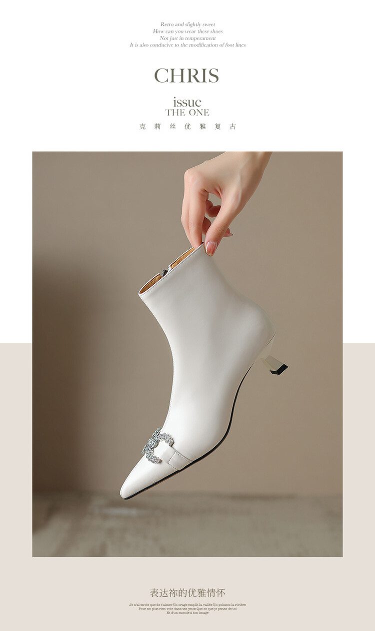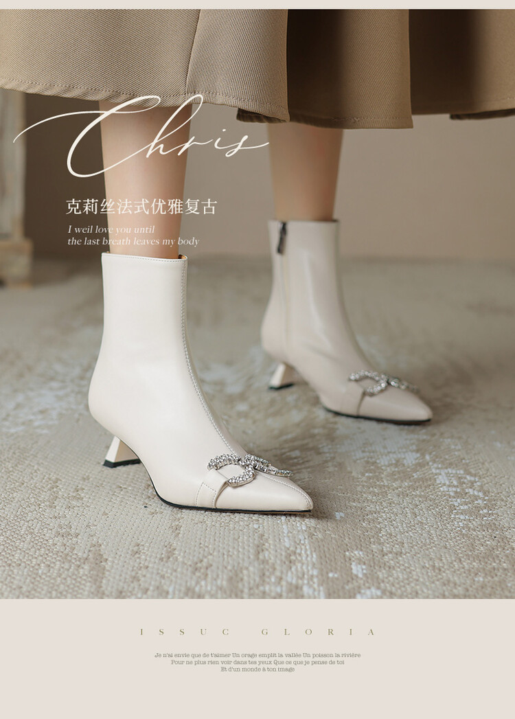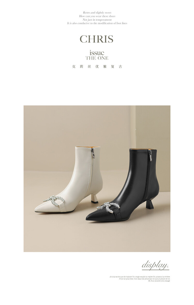 【预售5天】法式优雅水钻扣尖头猫跟短靴女新时尚细跟软皮瘦瘦靴HGXY&HG185