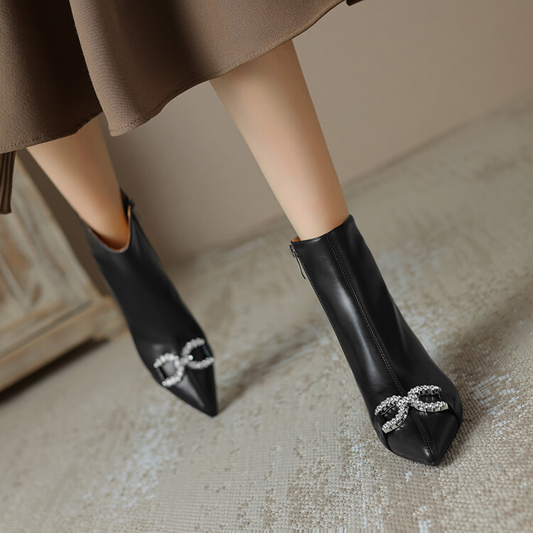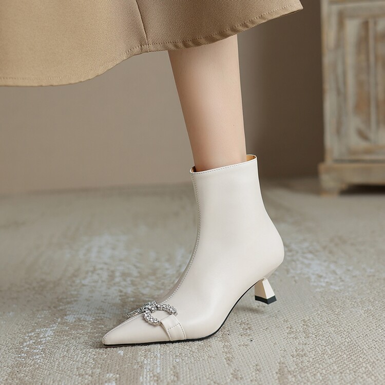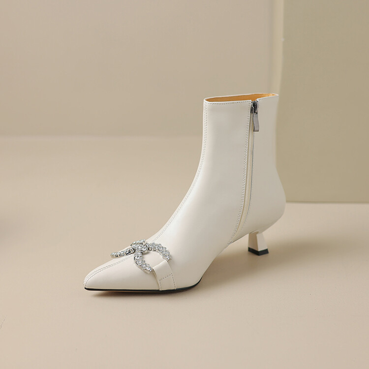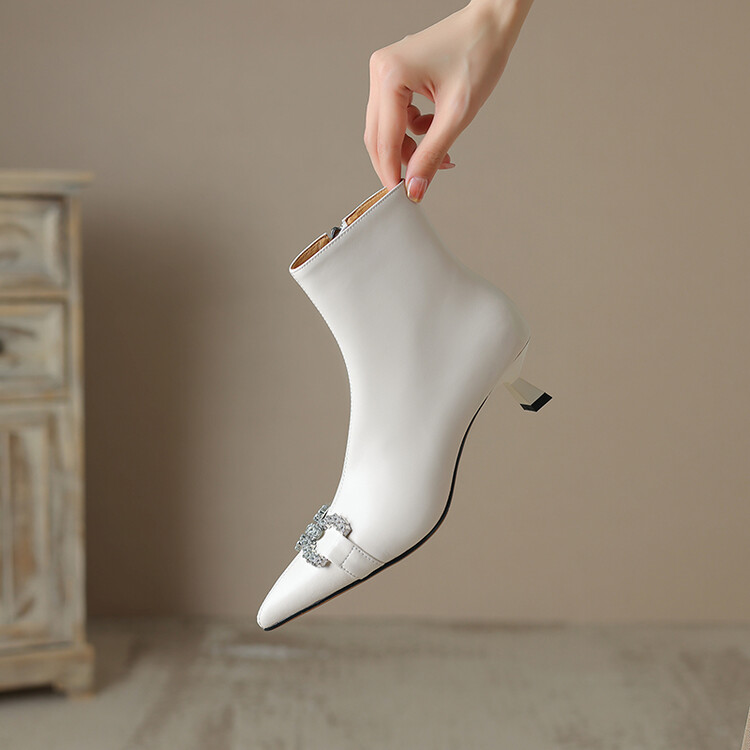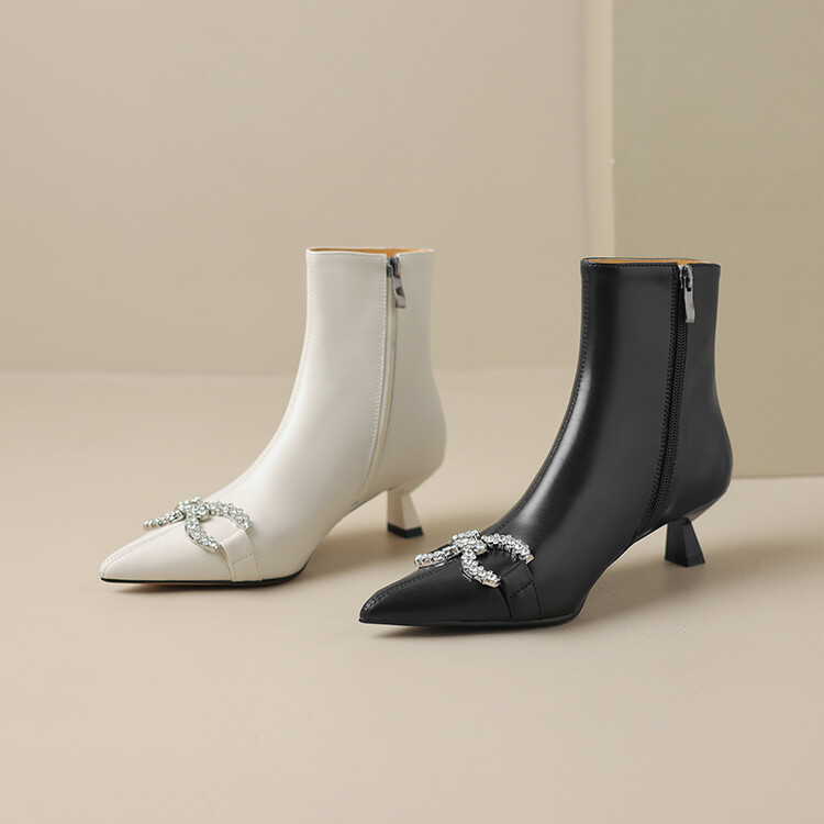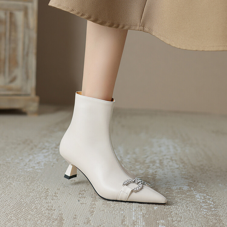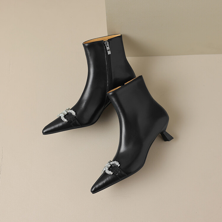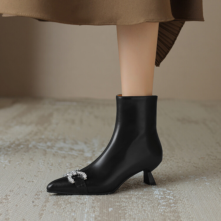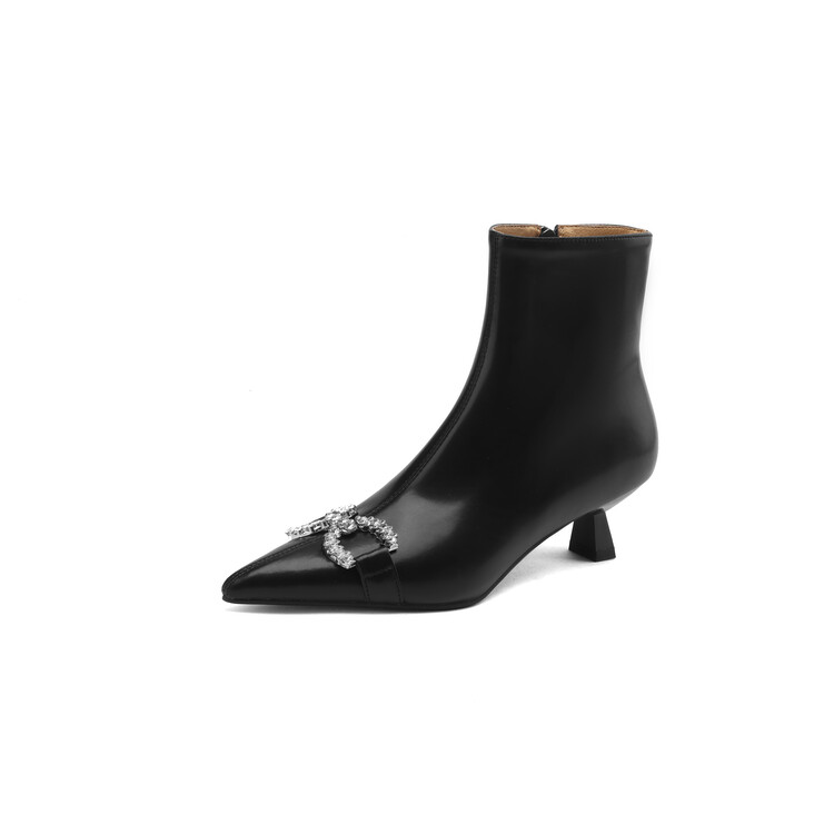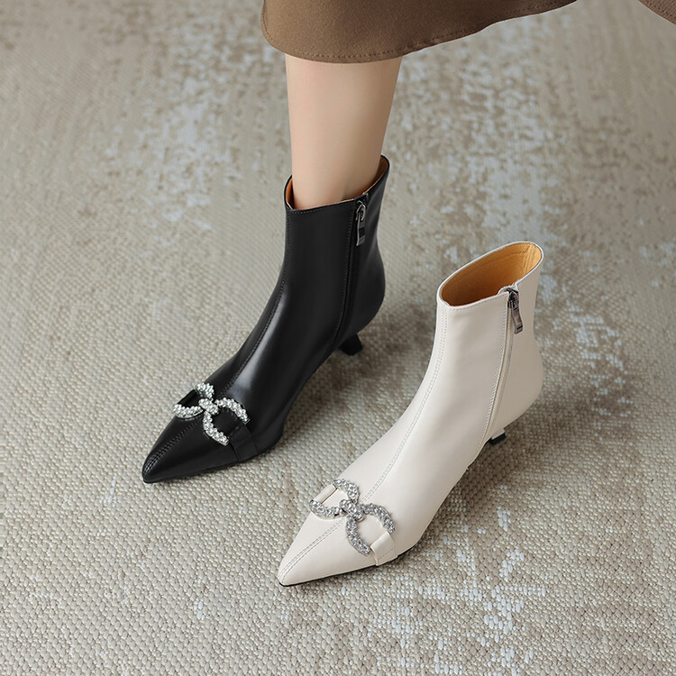 【预售5天】法式优雅水钻扣尖头猫跟短靴女新时尚细跟软皮瘦瘦靴HGXY&HG185
