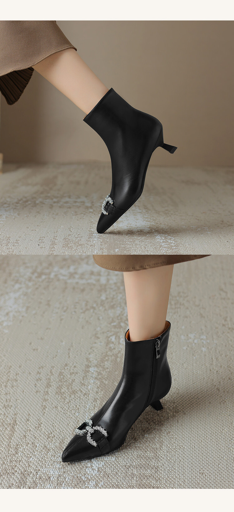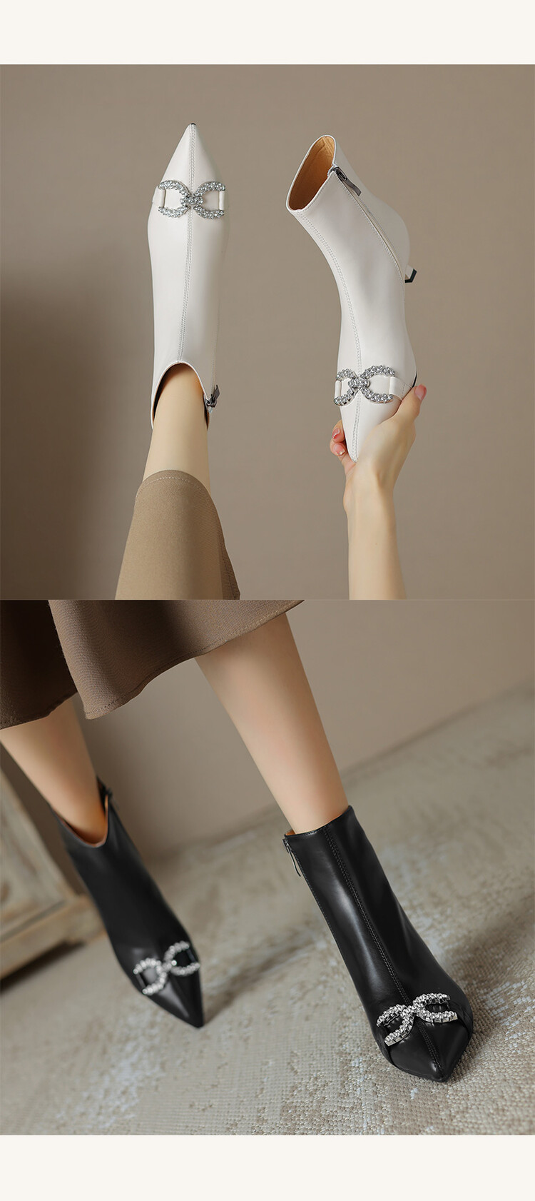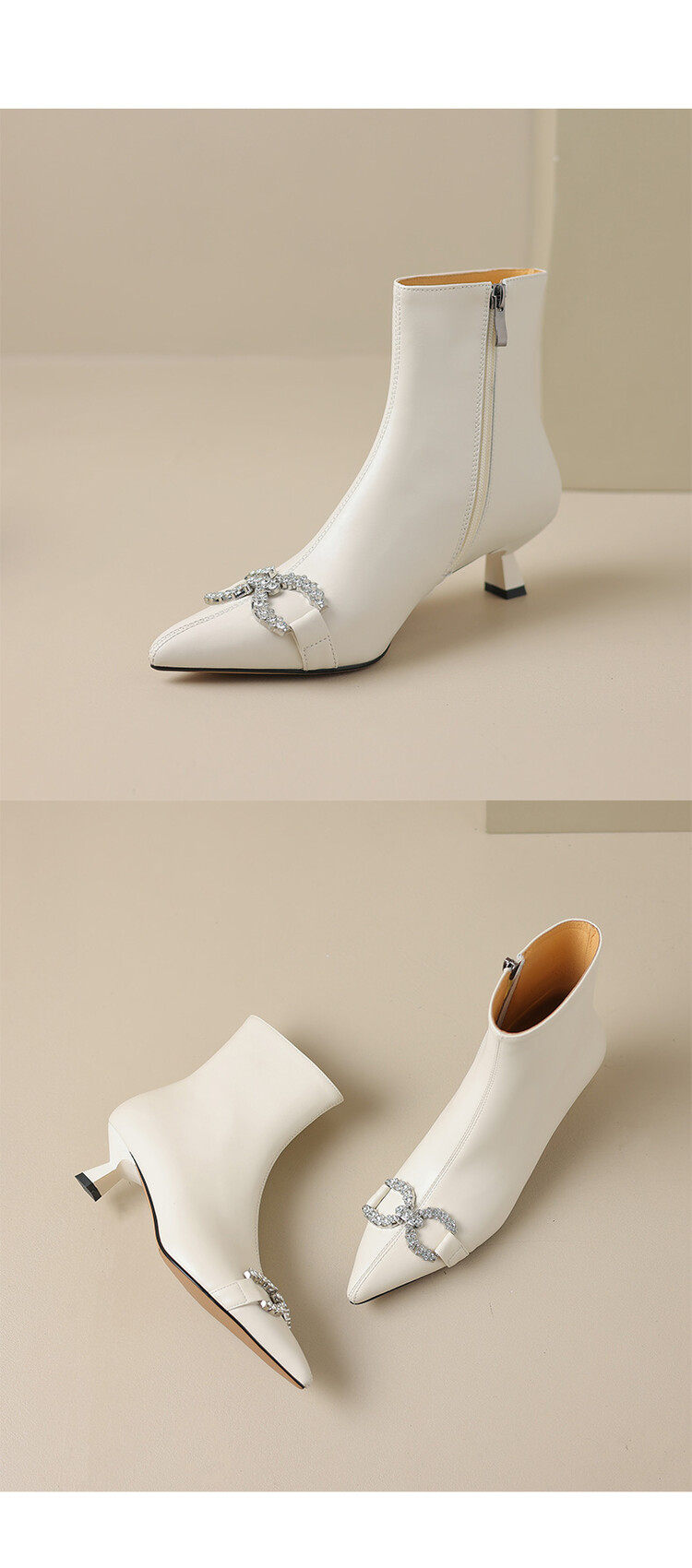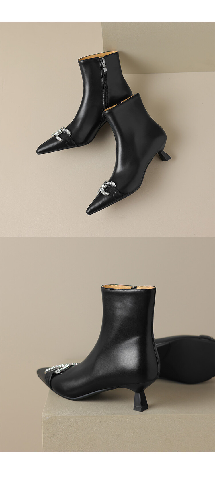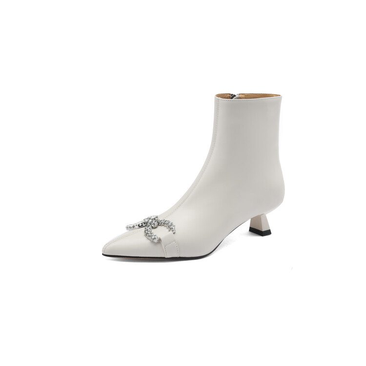 【预售5天】法式优雅水钻扣尖头猫跟短靴女新时尚细跟软皮瘦瘦靴HGXY&HG185