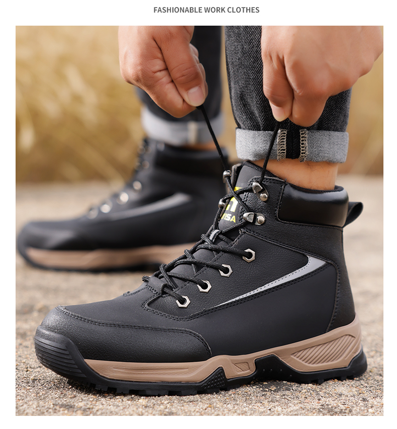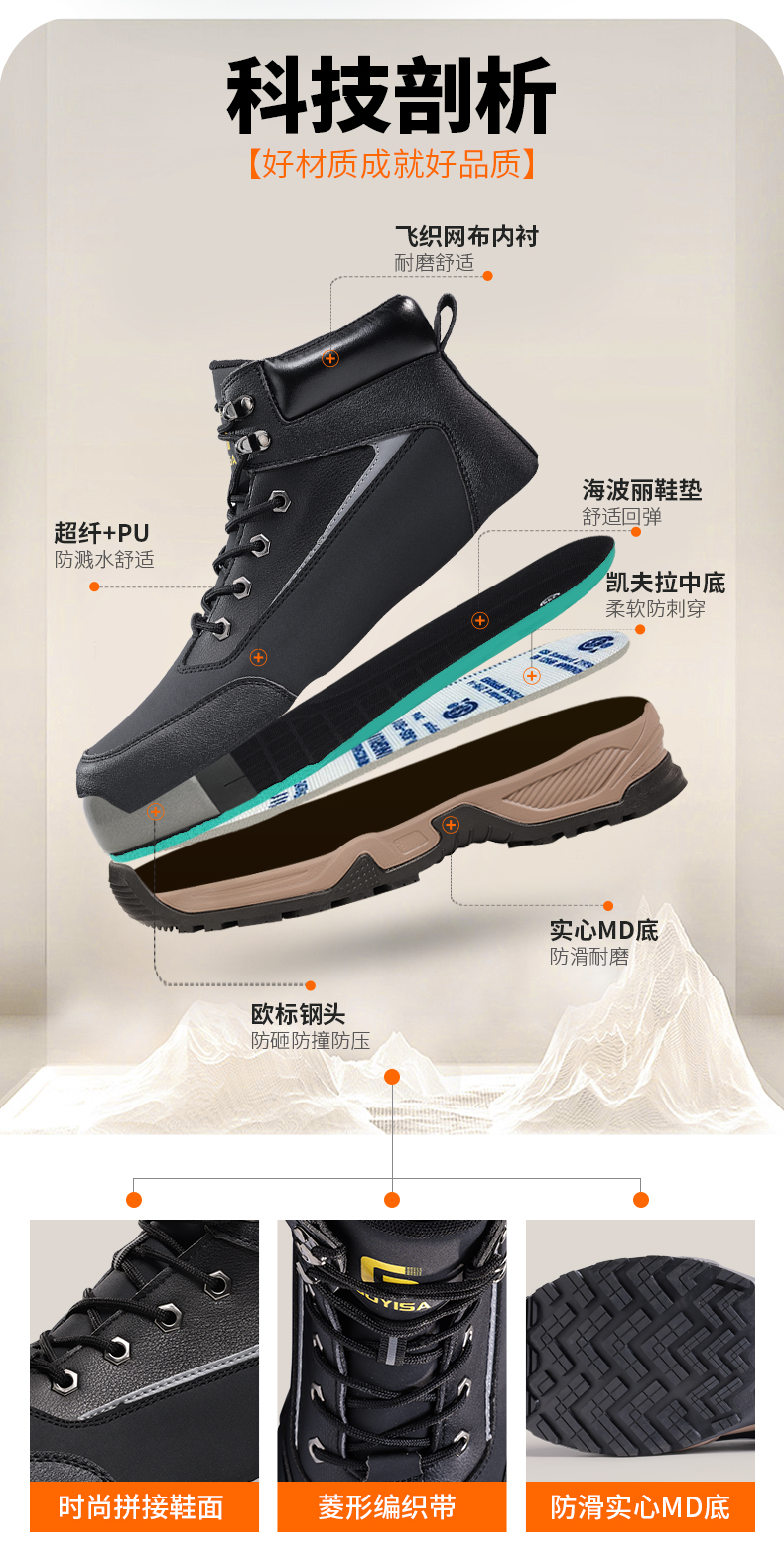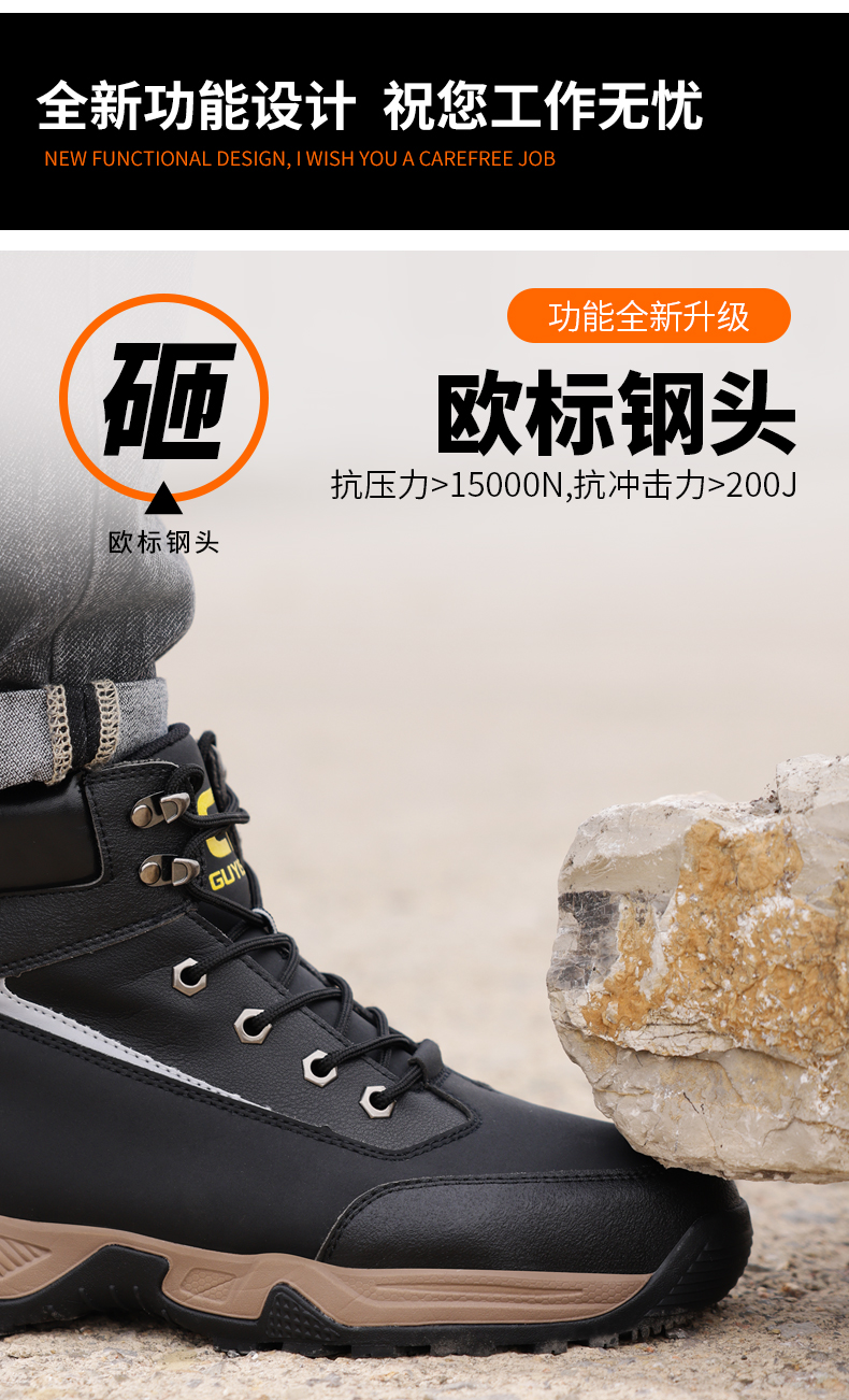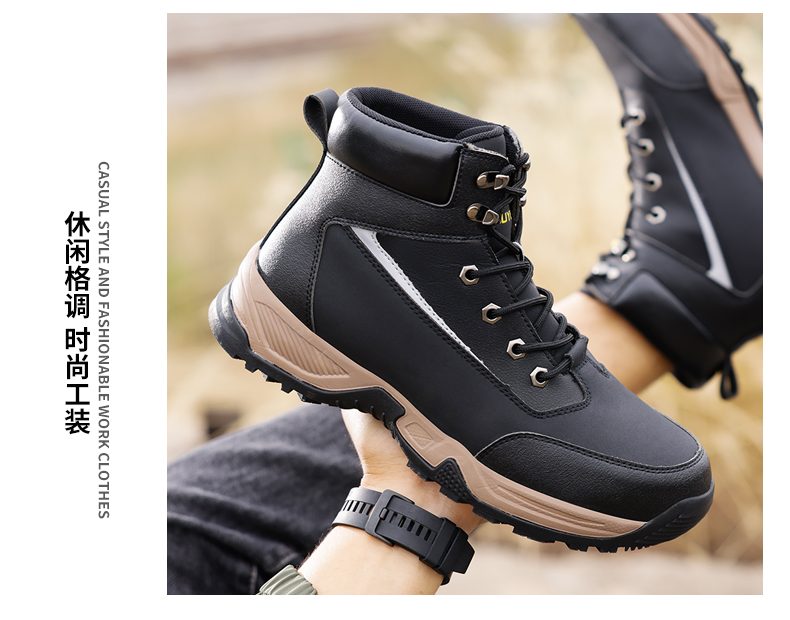 新品防滑防水高帮秋冬劳保鞋男安全工作鞋防砸钢包头防刺穿耐磨防护功能鞋不加绒