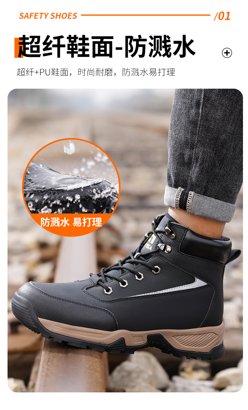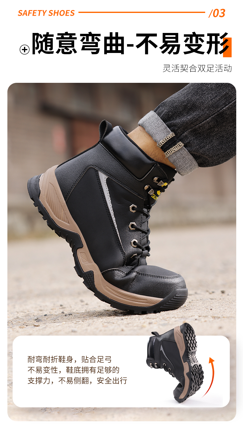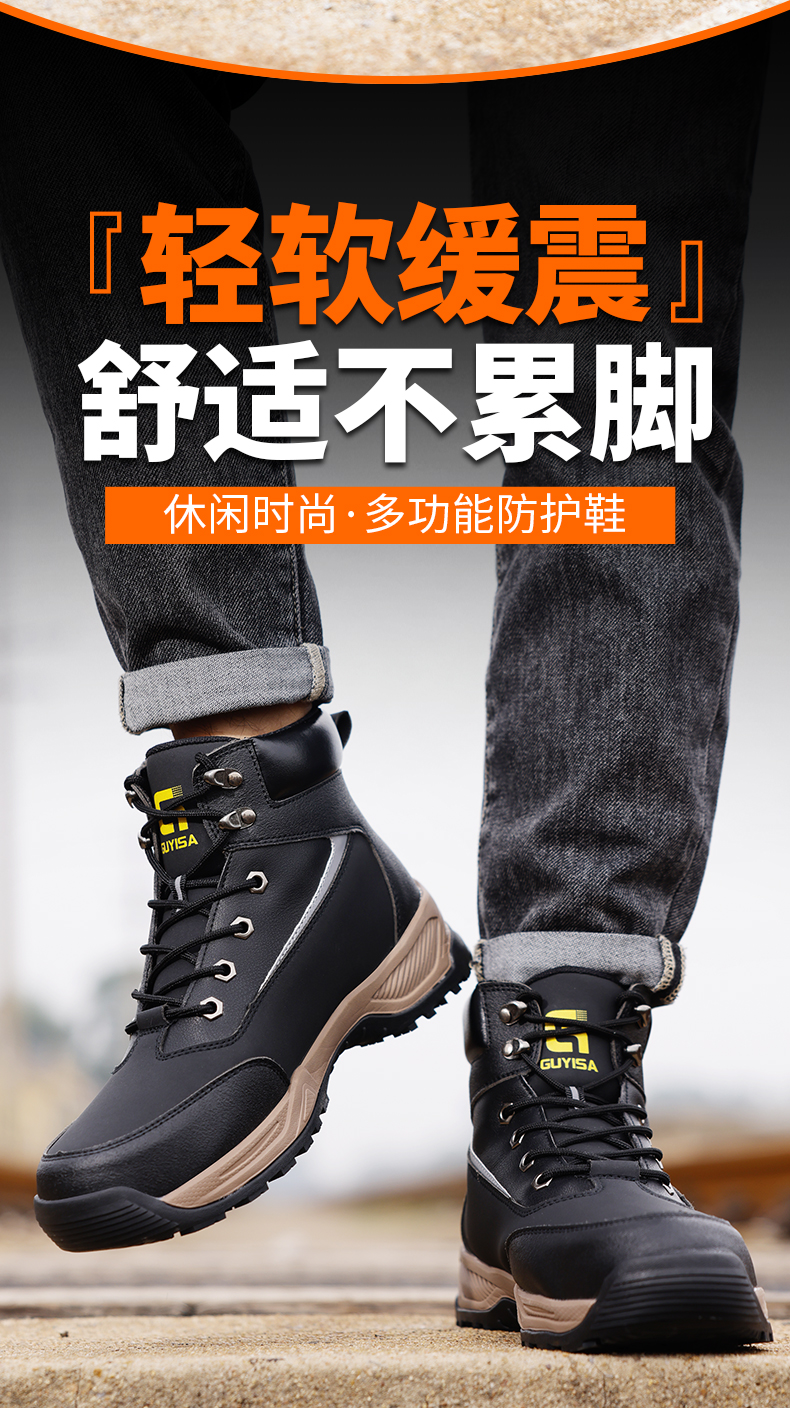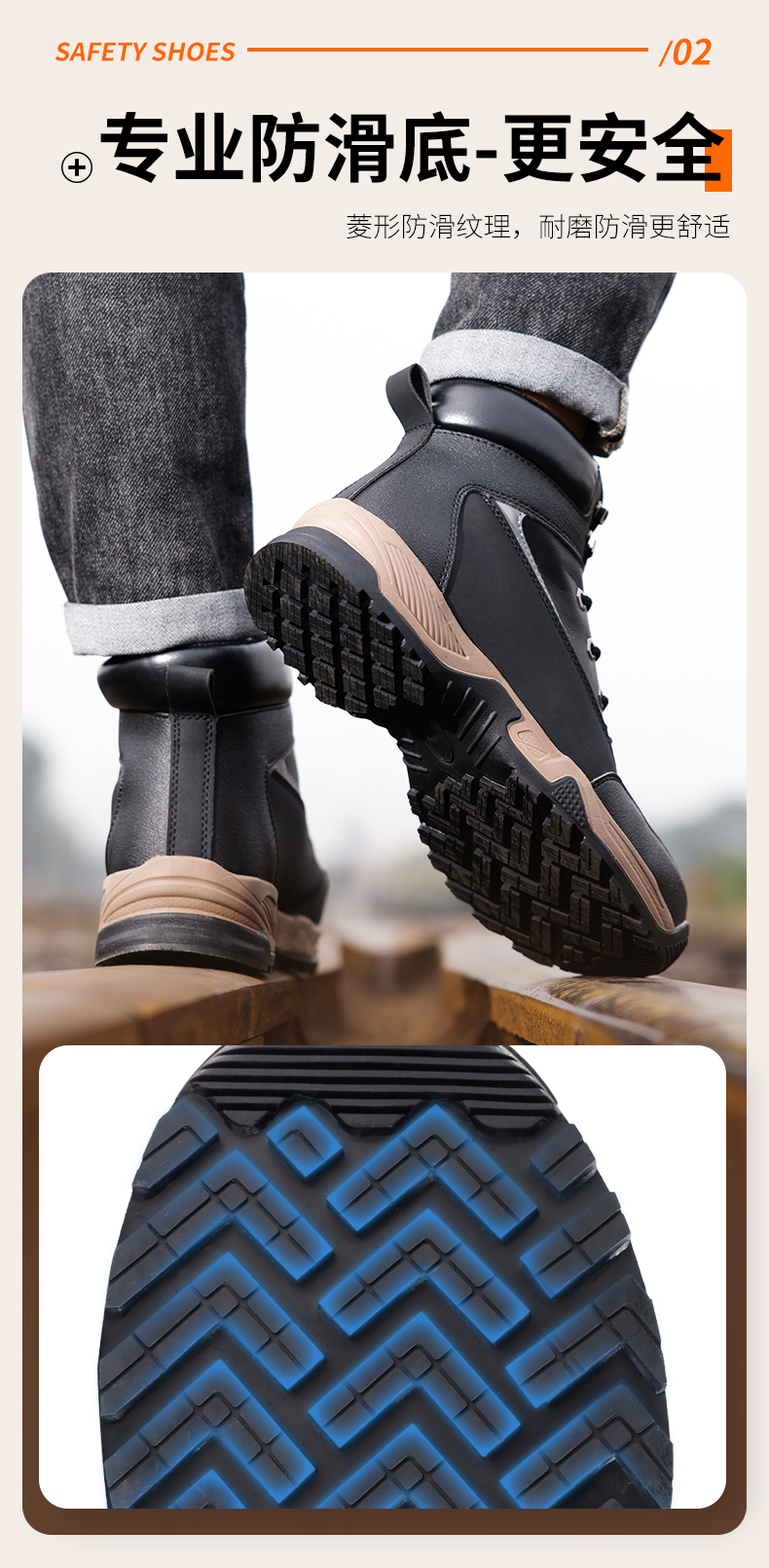 新品防滑防水高帮秋冬劳保鞋男安全工作鞋防砸钢包头防刺穿耐磨防护功能鞋不加绒