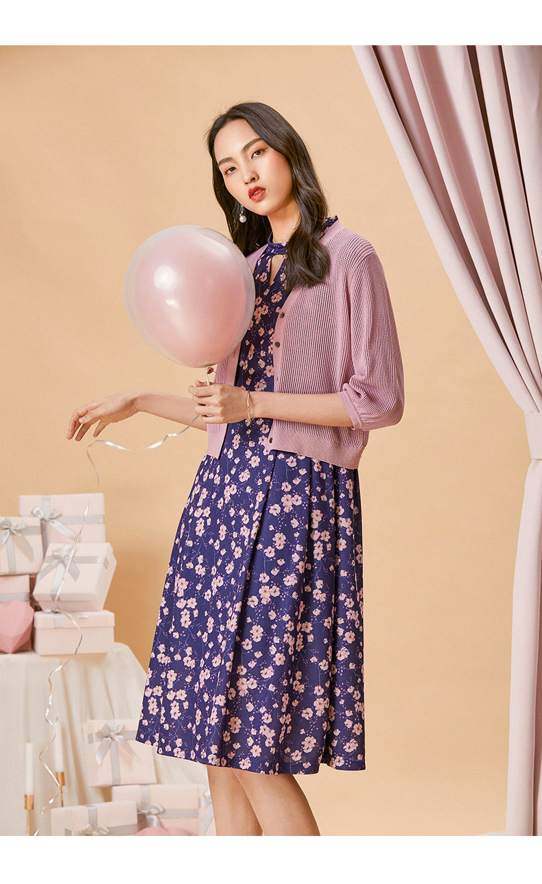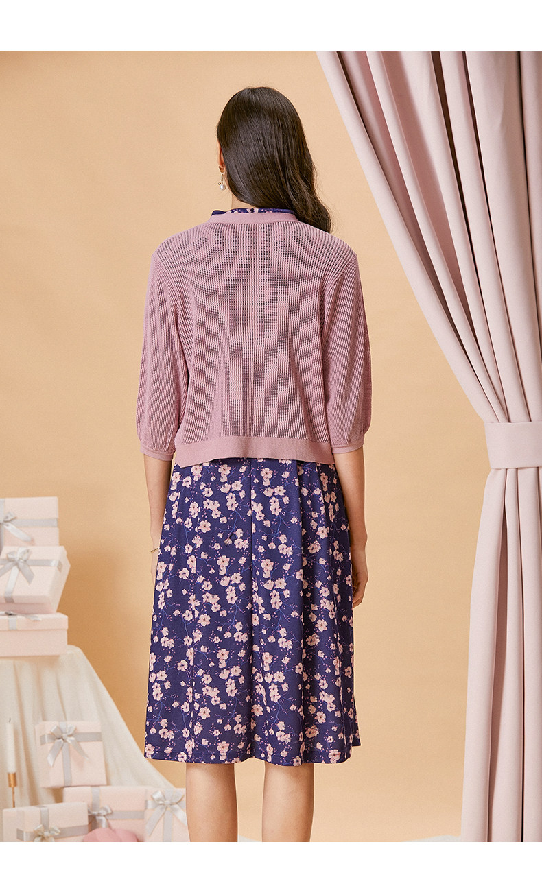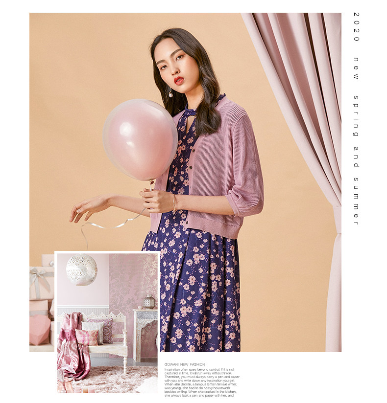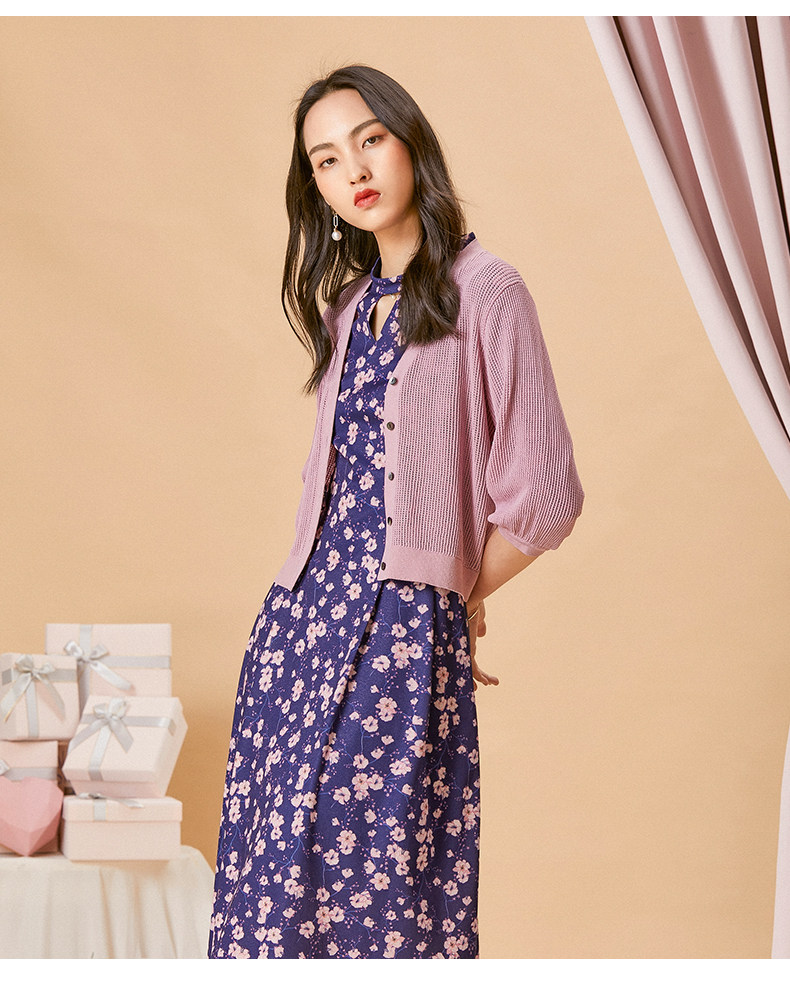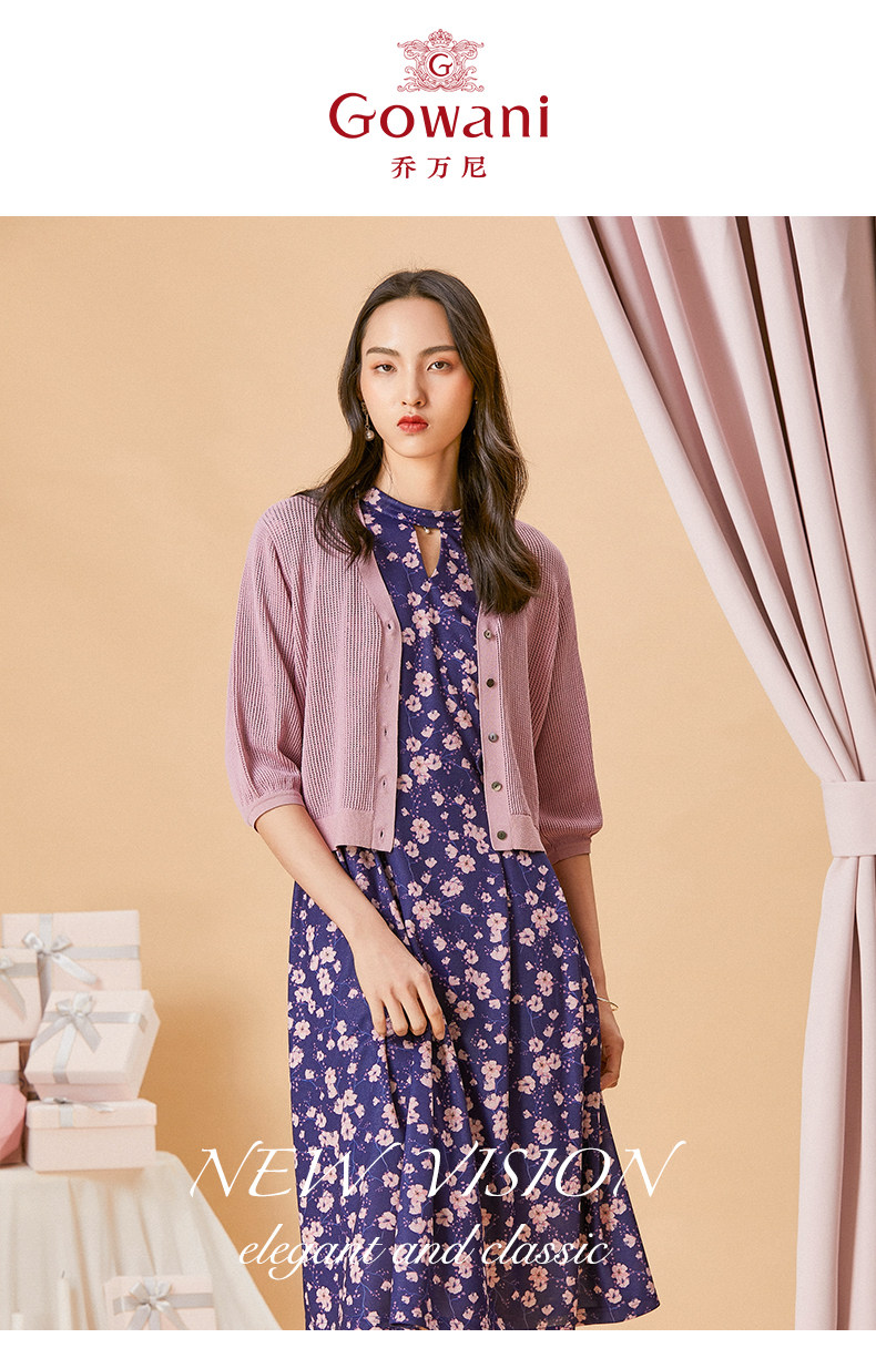 乔万尼夏季新款薄款开衫宽松显瘦纯色五分袖针织衫短款ES2M225