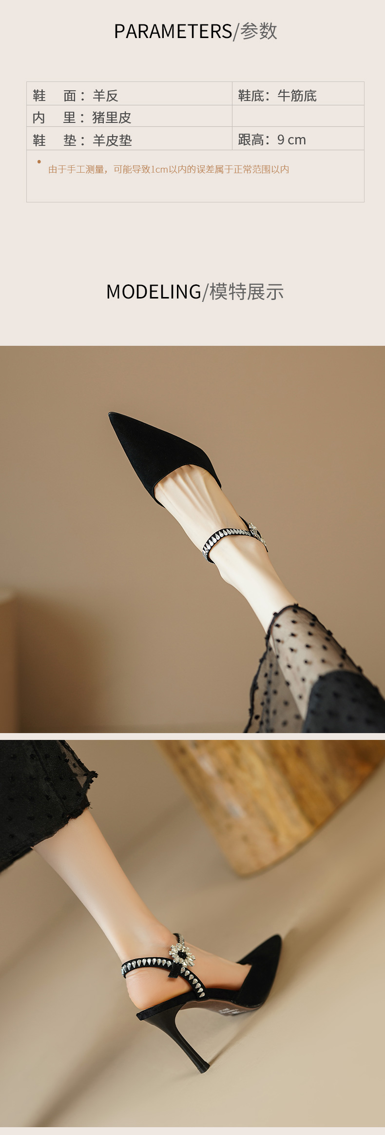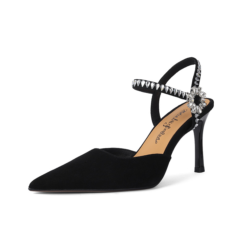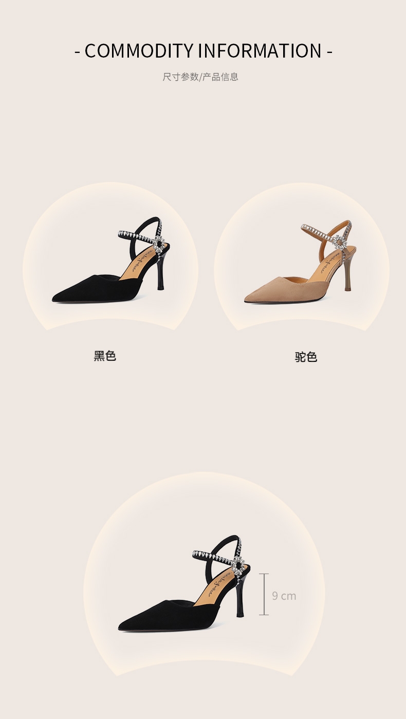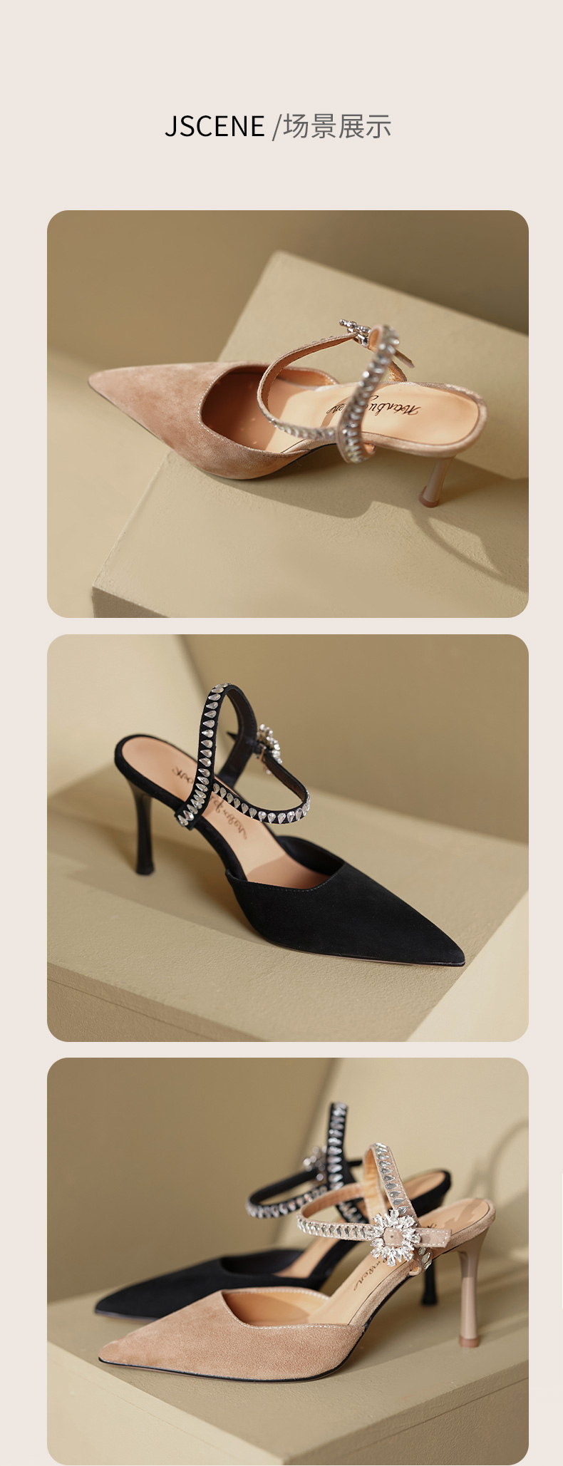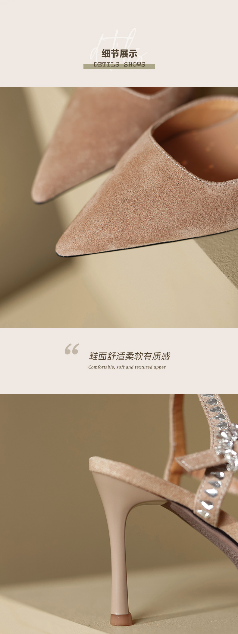 【预售5天】羊翻皮包头后空凉鞋女夏季新款女鞋欧美尖头水钻一字扣高跟鞋FDJ&YC--088