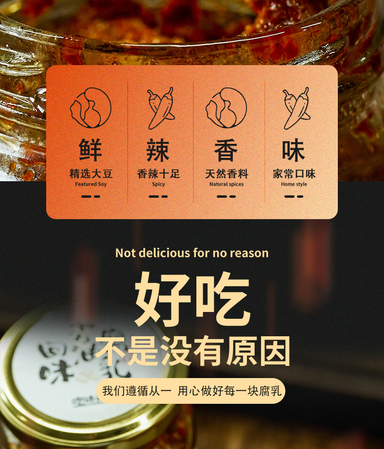 【售后标准】:签收48小时内有破瓶拍照给客服24小时内补发。由于腐乳发酵以后软糯的特性,极个别订单在发货过程中快递暴力丢件导致腐乳易碎或卖相一般但不影响食用,不在售后范围。