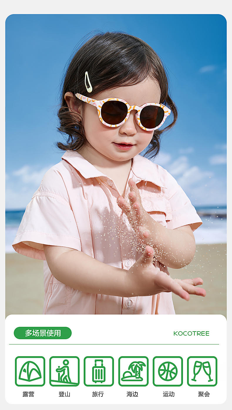 KK树宝宝墨镜不伤眼睛婴儿眼镜小月龄幼儿太阳镜偏光防紫外线新款杂花生树圆框太阳镜