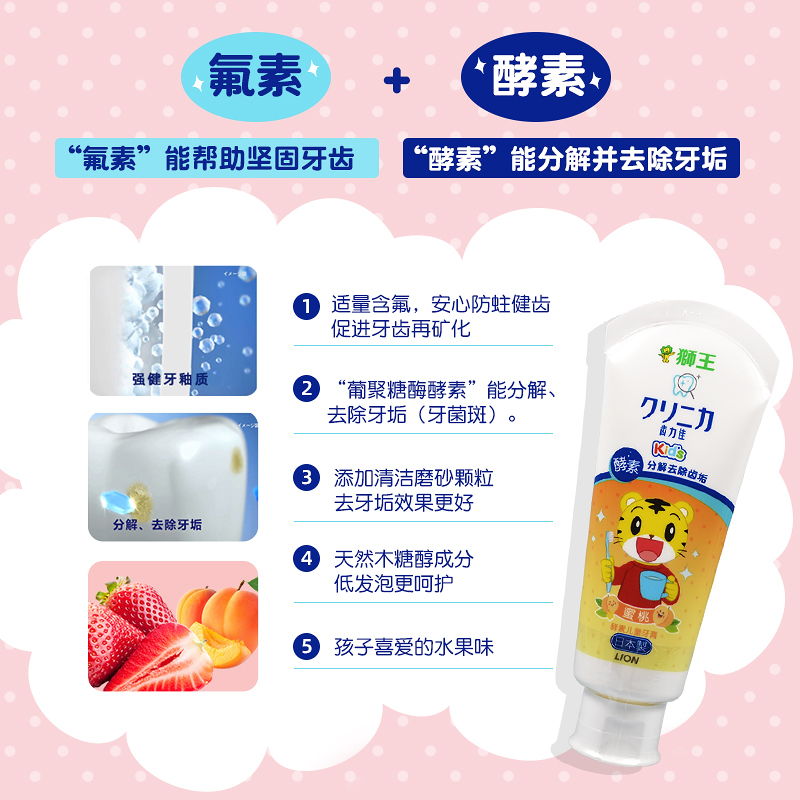 【品牌直发】包邮套装:日本狮王巧虎酵素防蛀去渍儿童牙膏牙刷套装
