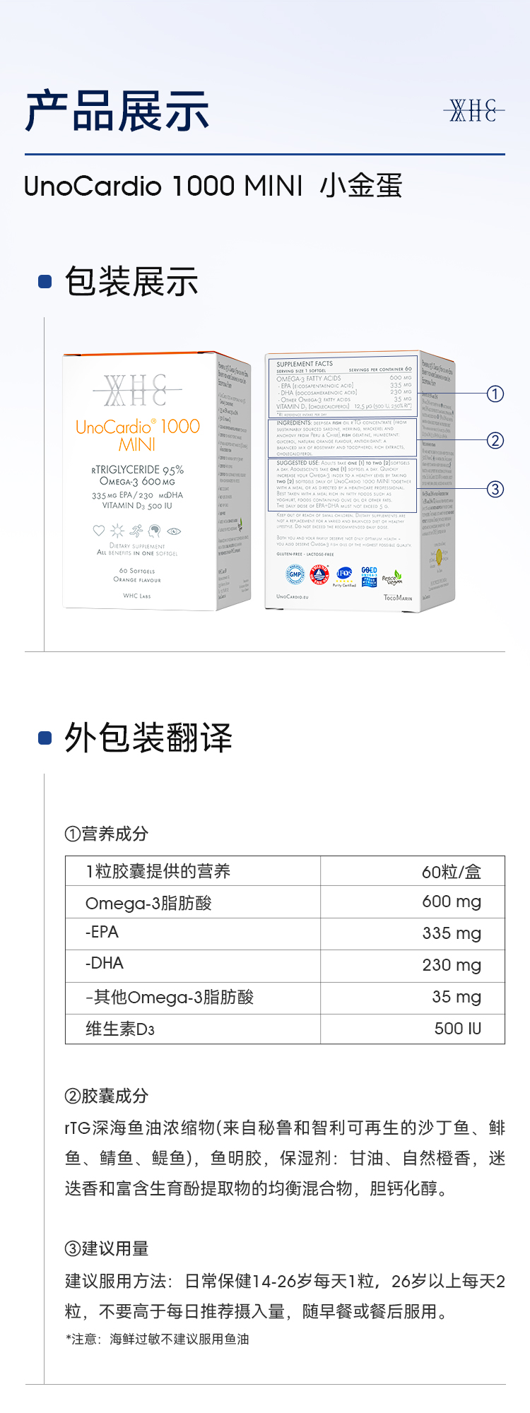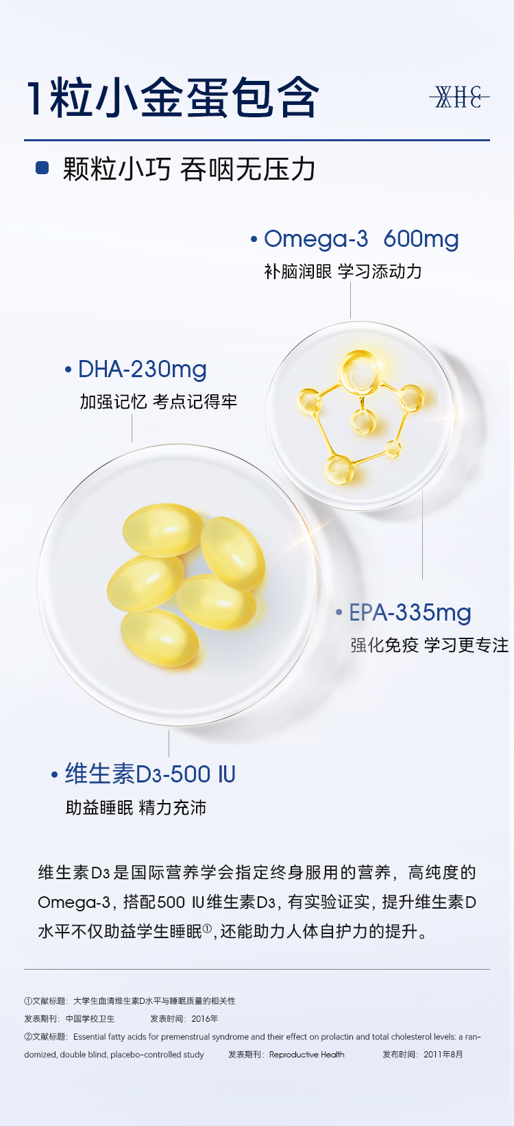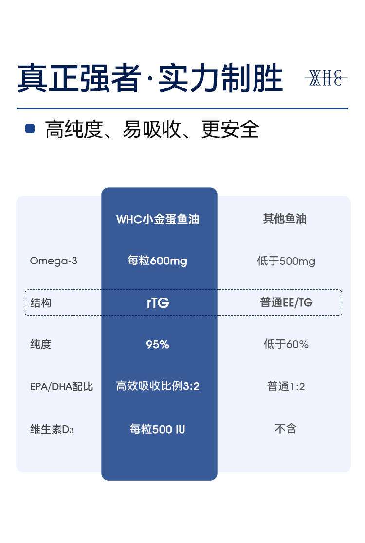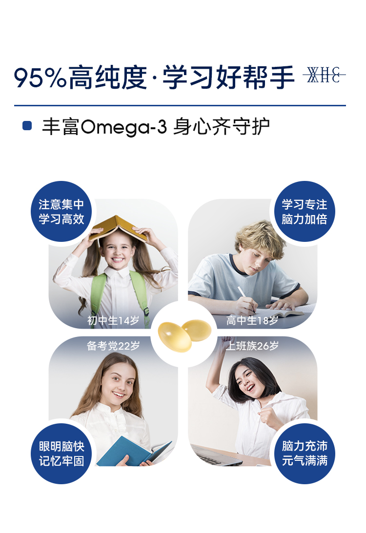 青少年鱼油|WHC小金蛋鱼油Omega3高纯度95% rTG结构补脑记忆力青少年学生备考