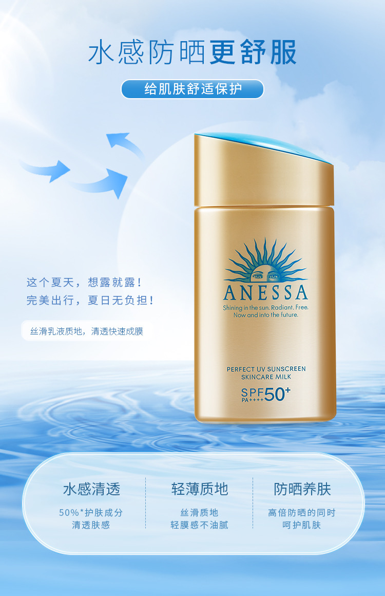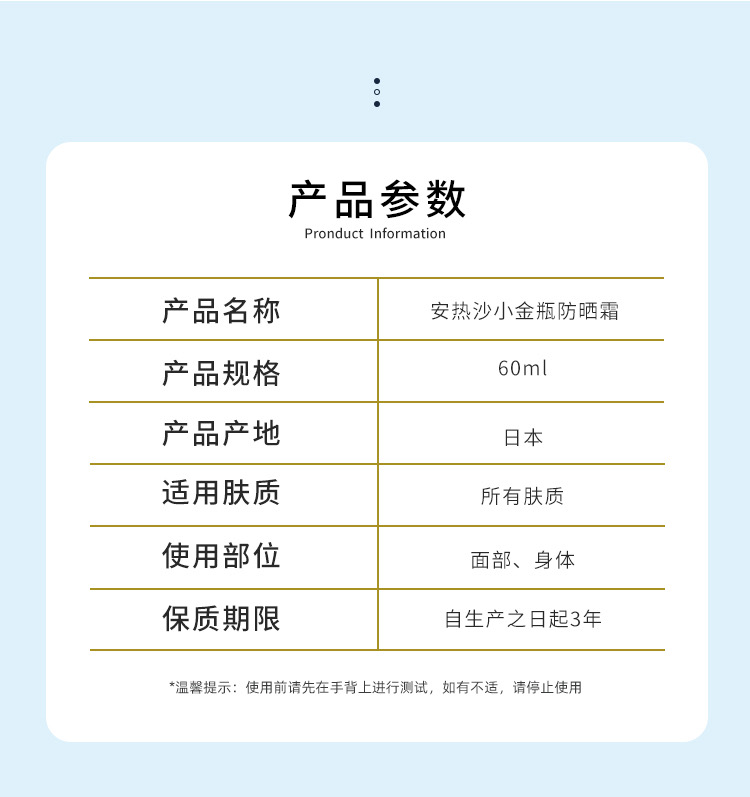 【保税仓直邮】安热沙 小金瓶防晒霜 耐晒清爽防晒SPF50+ 水能户外防晒乳60ml