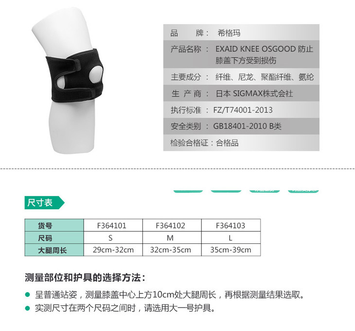 【日本进口SIGMAX】护具护膝黑色男女运动透气EXAID KNEE Osgood
