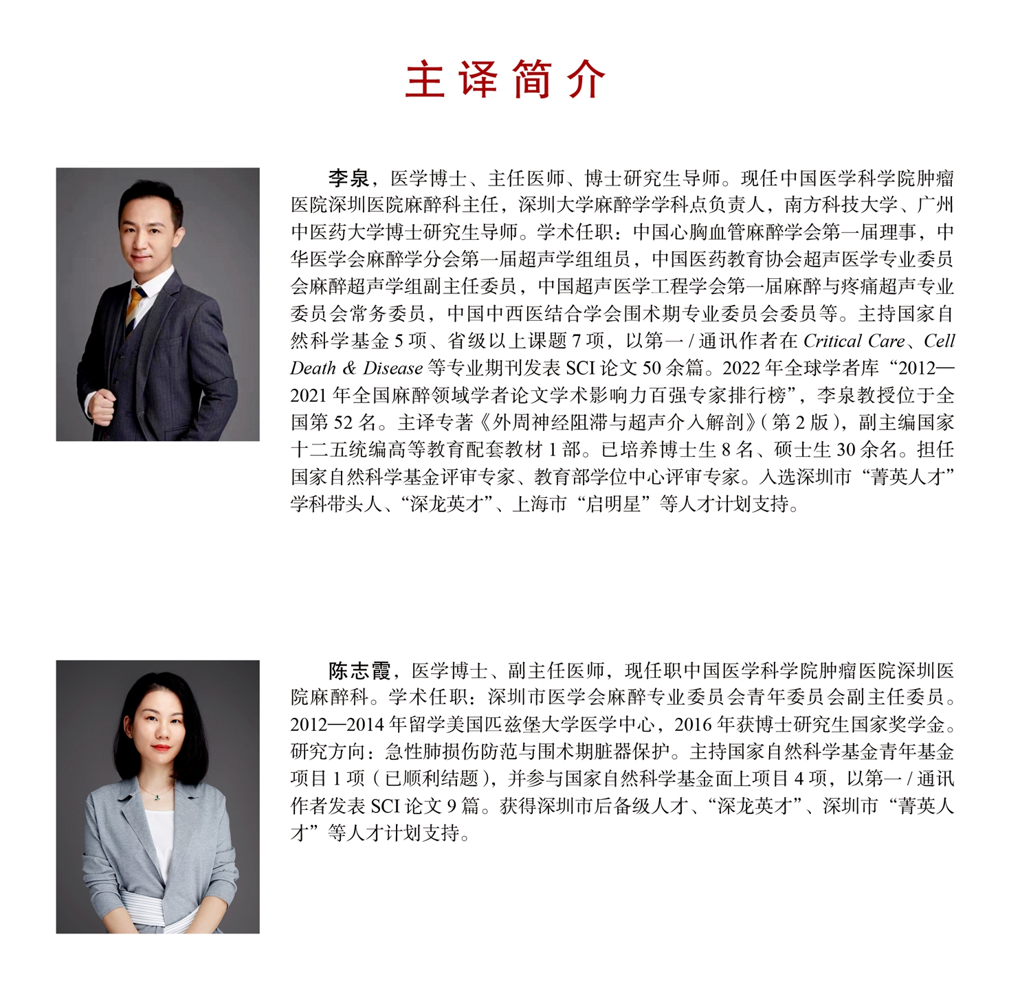 第 3 版的纽约局部麻醉学院(New York School of Regional Anesthesia,NYSORA)教材,进行了大量的更新和修订,包含区域麻醉临床实践的许多新发展和新趋势。新版以全新的绘图、新的临床图像和新的筋膜层面阻滞技术为特色。总而言之,纳入了约 500 种新的流程图、示意图、超声图像、临床图像和认知辅助工具来促进学习。鉴于本书高度的教学性和系统的技术以及功能解剖学原理描述,除了麻醉医生之外,麻醉护理人员、急慢性疼痛专家以及介入性疼痛治疗、肌肉骨骼医学和急诊医生都可从中获益。