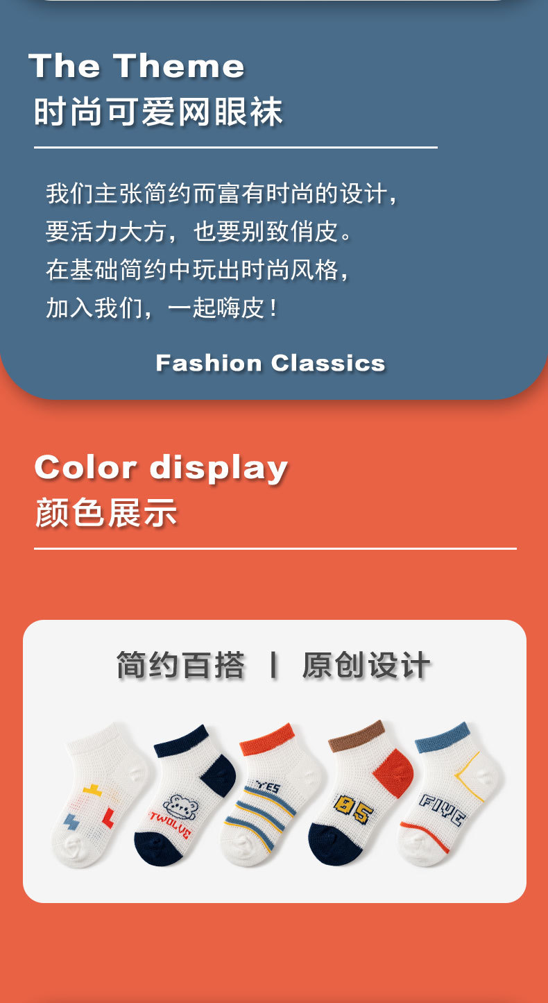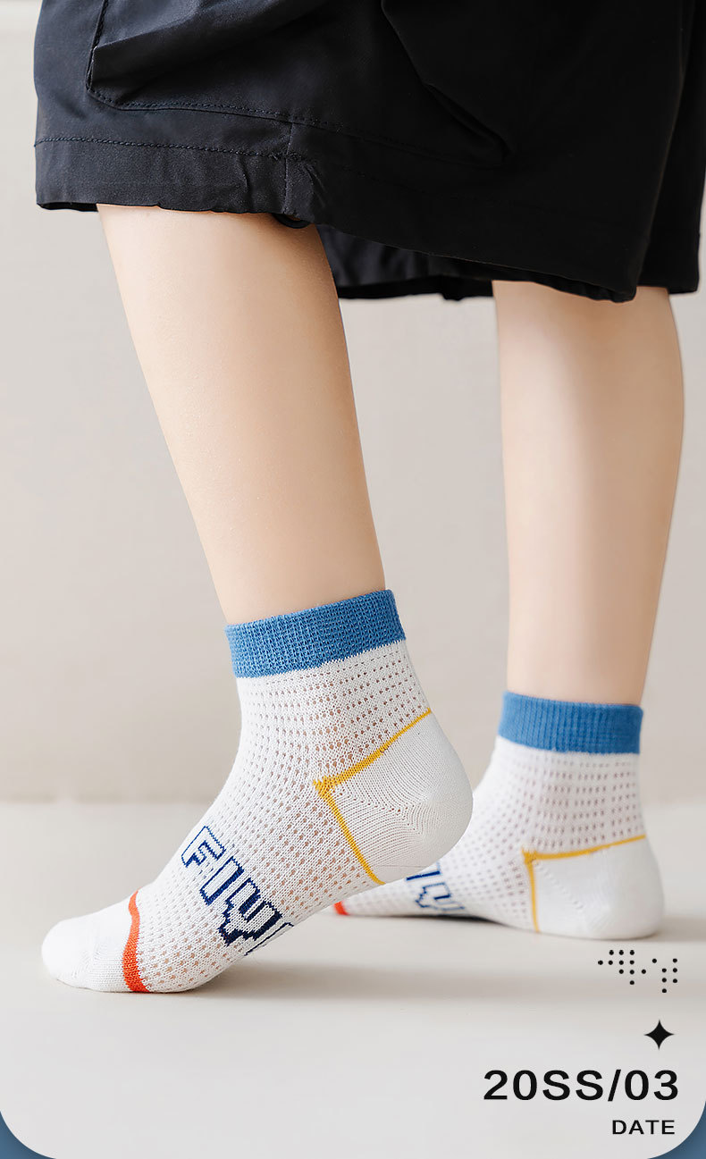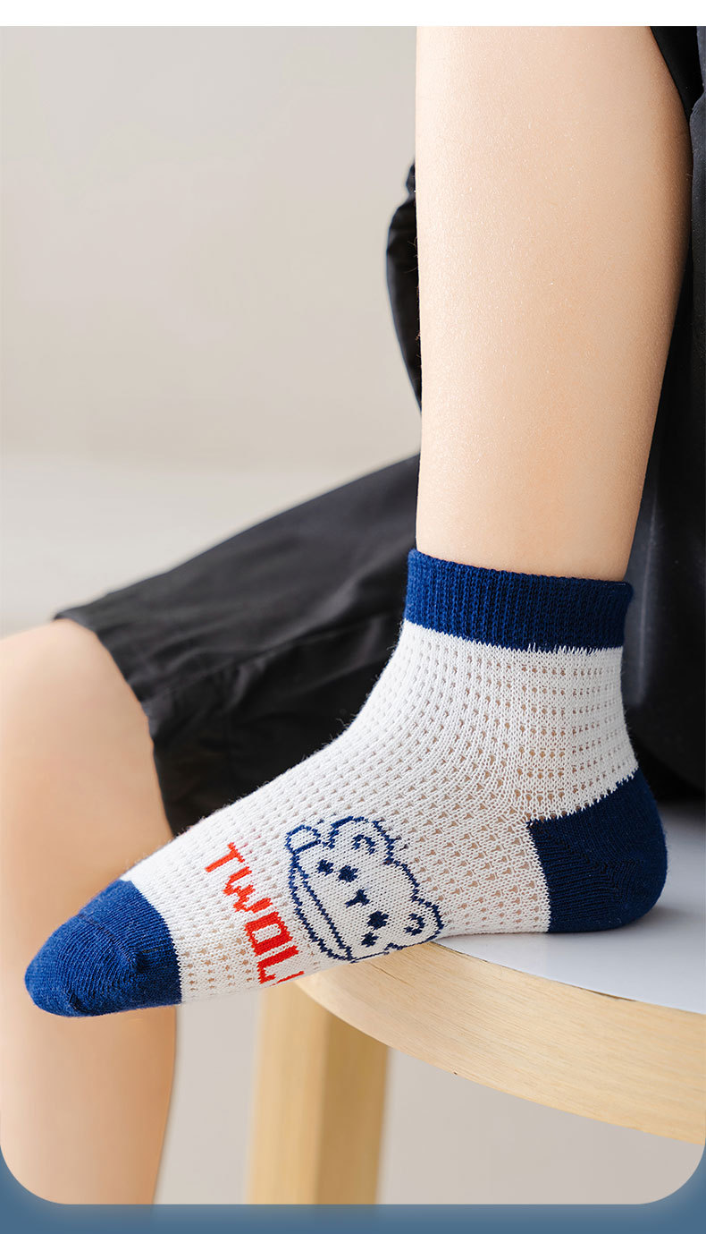 【网眼透气 ,柔软不硌脚】五双装!夏款儿童袜子中筒棉 薄款网眼透气 卡通宝宝 男孩女孩夏天学生短袜-QQ