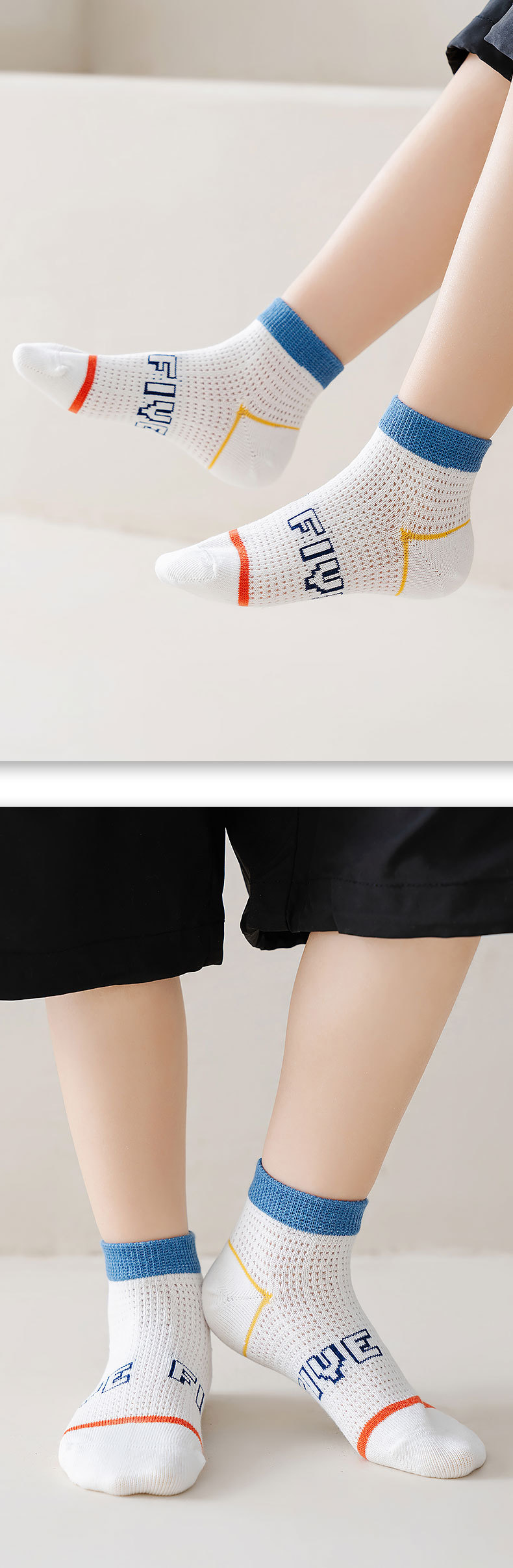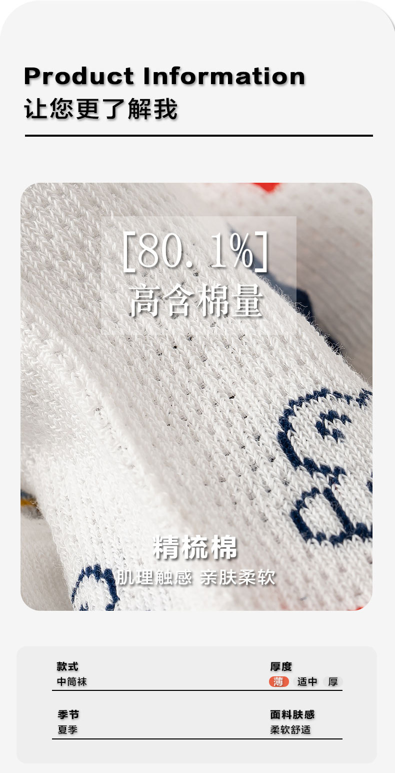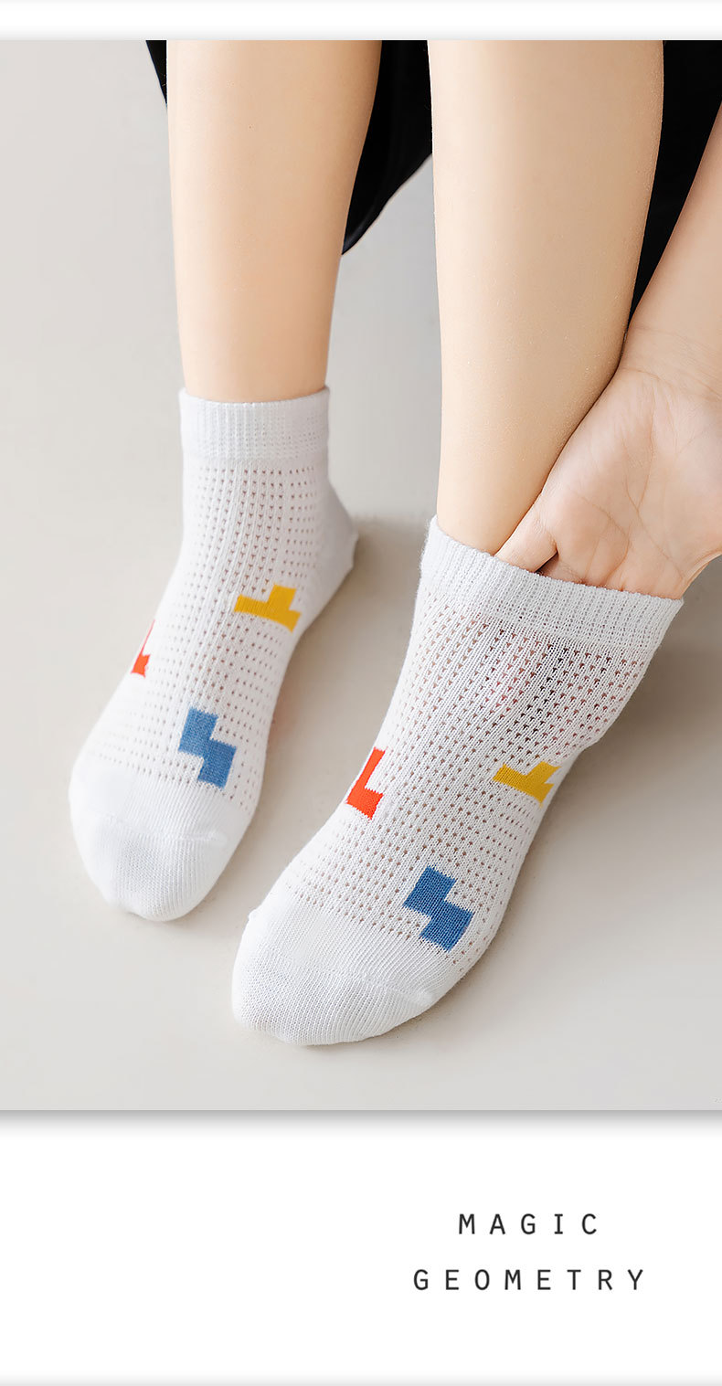 【网眼透气 ,柔软不硌脚】五双装!夏款儿童袜子中筒棉 薄款网眼透气 卡通宝宝 男孩女孩夏天学生短袜-QQ
