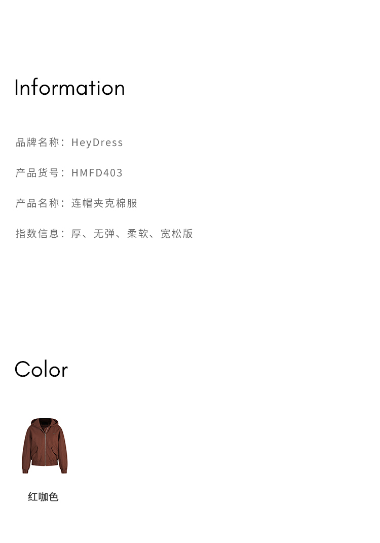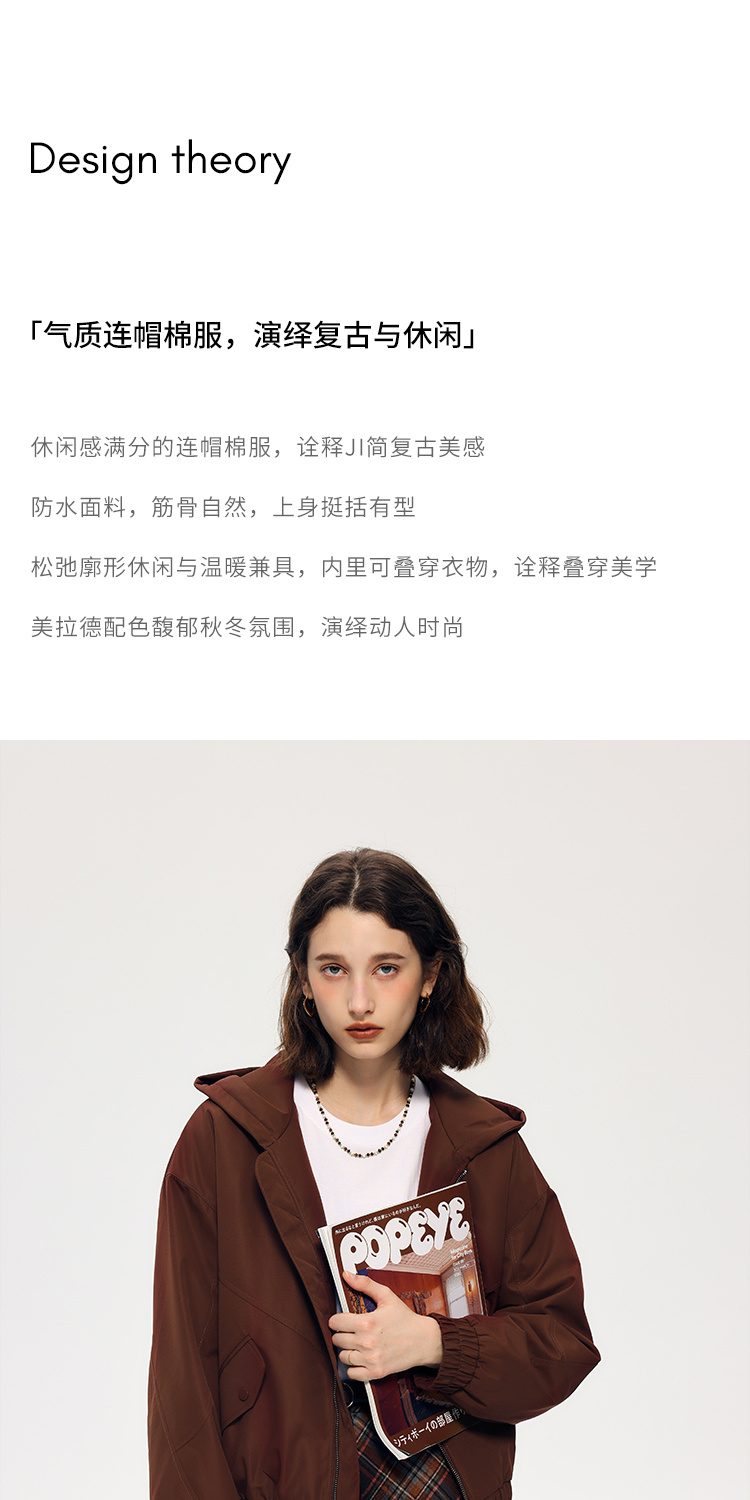 HeyDress连帽棉服女秋冬宽松休闲加棉夹克美拉德复古加厚棉衣外套