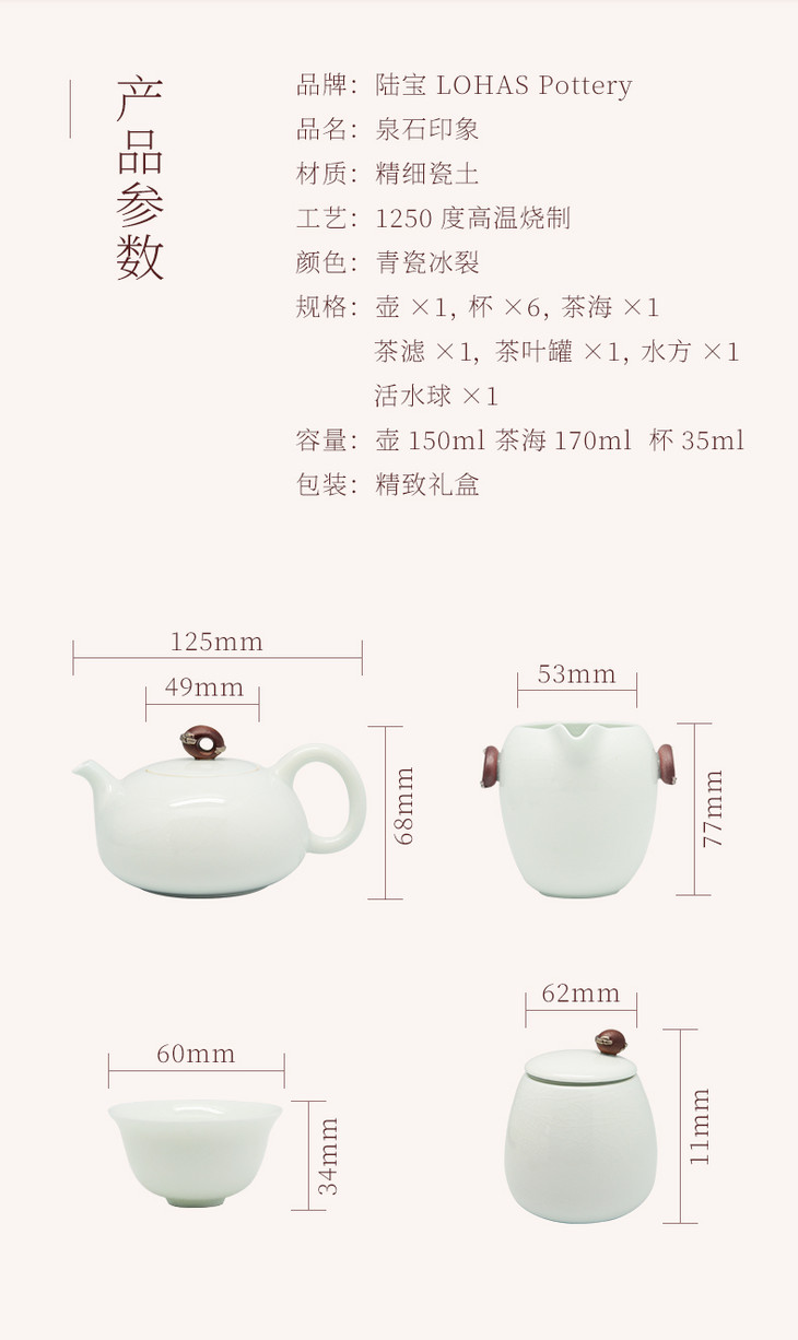 【彼达思】陆宝陶瓷茶具泉石印象茶组-青瓷冰裂一壶六杯