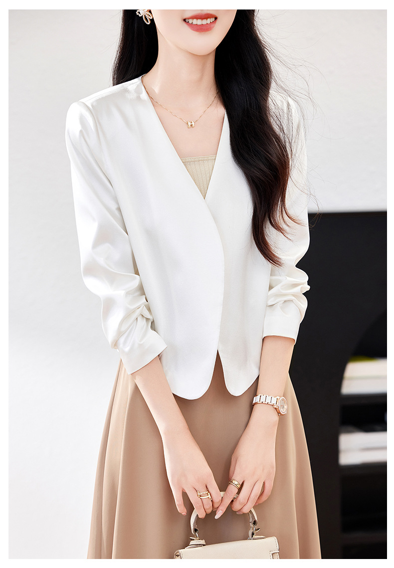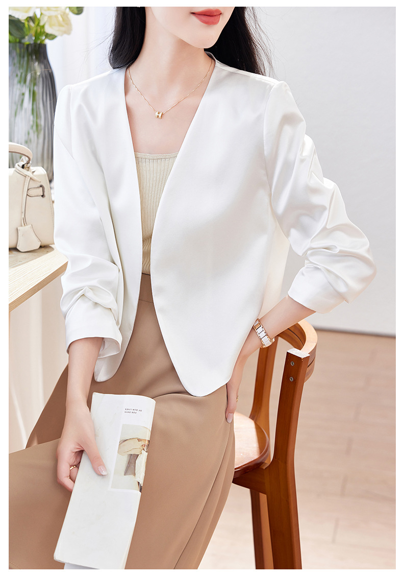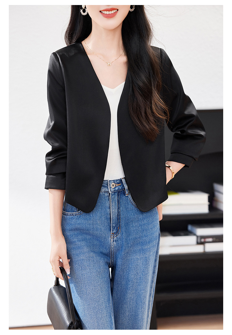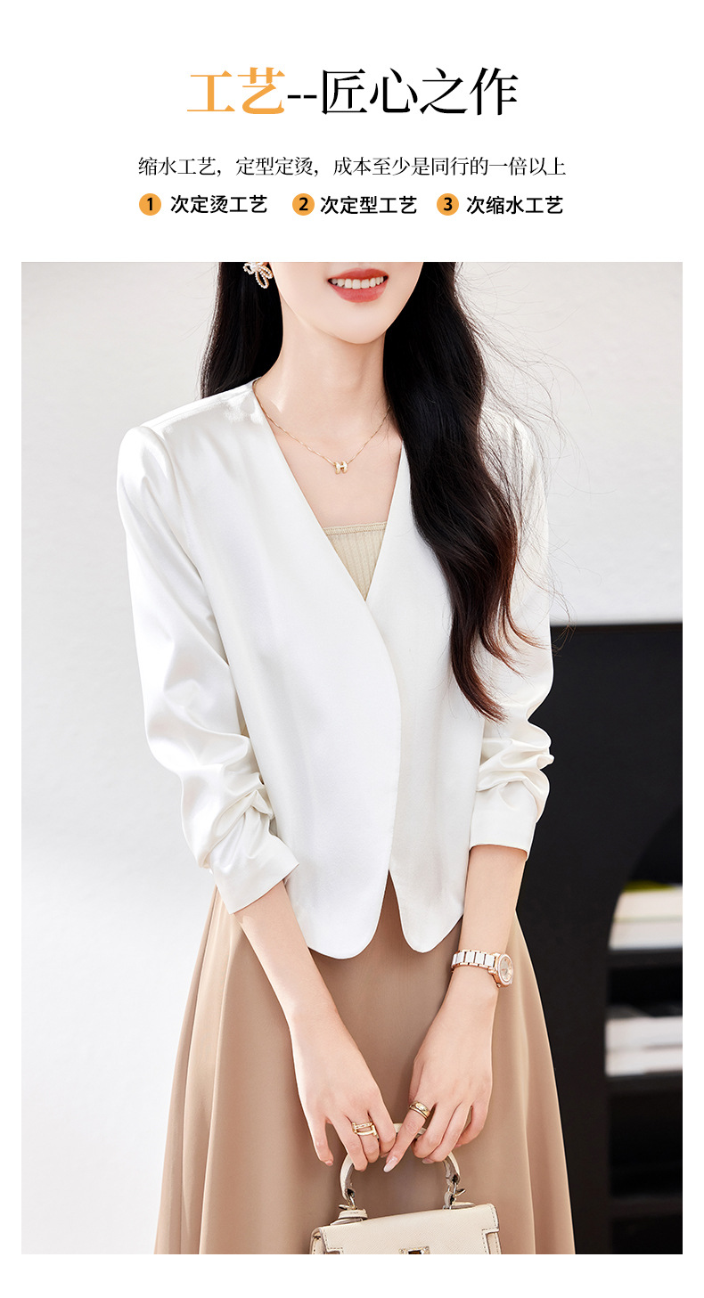 TP09311今年流行西服风女款2025秋季真丝小西装时尚气质短外套重磅弹力缎 商品图2