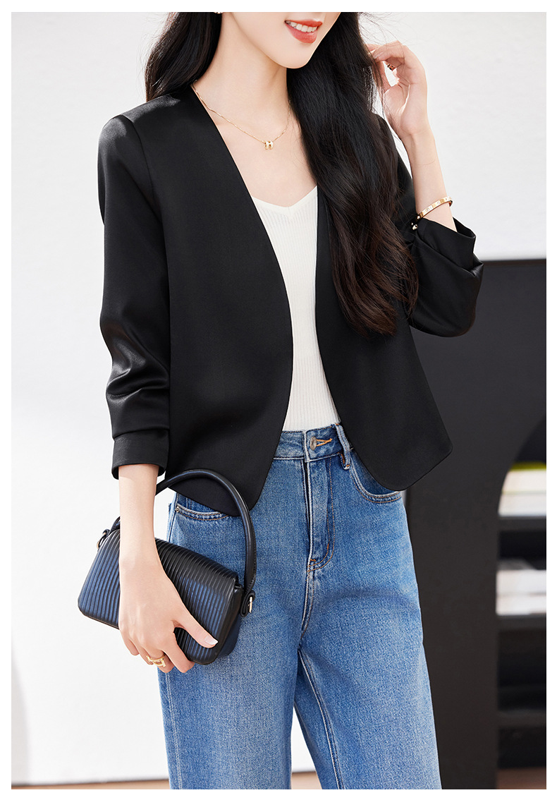 TP09311今年流行西服风女款2025秋季真丝小西装时尚气质短外套重磅弹力缎 商品图4