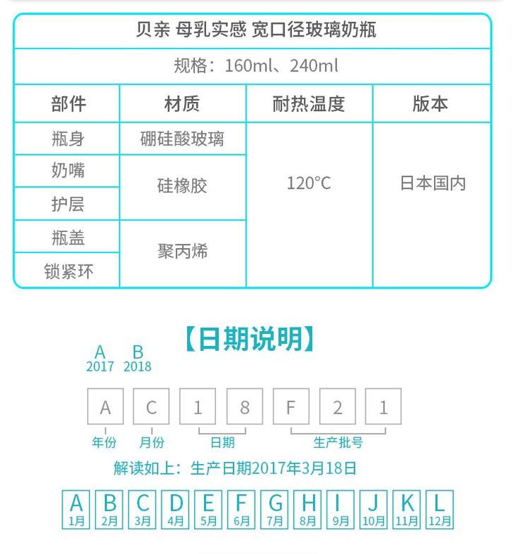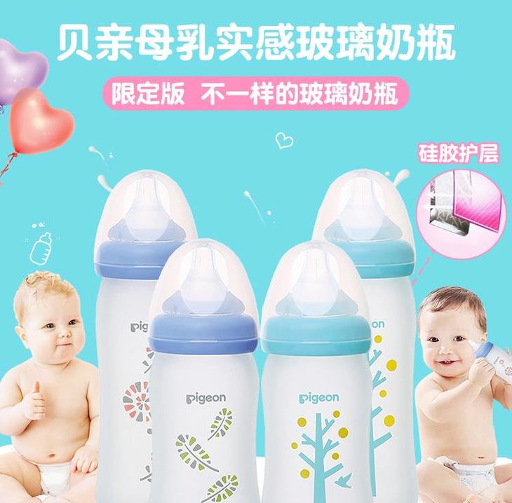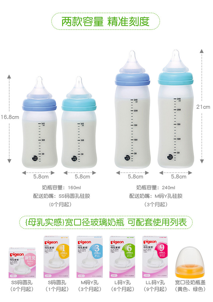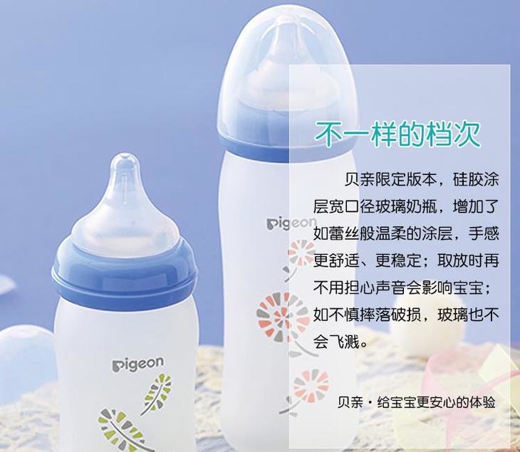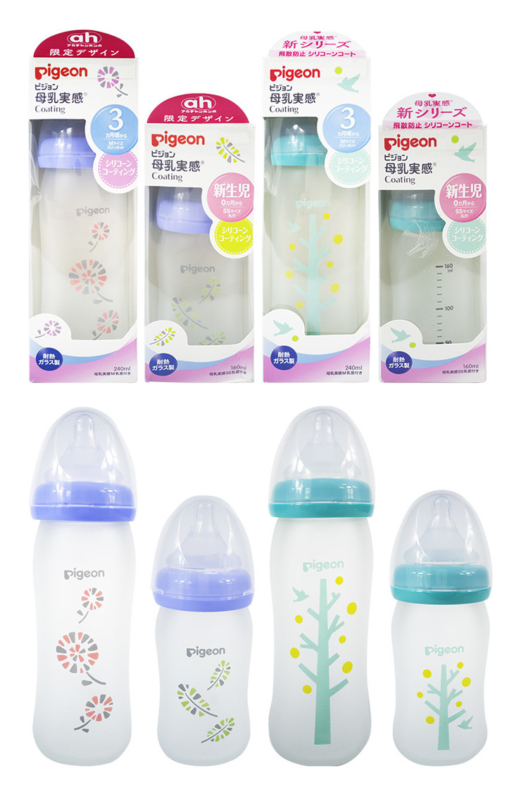日本pigeon贝亲婴儿硅胶玻璃奶瓶宽口径新生儿玻璃奶瓶160/240ml