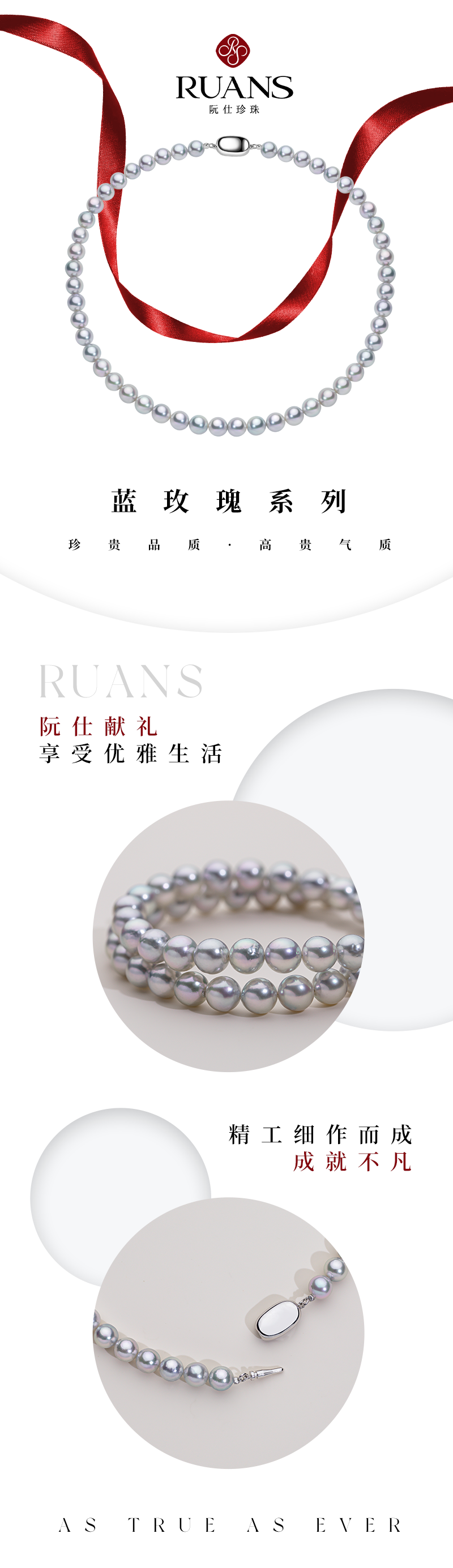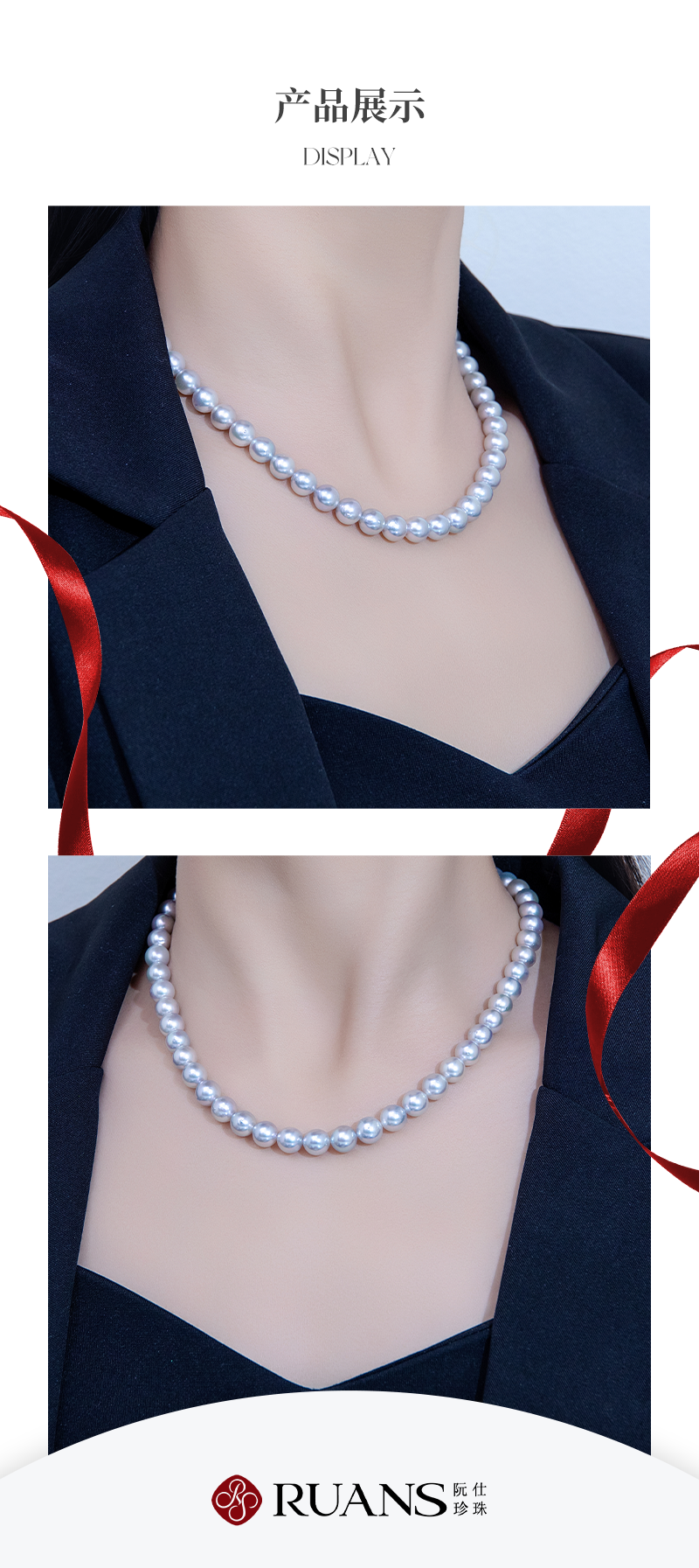 阮仕珍珠 蓝玫瑰系列S925银 Akoya珍珠项链 8-8.5mm 正圆 微瑕 极强光(真科研证书SK BLUE ROSE)