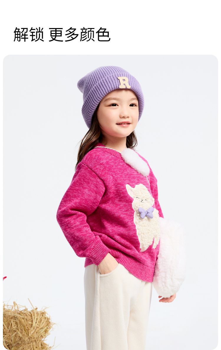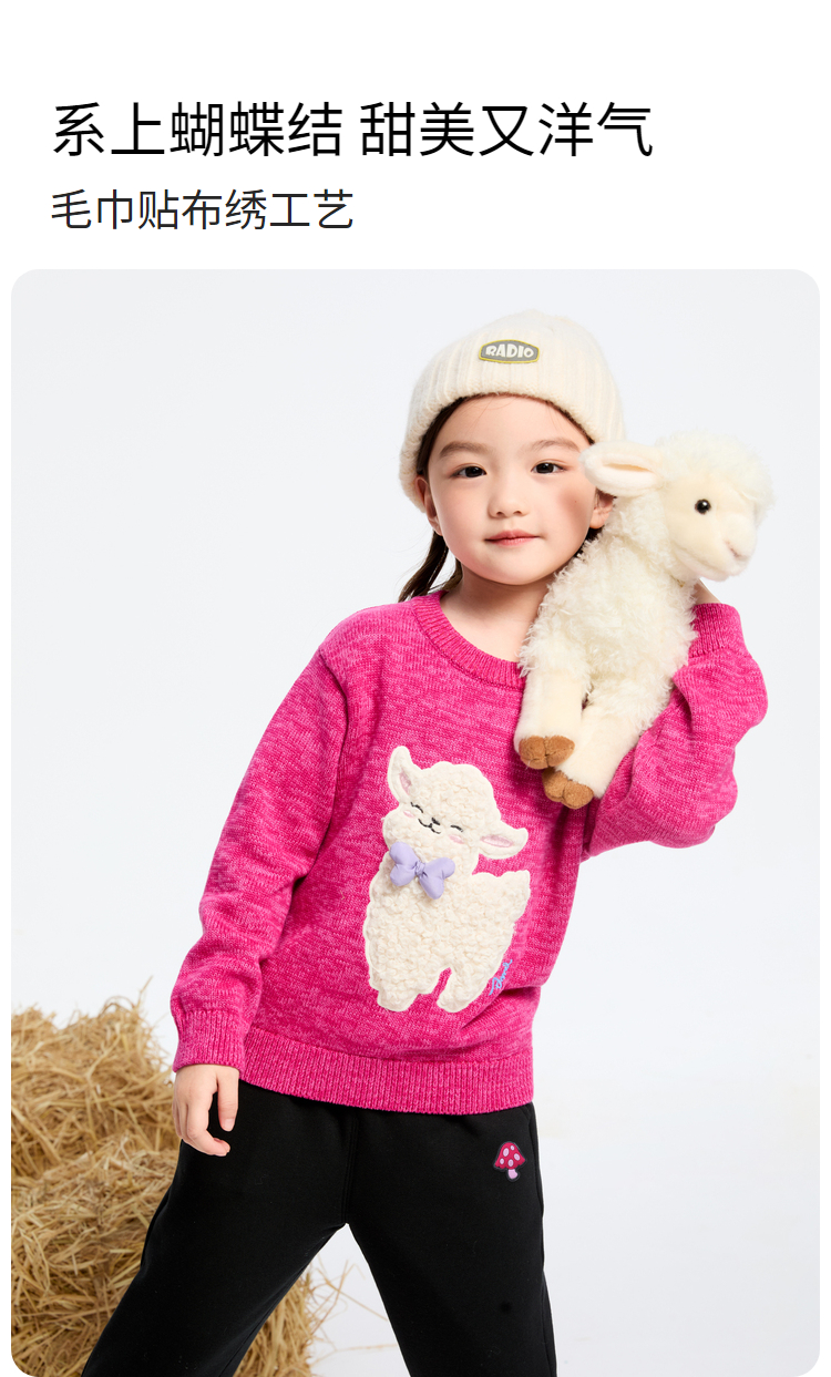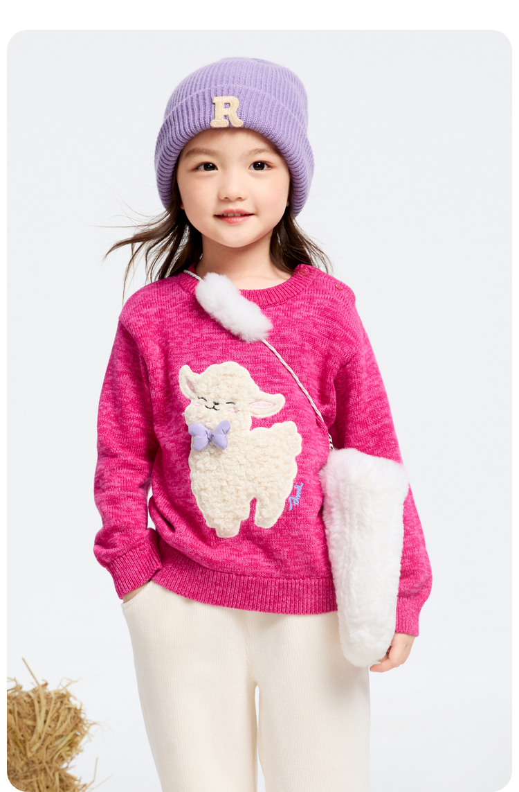 女童软萌绣花毛衣圆领冬季新款安奈儿童装实体店同款XG444591