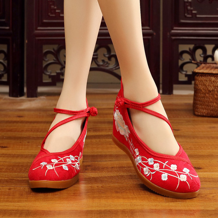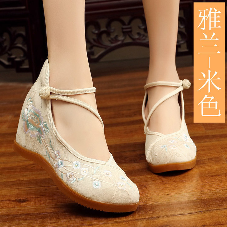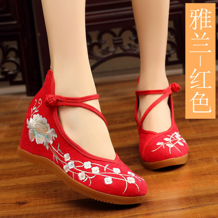民族风搭扣,内增高绣花布鞋