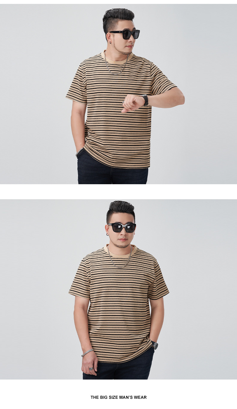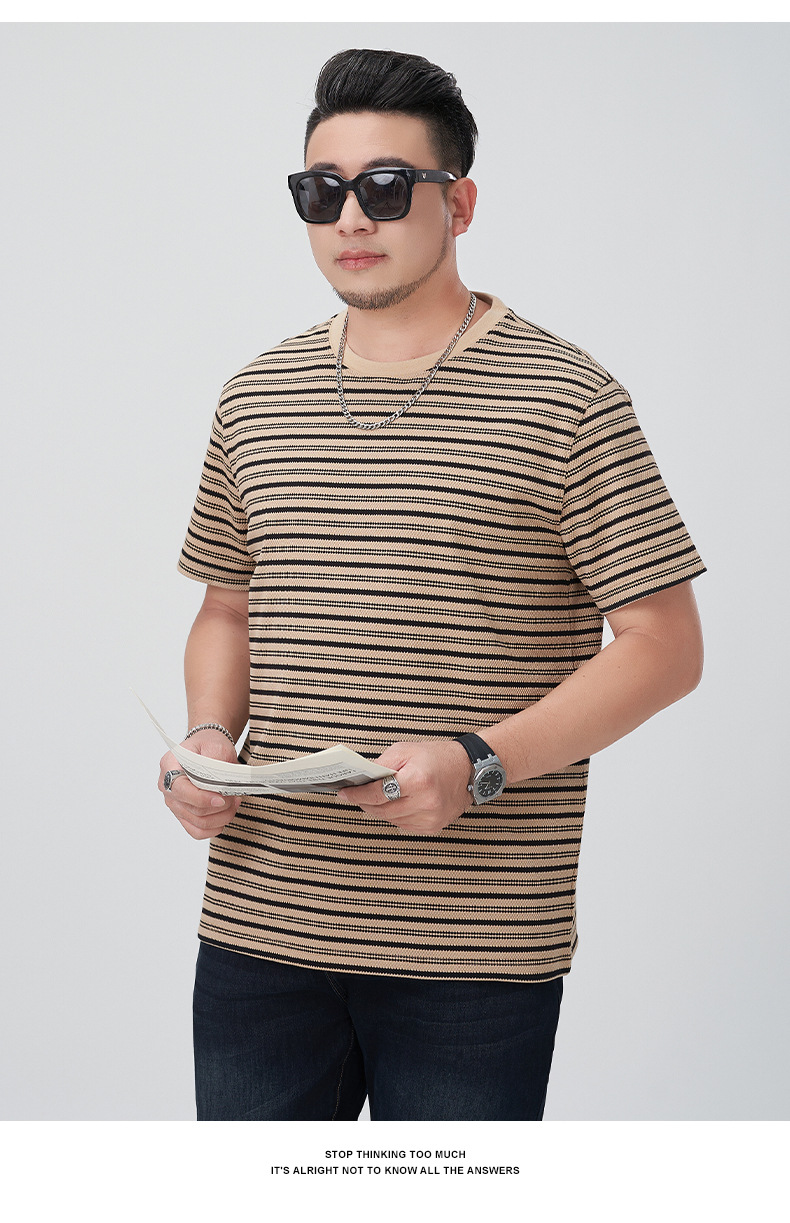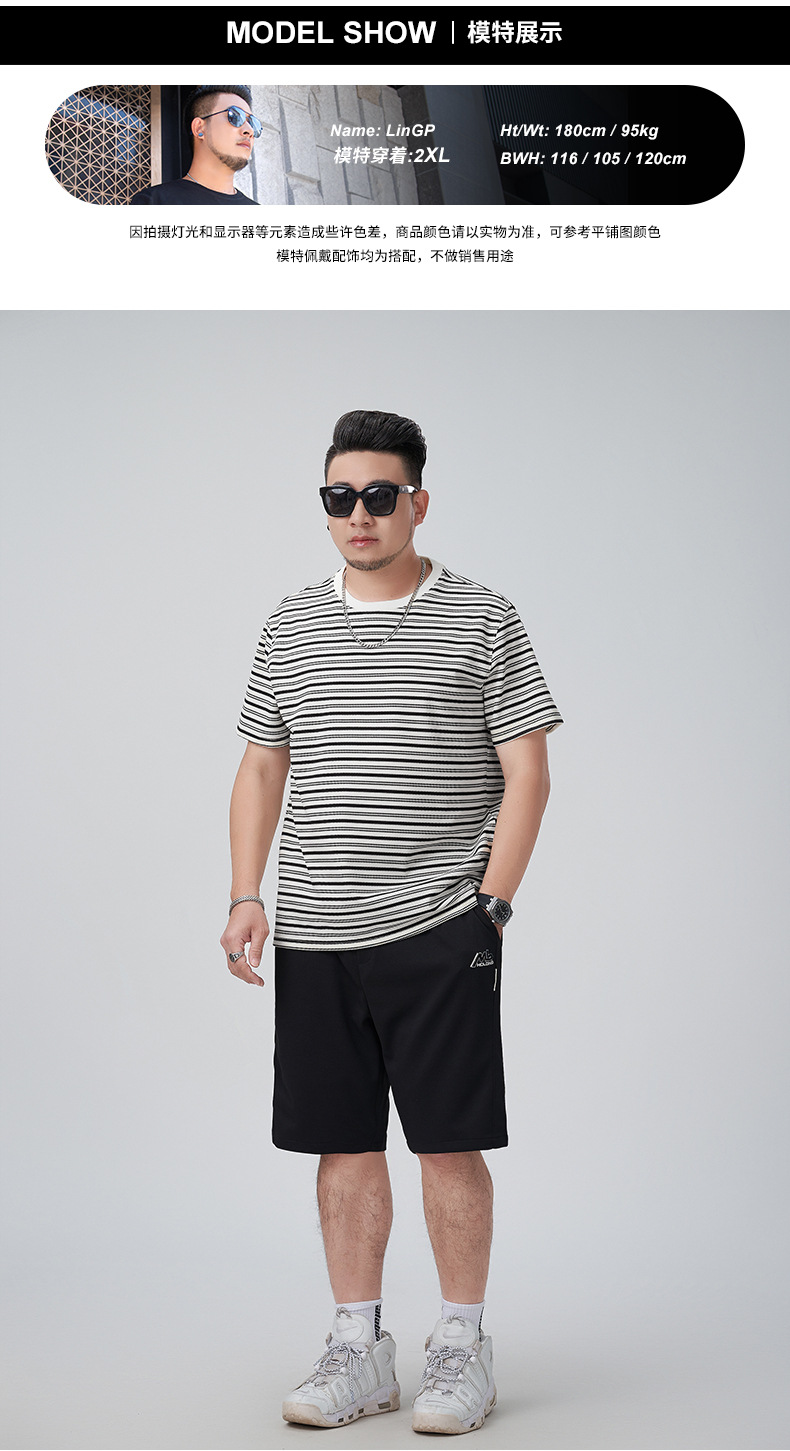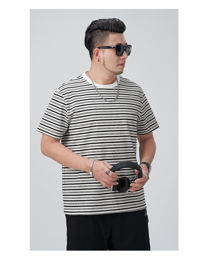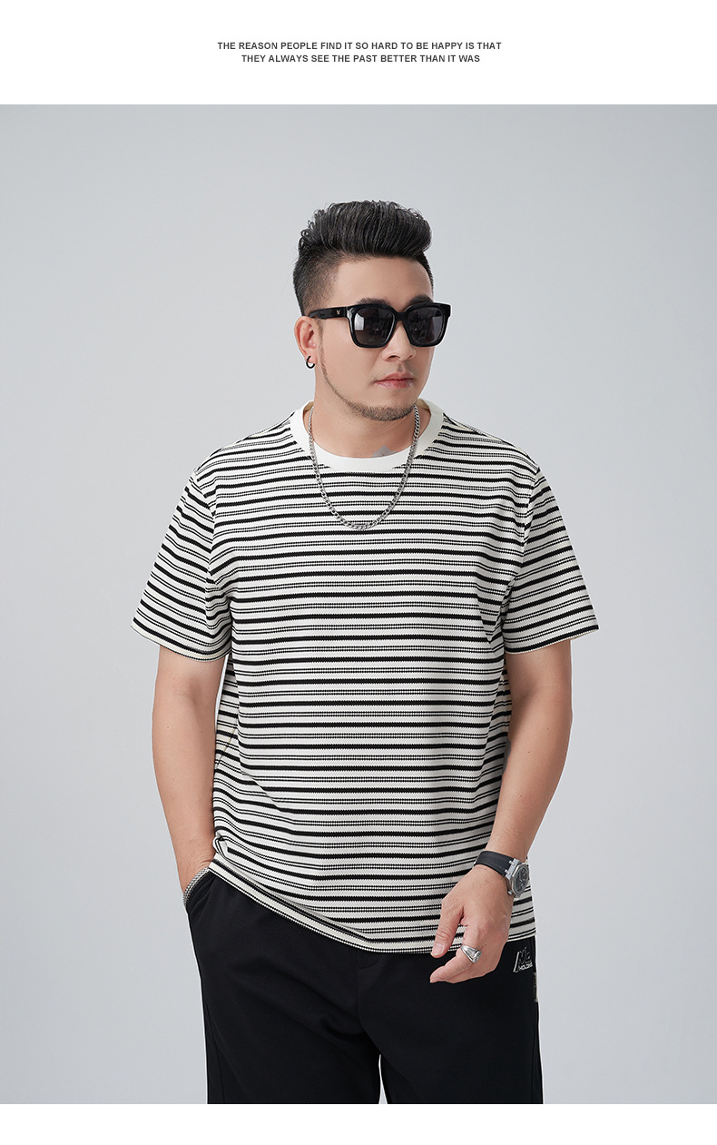 【DMH】大依优型大码条纹短袖T恤男装潮流街头休闲吸汗透气宽松半袖夏装上衣男士