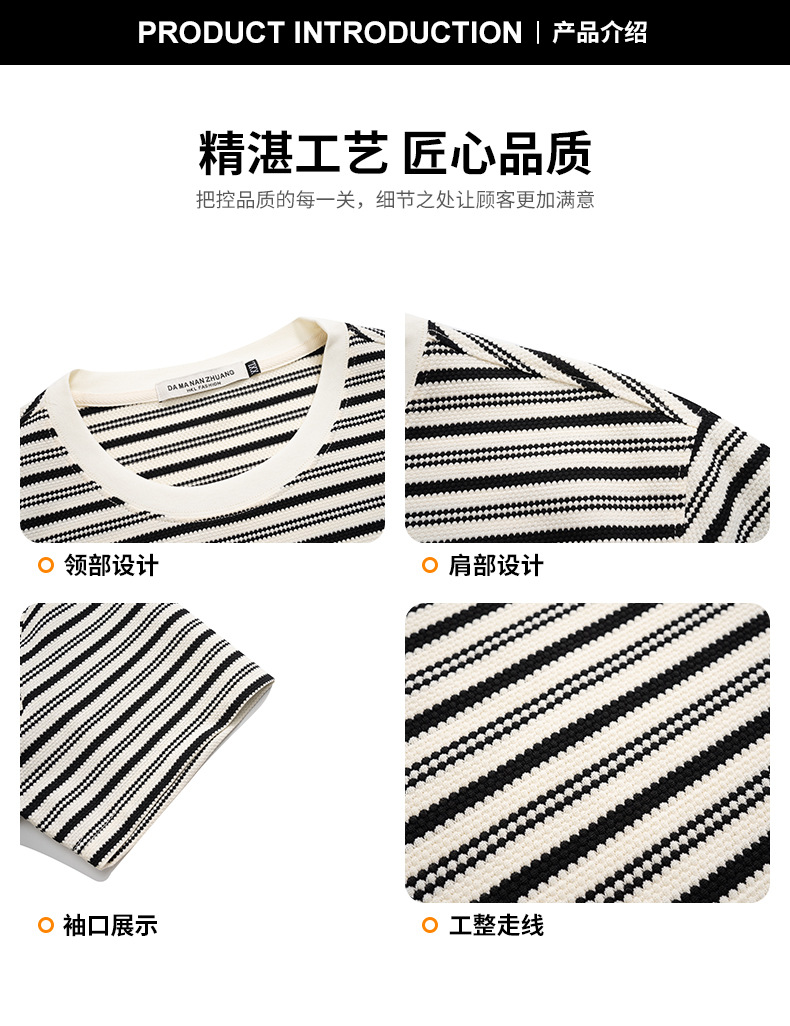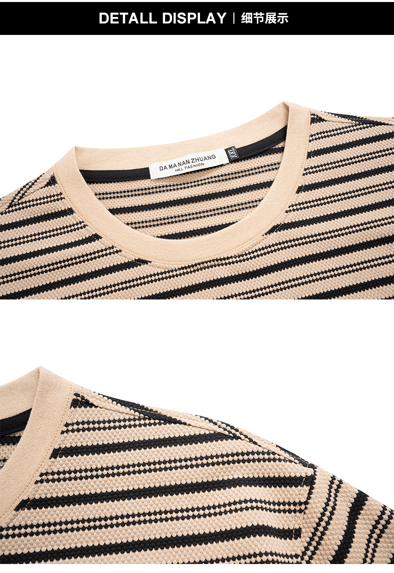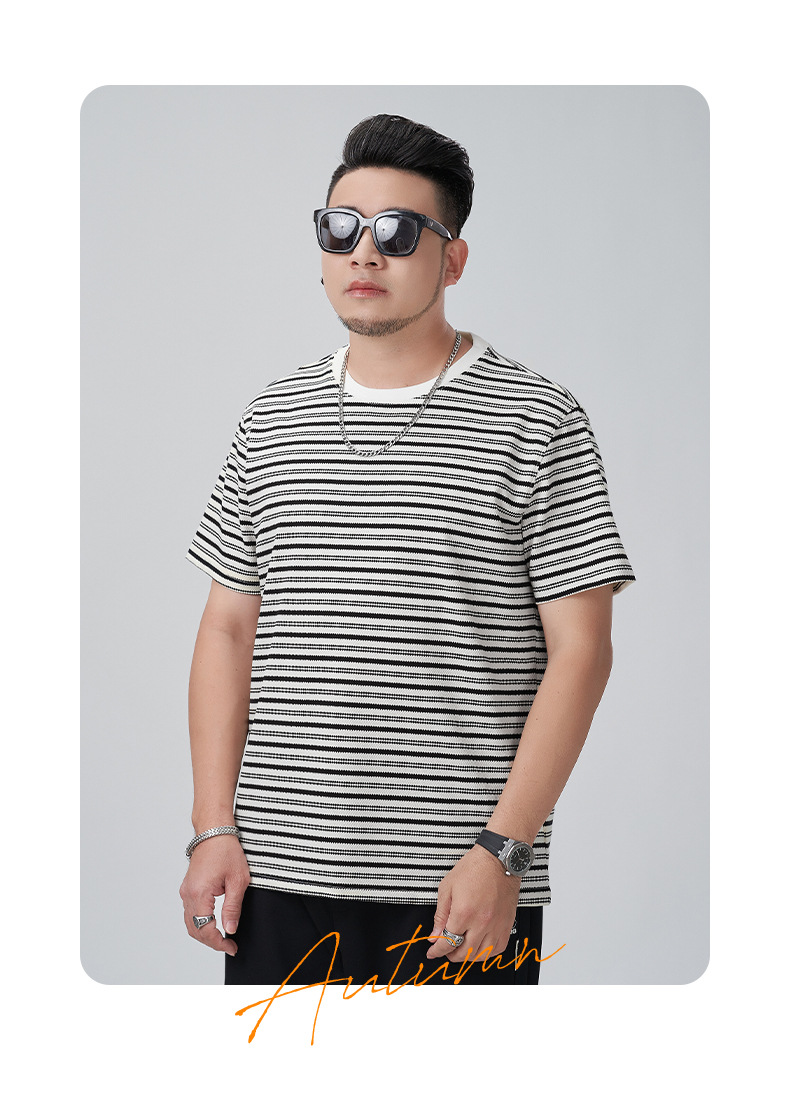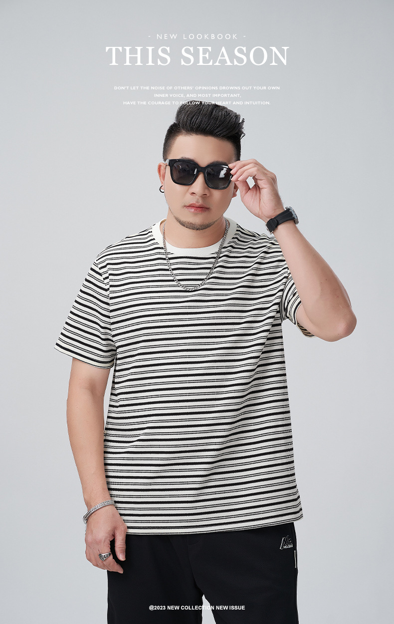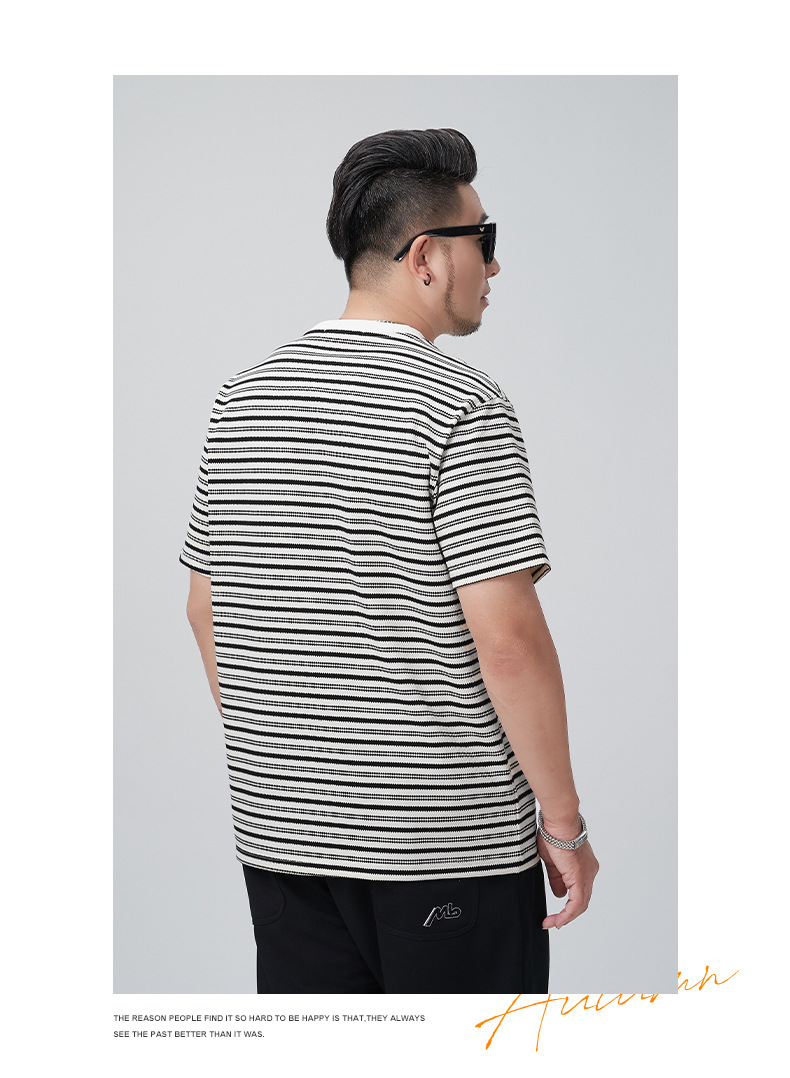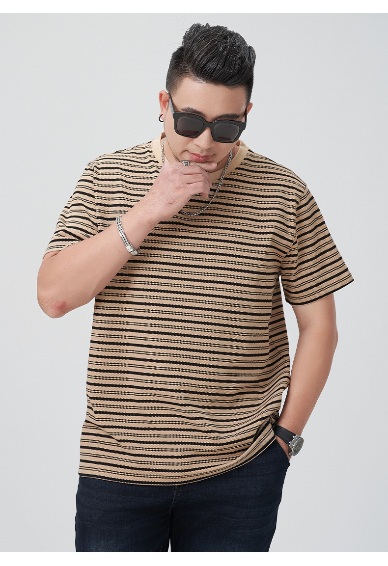 【DMH】大依优型大码条纹短袖T恤男装潮流街头休闲吸汗透气宽松半袖夏装上衣男士