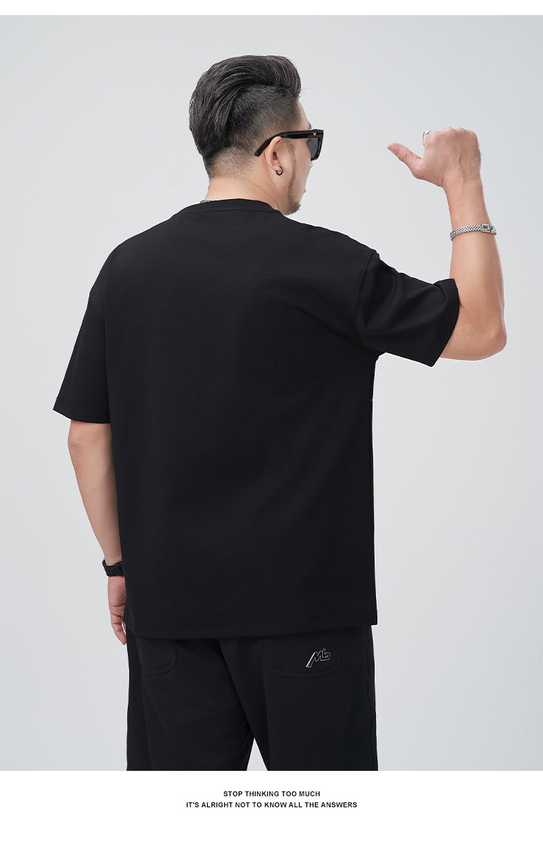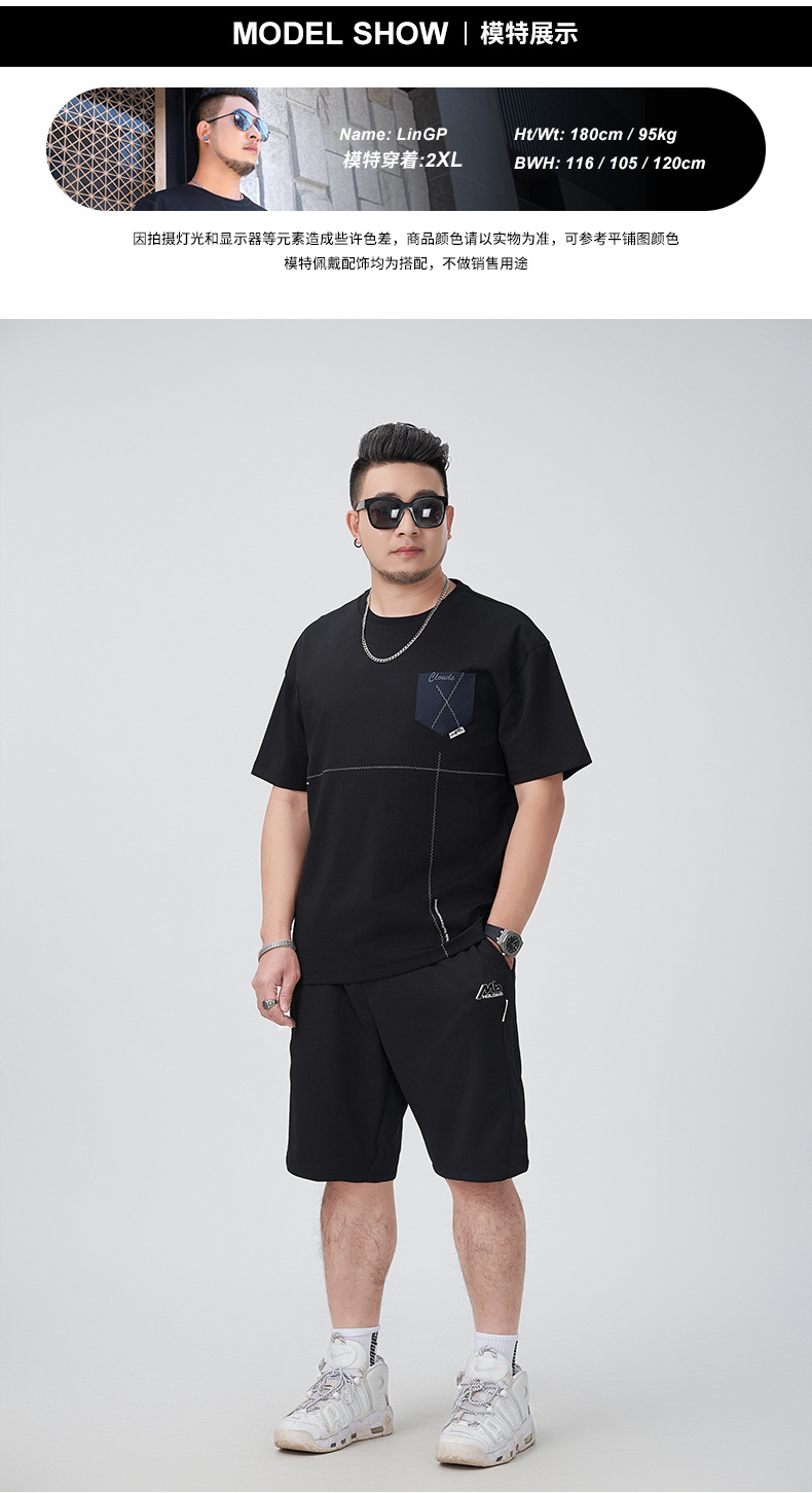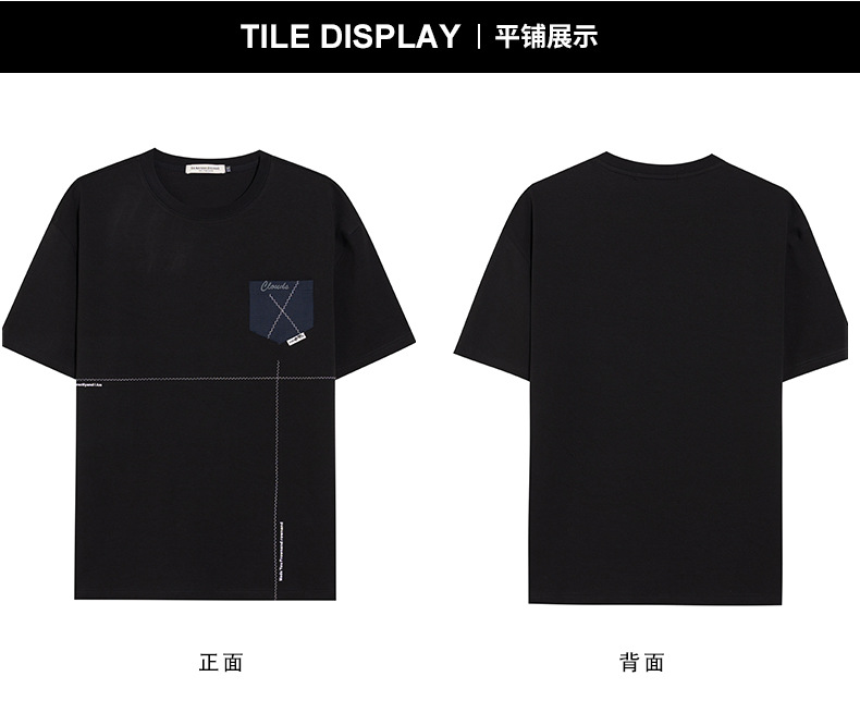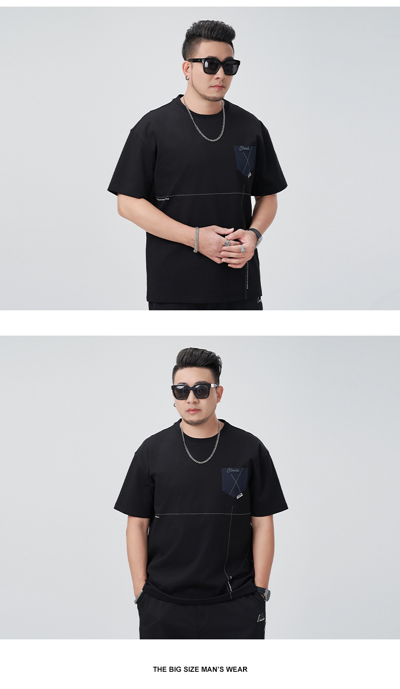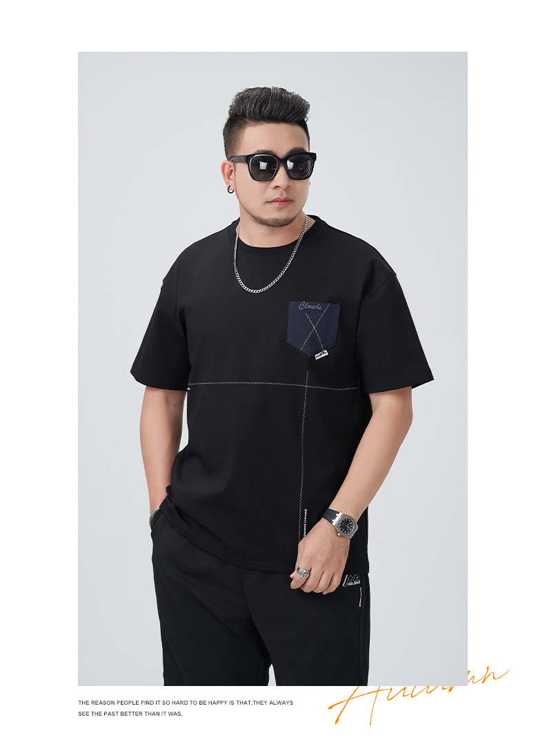 【DMH】大依优型大码印花短袖T恤落肩袖贴布口袋宽松半袖男装夏季新款上衣男士
