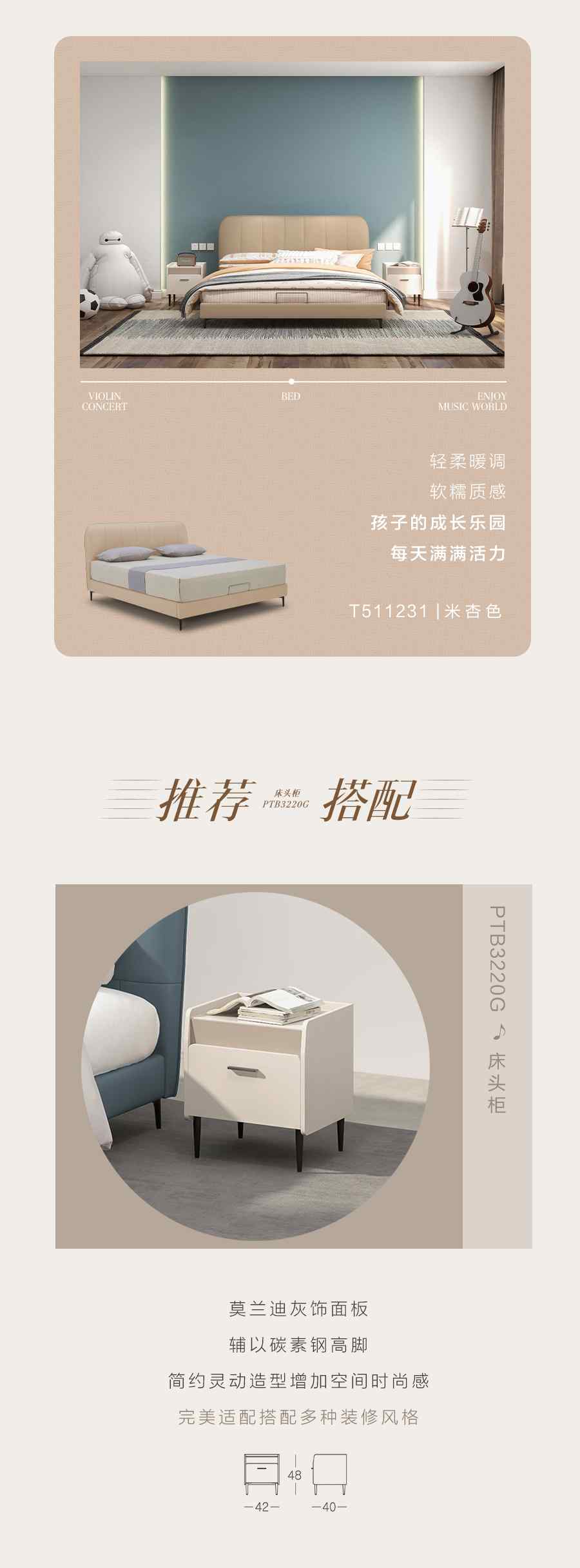琴湾皮床/B1062-床头柜/PT3220G
