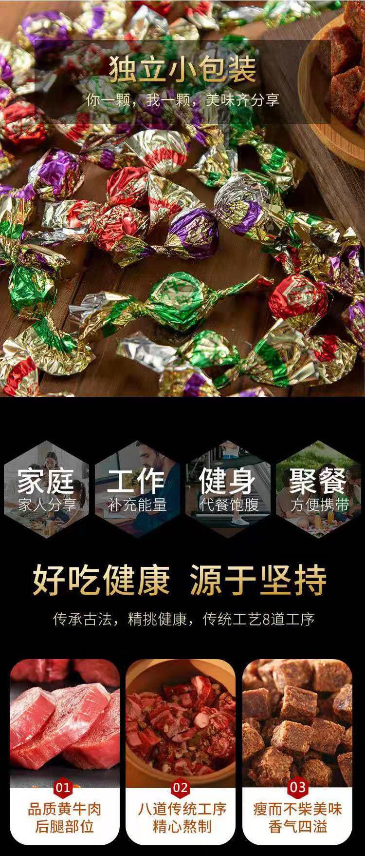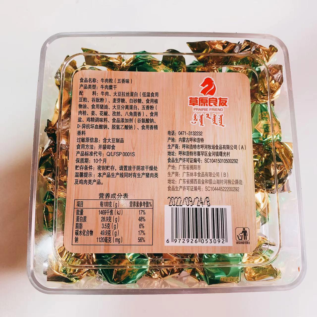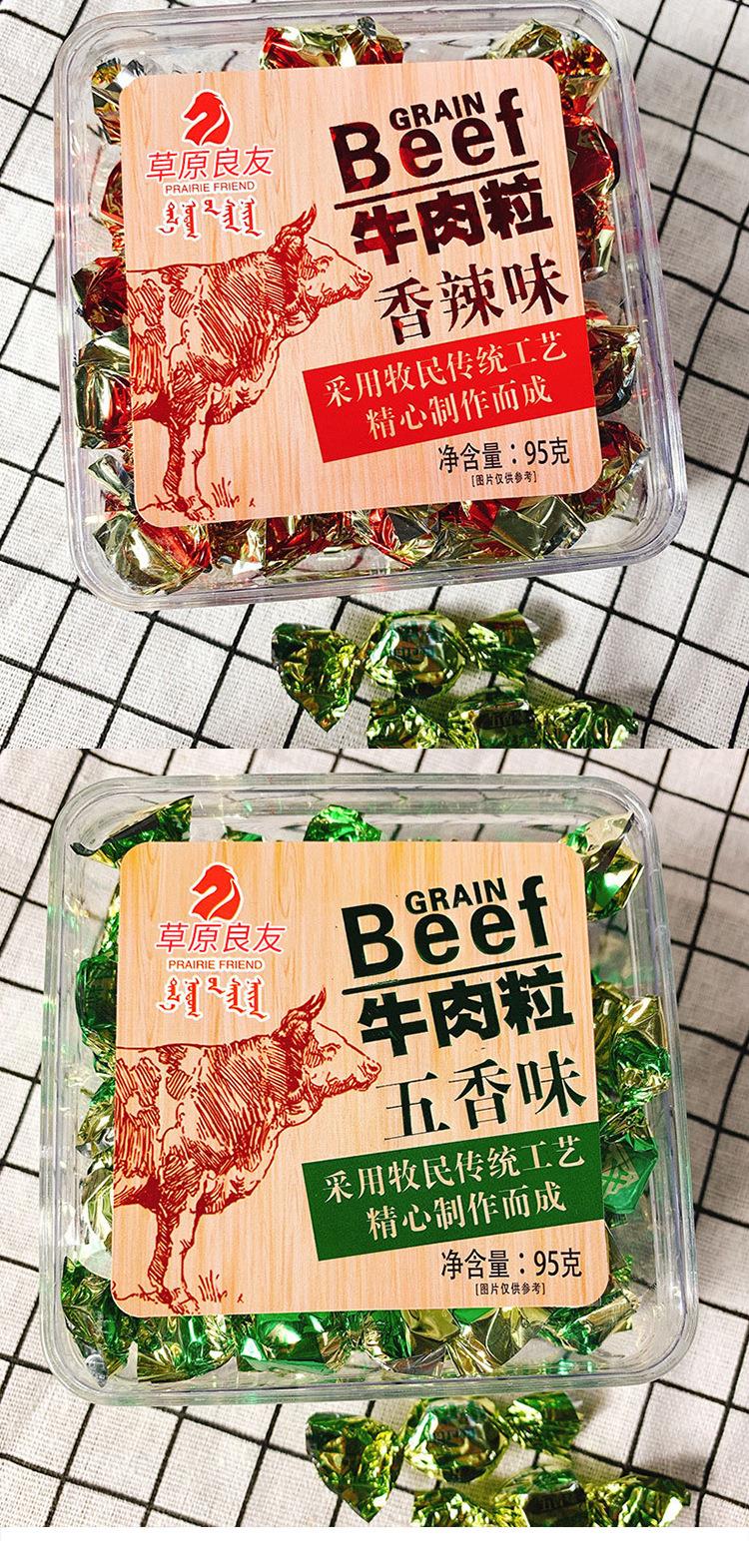 【限时秒杀】【2盒装】草原良友内蒙古特产牛肉粒五香香辣味牛肉糖休闲零食小吃95g独立包装