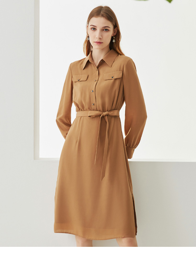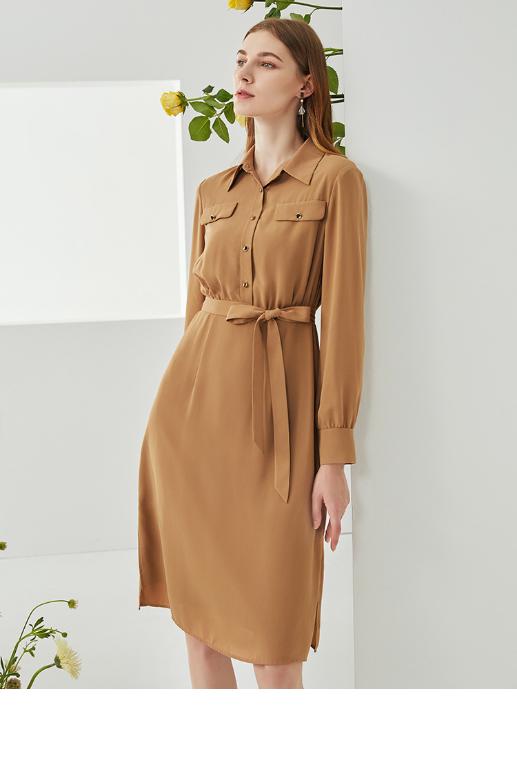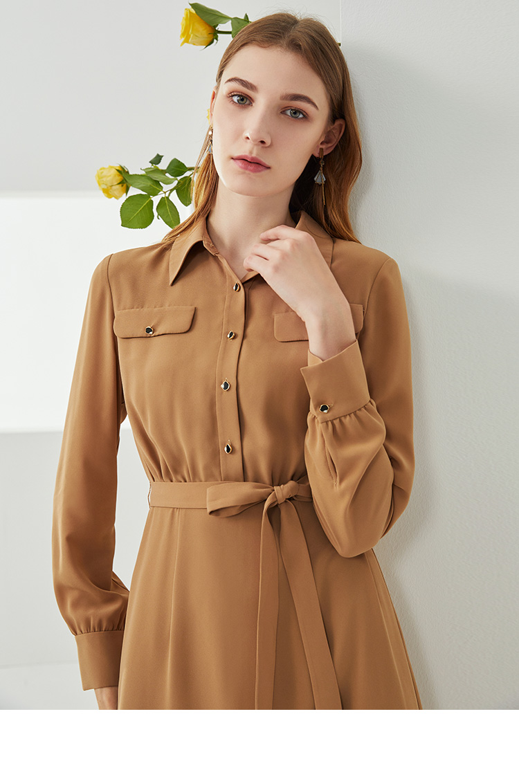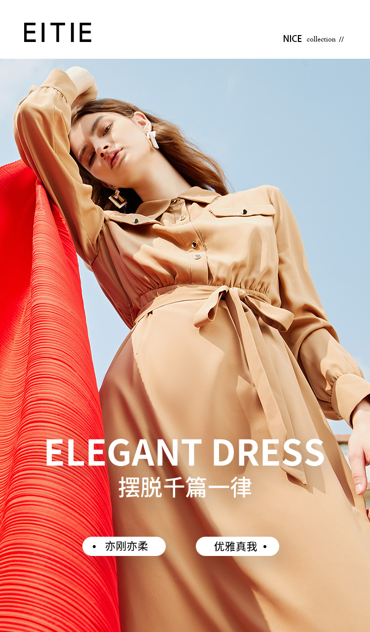 EITIE爱特爱21秋季新款时尚气质翻领收腰职业通勤显瘦衬衫连衣裙C2107826