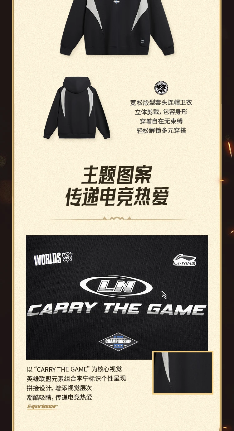 李宁 x LPL联名系列男子宽松套头连帽卫衣AWDVA11