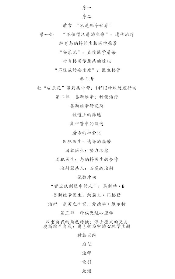这不仅是目前已有的关于医学伦理学的最重要著作之一,而且融入了历史编纂学,对第三帝国和国家社会主义所犯罪行做了令人信服的心理学解说。在我看来,不参考这样的心理学解说,未来无人能够深刻地描述那个时代。”“这不仅是目前已有的关于医学伦理学的最重要著作之一,而且融入了历史编纂学,对第三帝国和国家社会主义所犯罪行做了令人信服的心理学解说。在我看来,不参考这样的心理学解说,未来无人能够深刻地描述那个时代。
