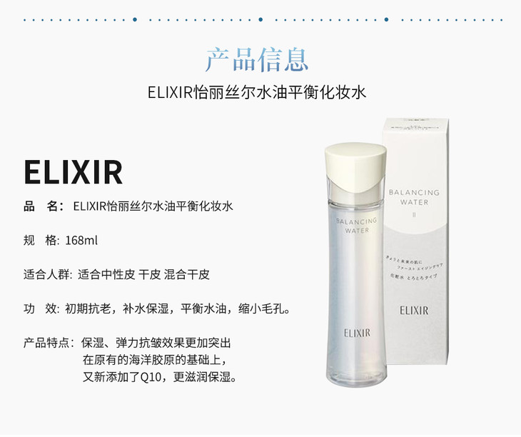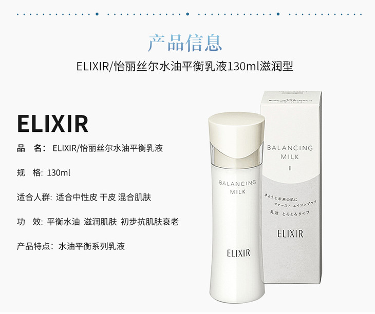 Elixir怡丽丝尔 调节水油平衡 化妆水 乳液套装 2号