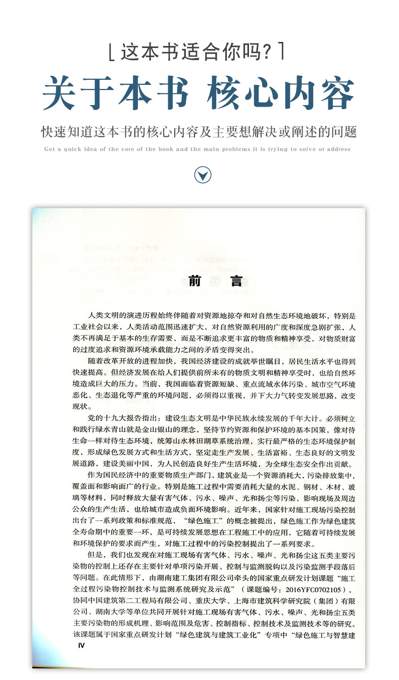 本书内容翔实,可操作性强,本书要与《施工全过程污染控制指标体系指南》配套使用,为对应的控制指标提出配套监测方法,改变以往只提控制指标不提供指标监测方法的做法,同时详细介绍施工现场这五类污染物的监测预警系统。