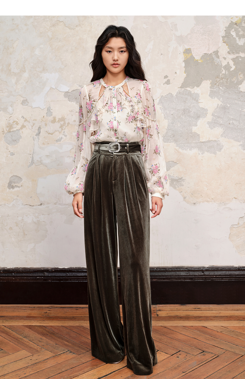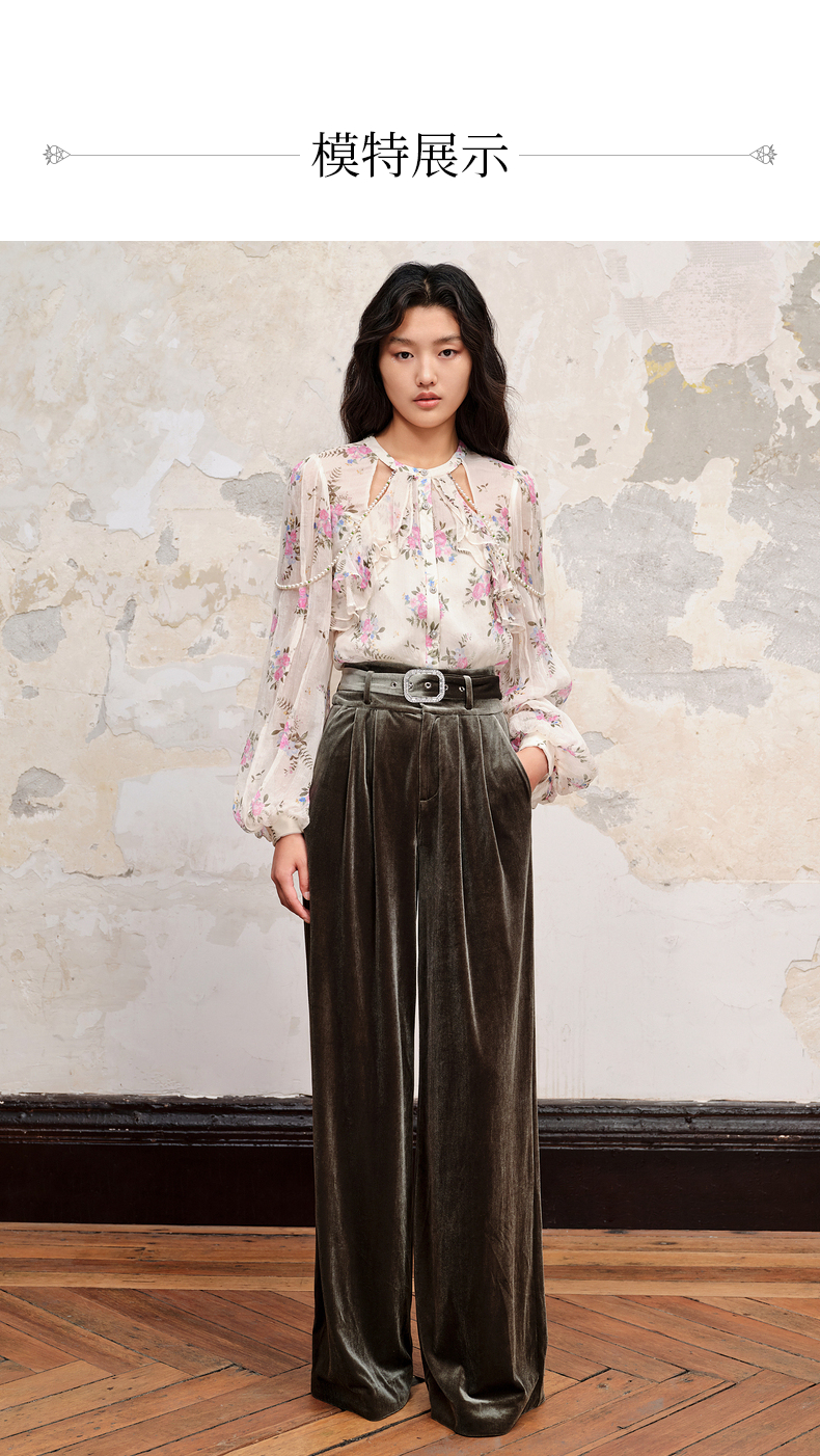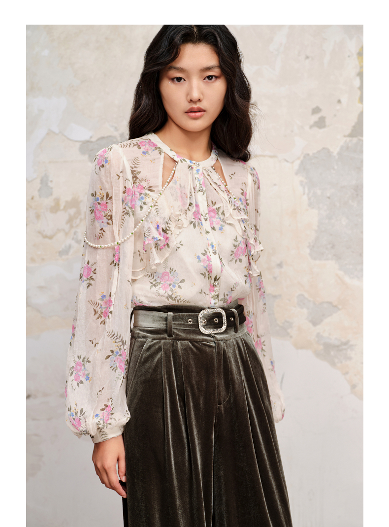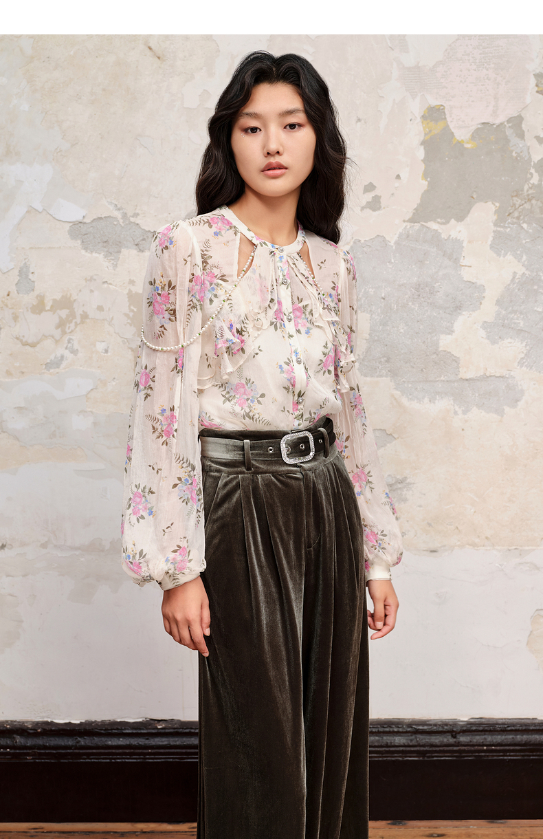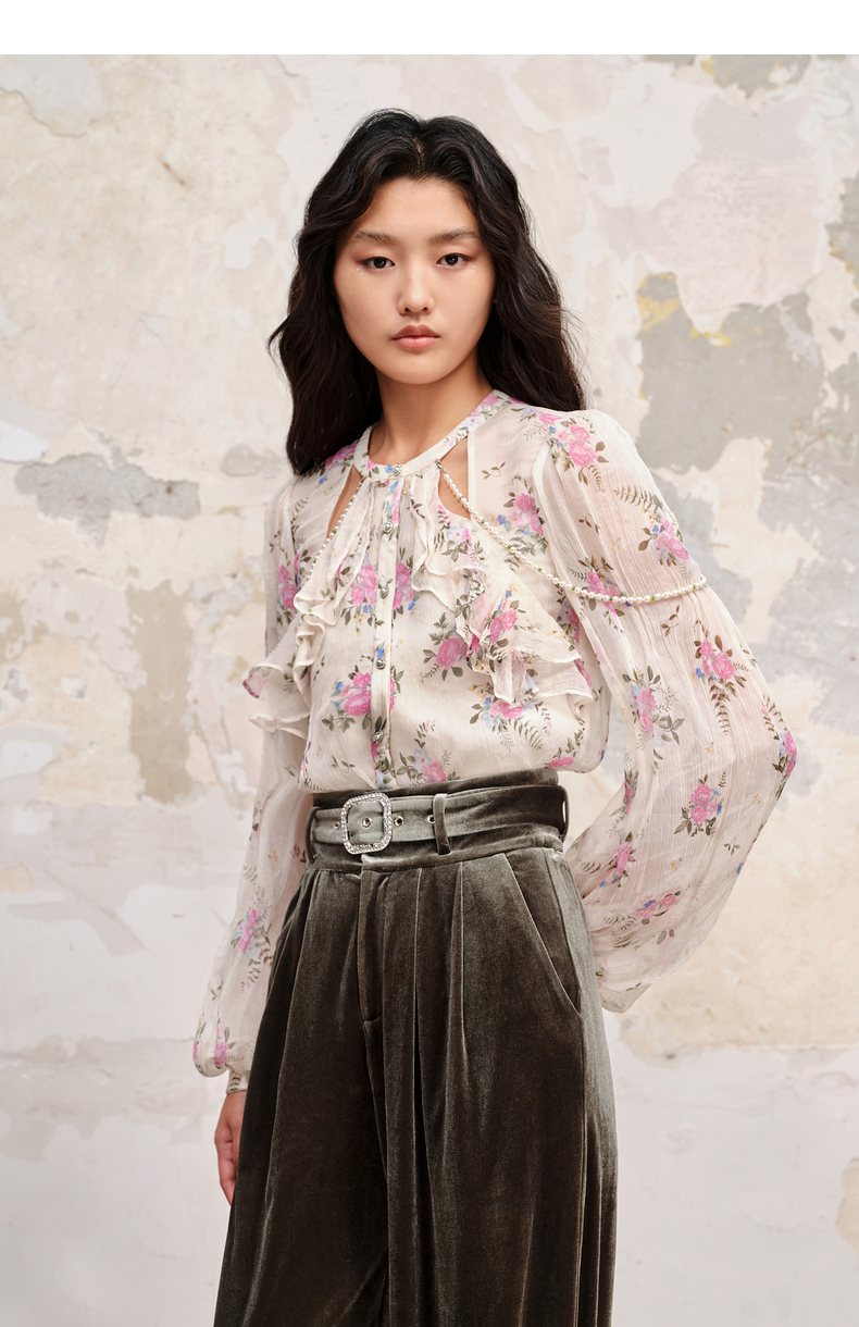 MAXRIENY温柔田园风碎花真丝花衬衫桑蚕丝衬衣上衣(货号:MC88TP579)