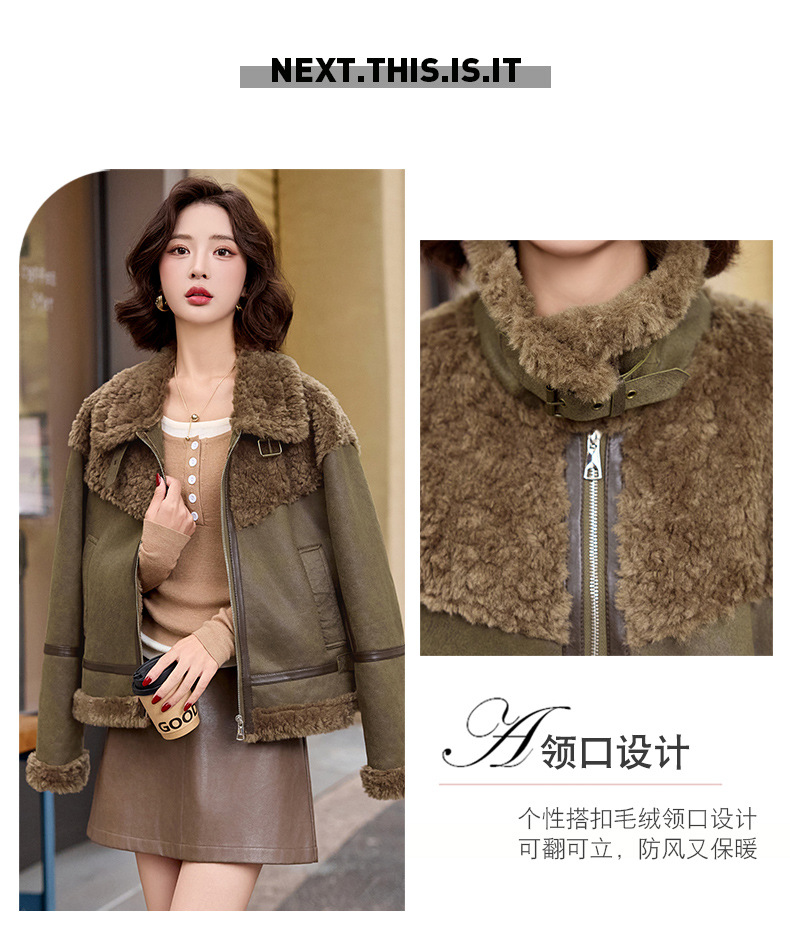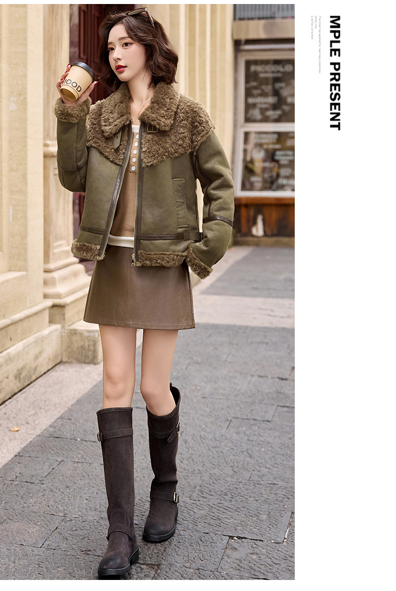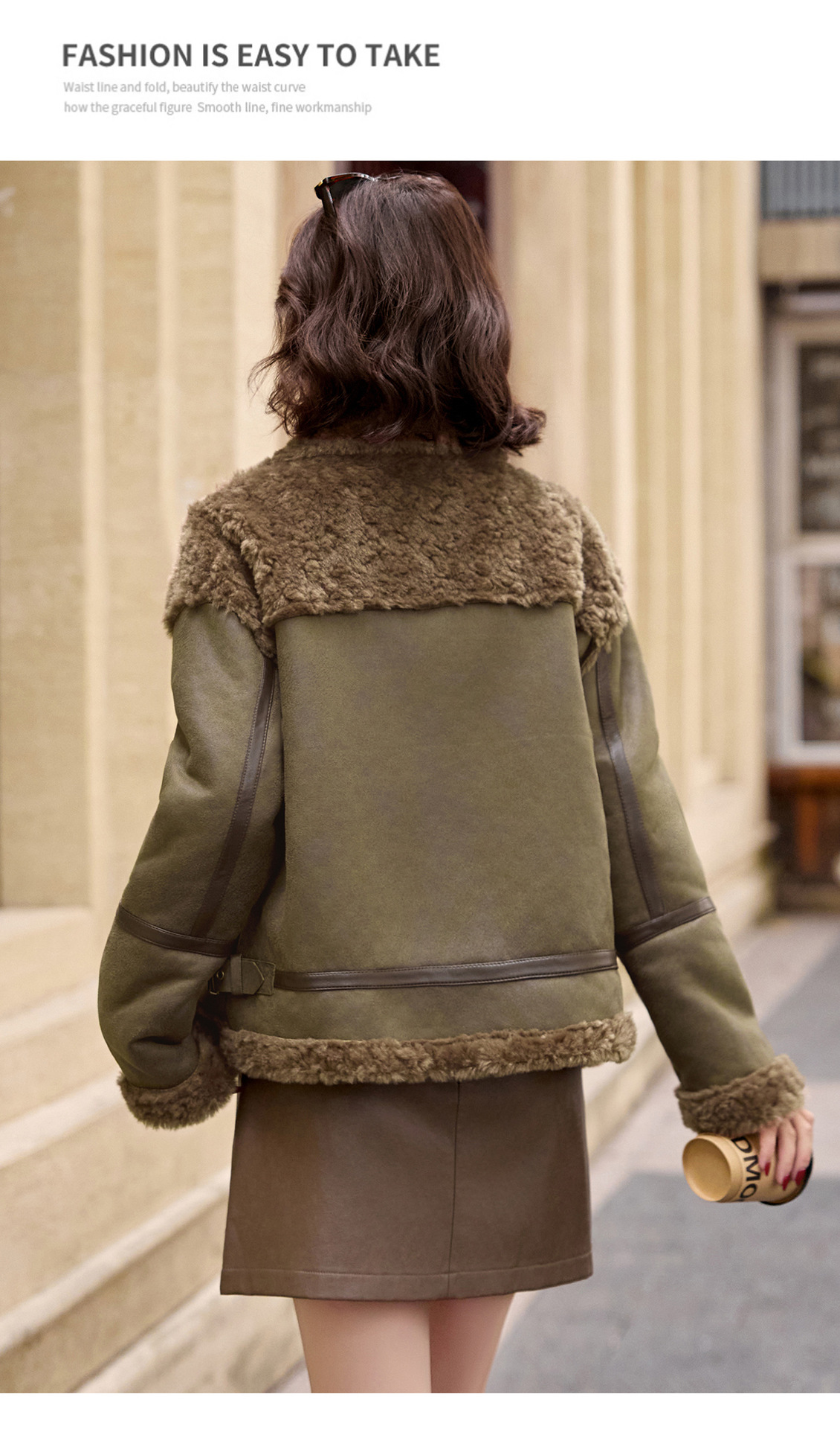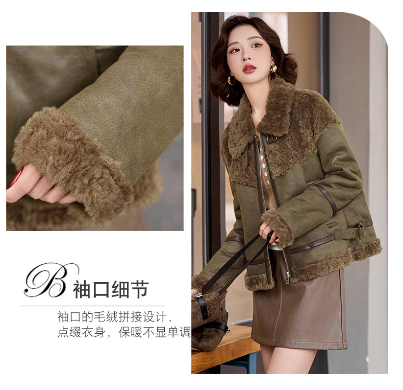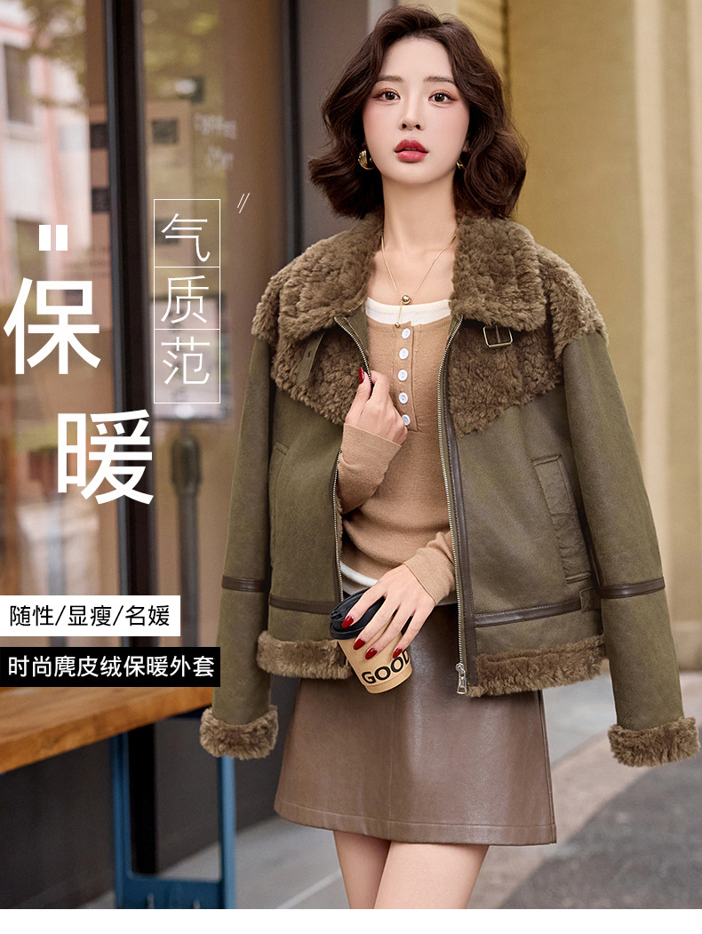 LJLM18015 2025冬装新款时尚气质女装翻领百搭长袖女麂皮绒皮毛一体短外套