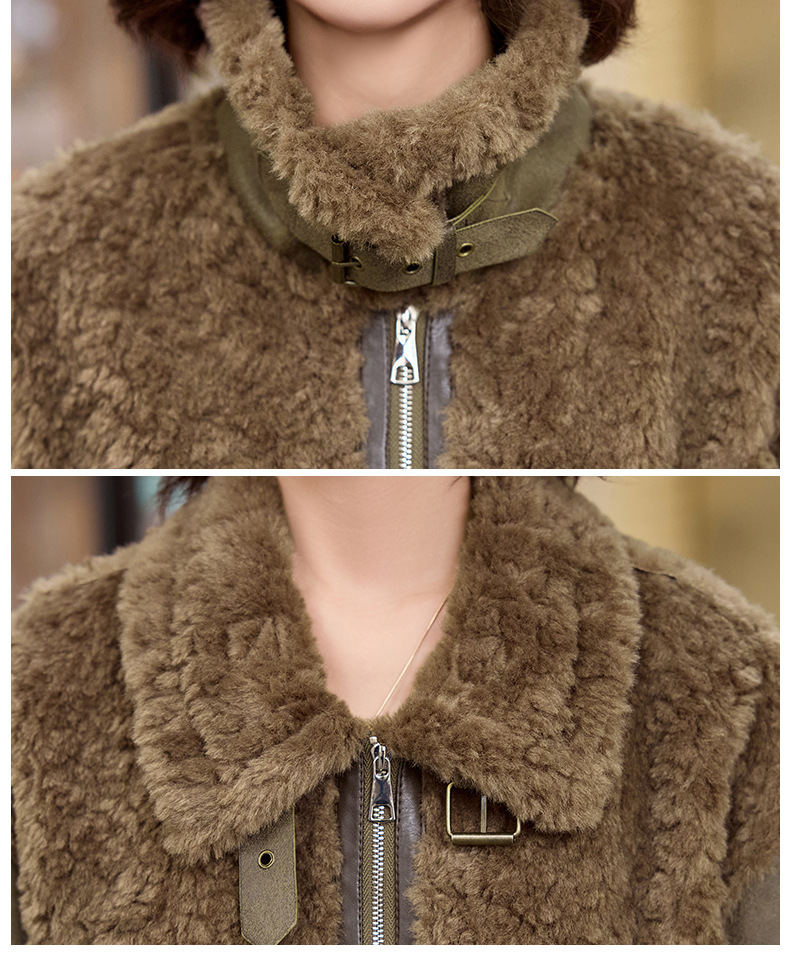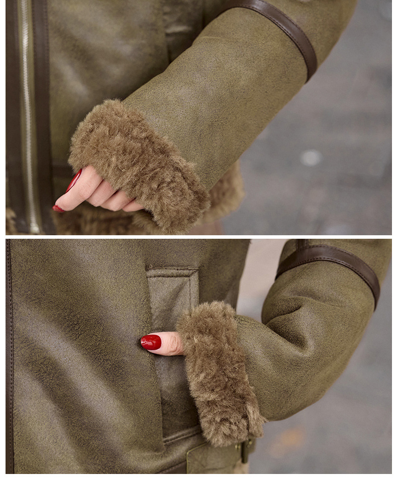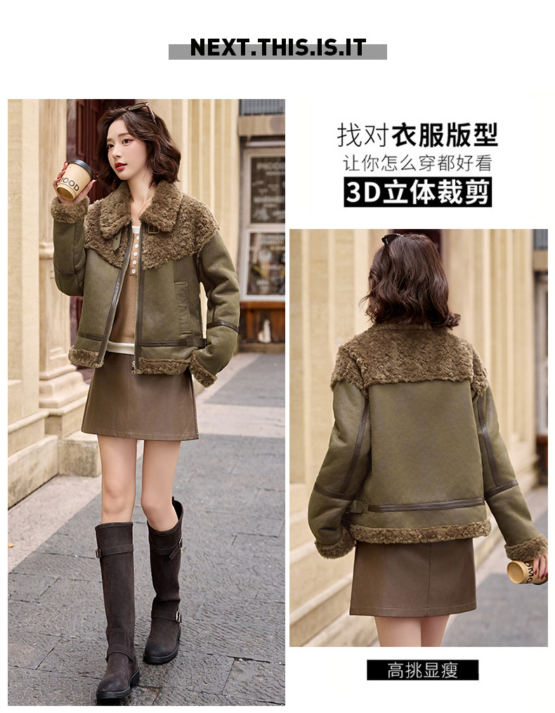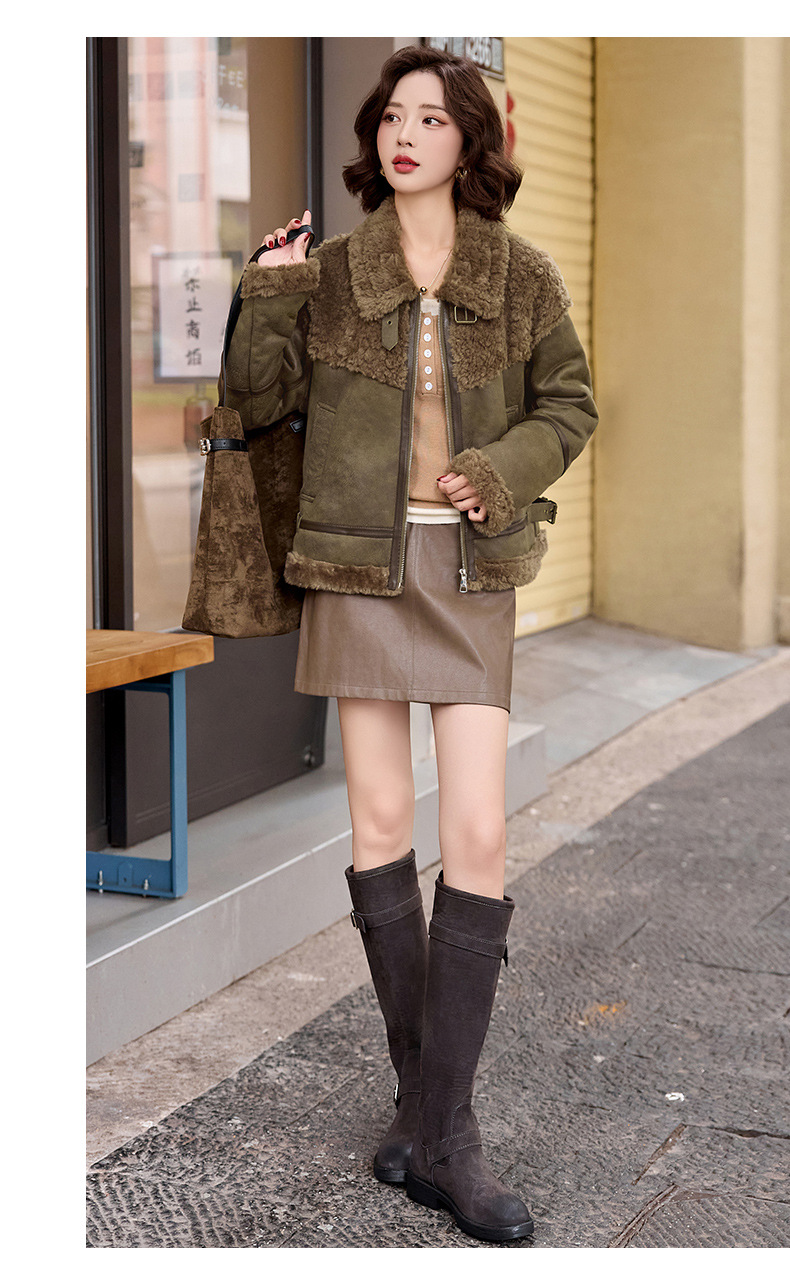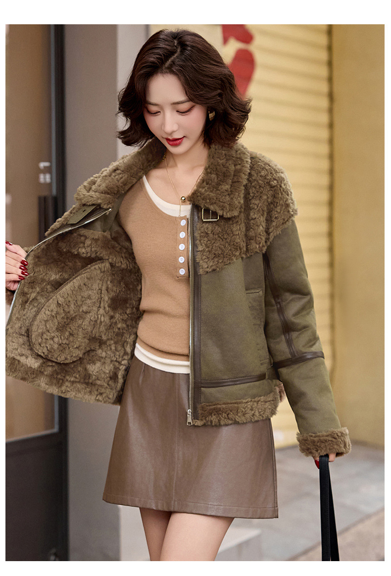 LJLM18015 2025冬装新款时尚气质女装翻领百搭长袖女麂皮绒皮毛一体短外套