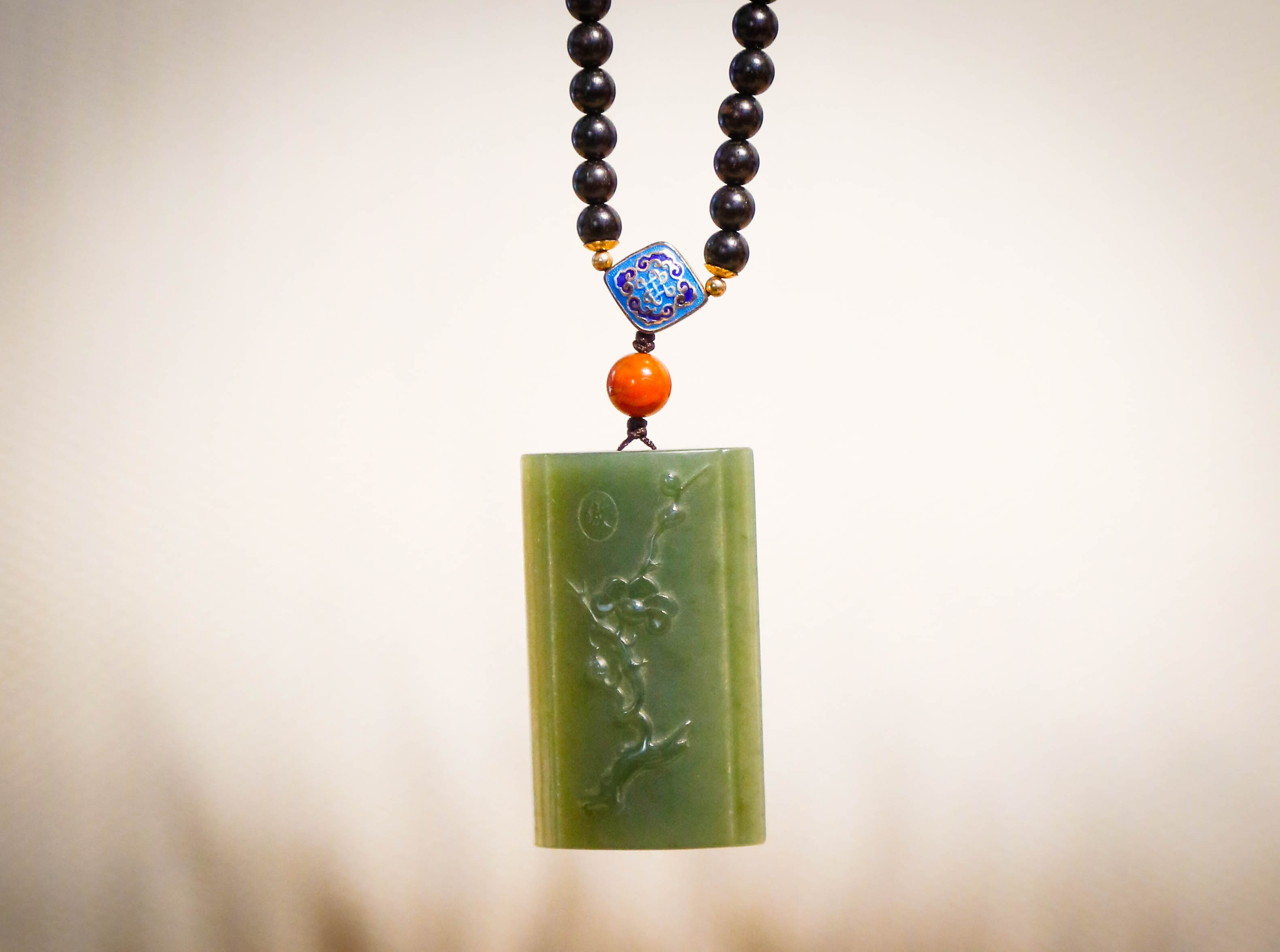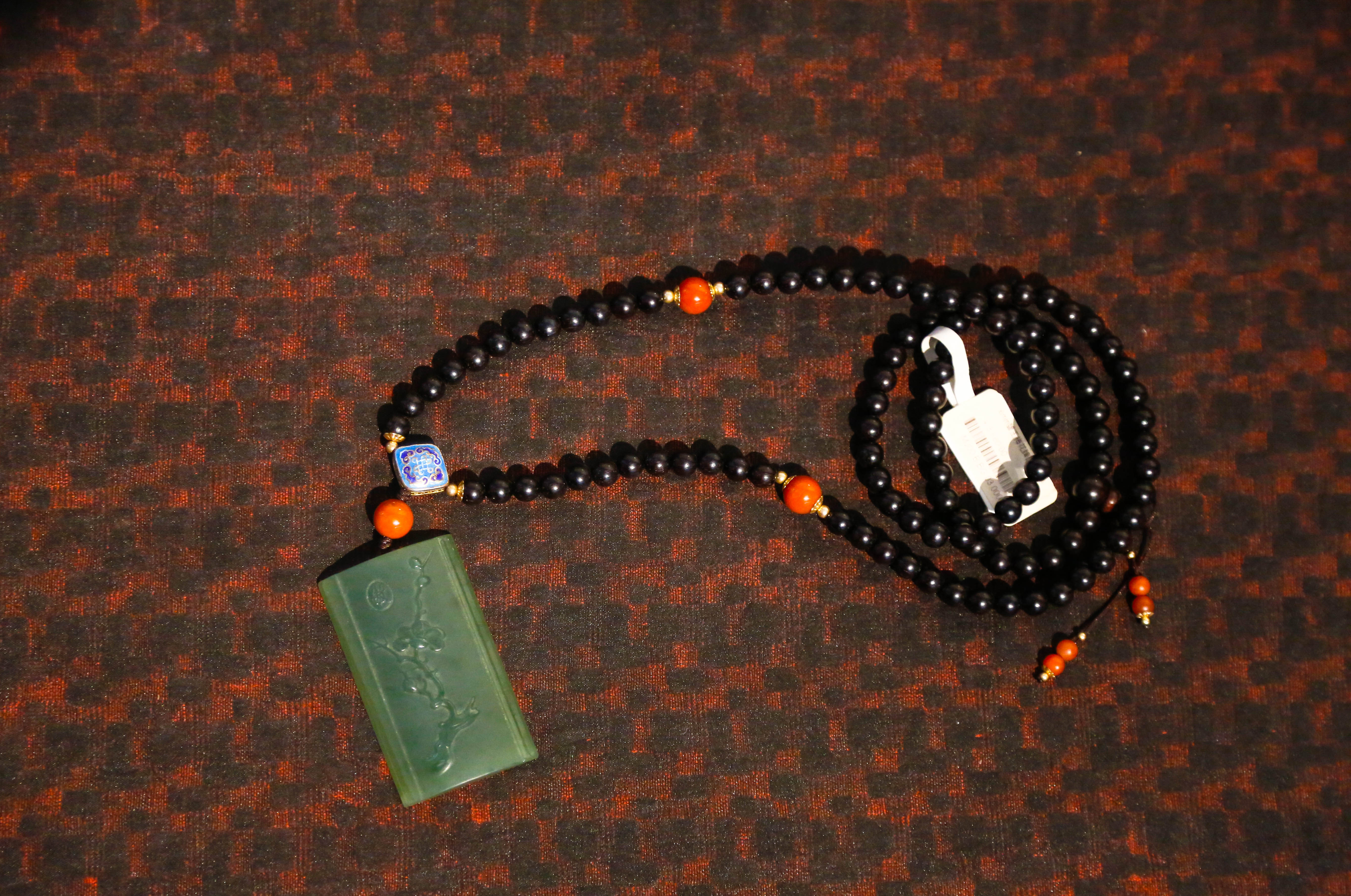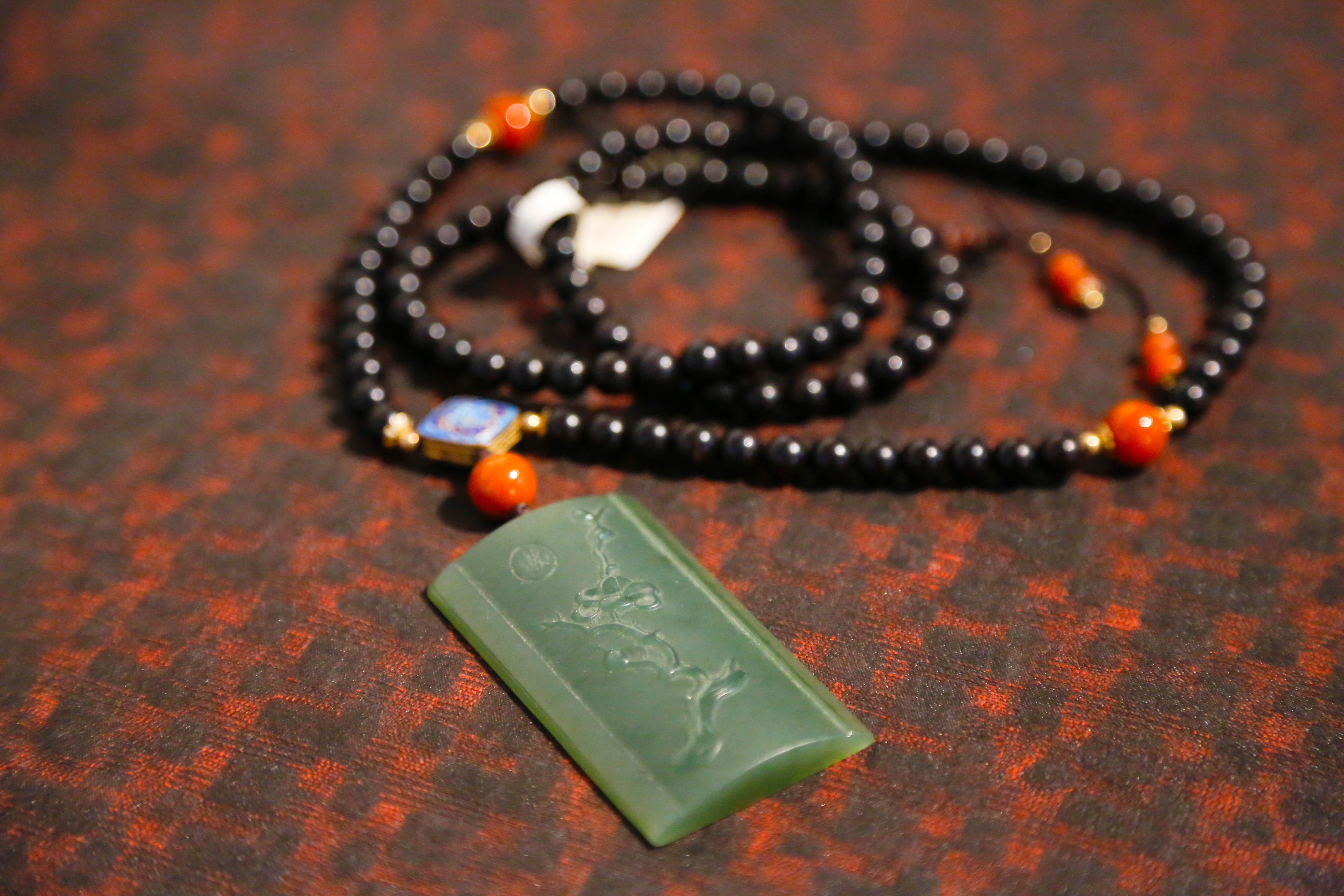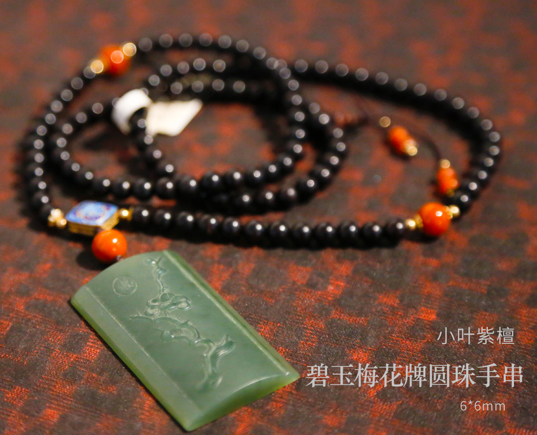 「小叶紫檀」碧玉梅花牌圆珠手串 6*6mm