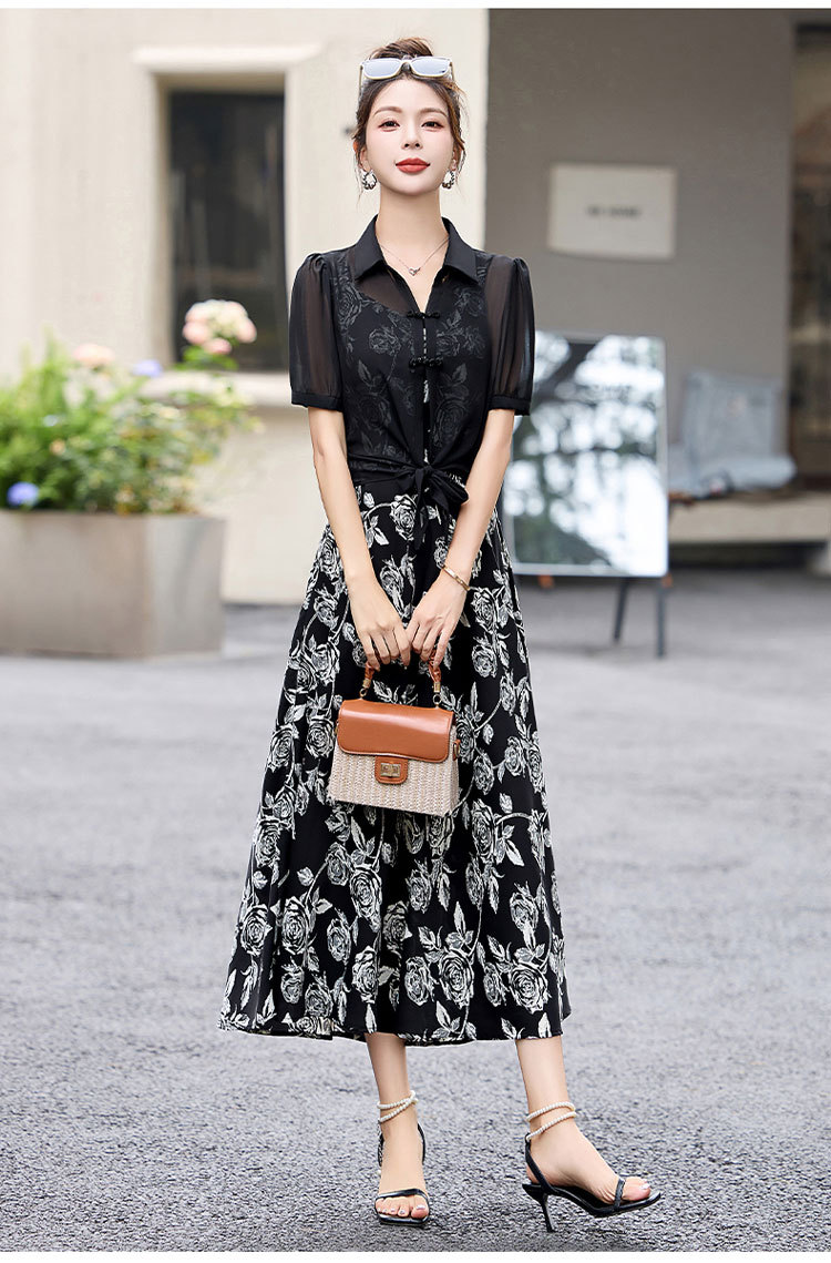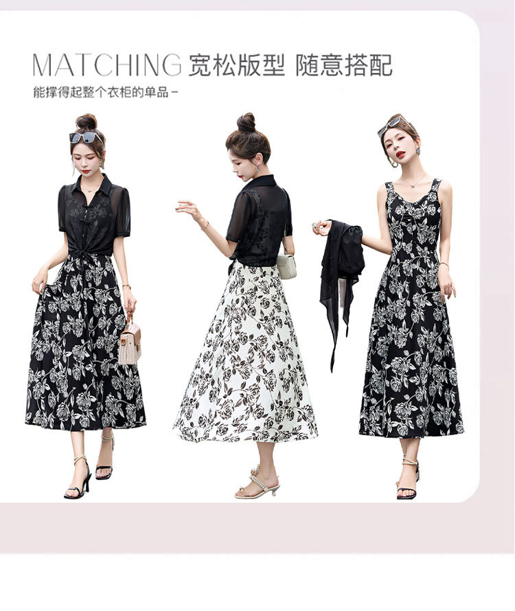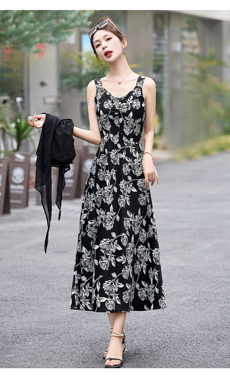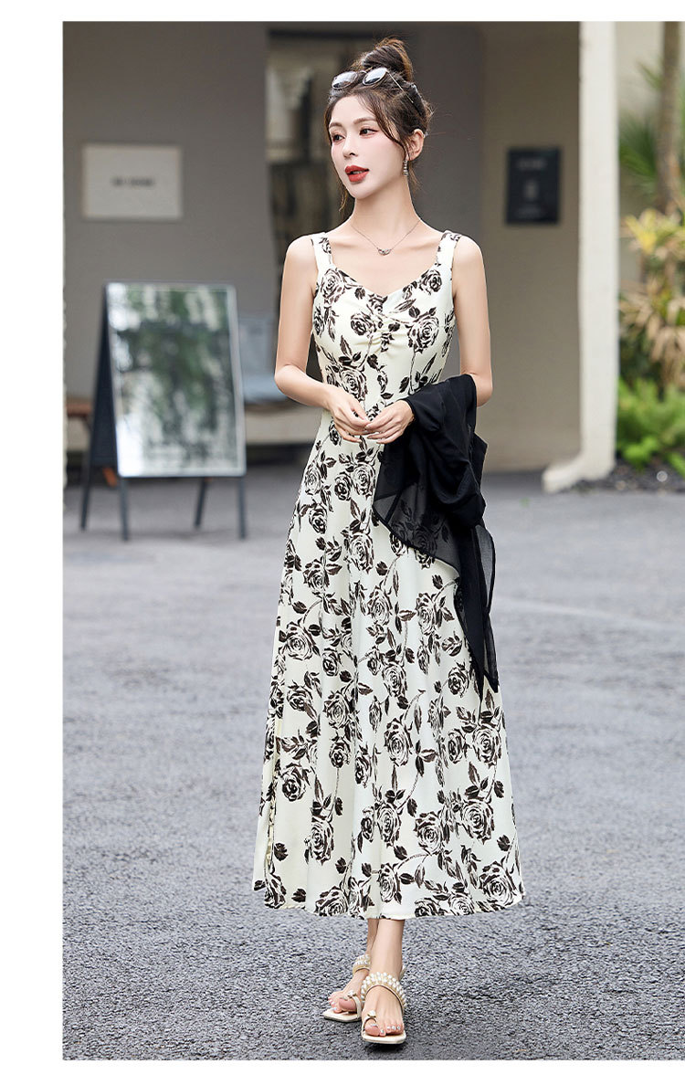 WZ52839夏季上新气质时尚简约优雅印花背带连衣裙搭小衫洋气减龄透气