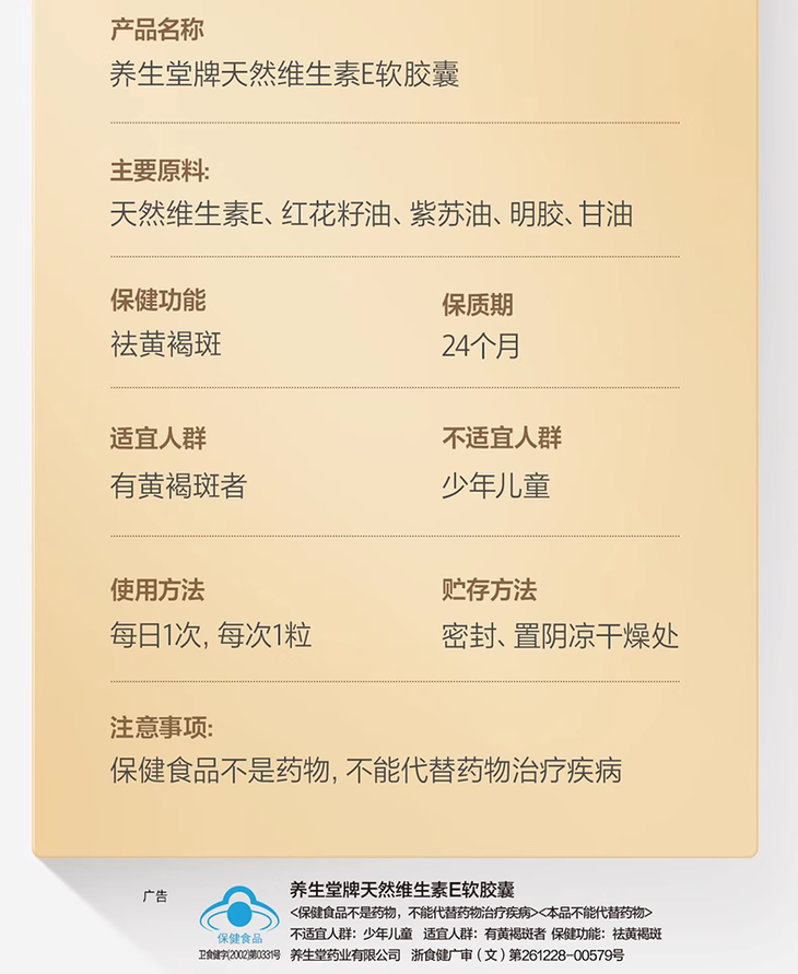 严选 | 养生堂维E软胶囊 200粒/瓶