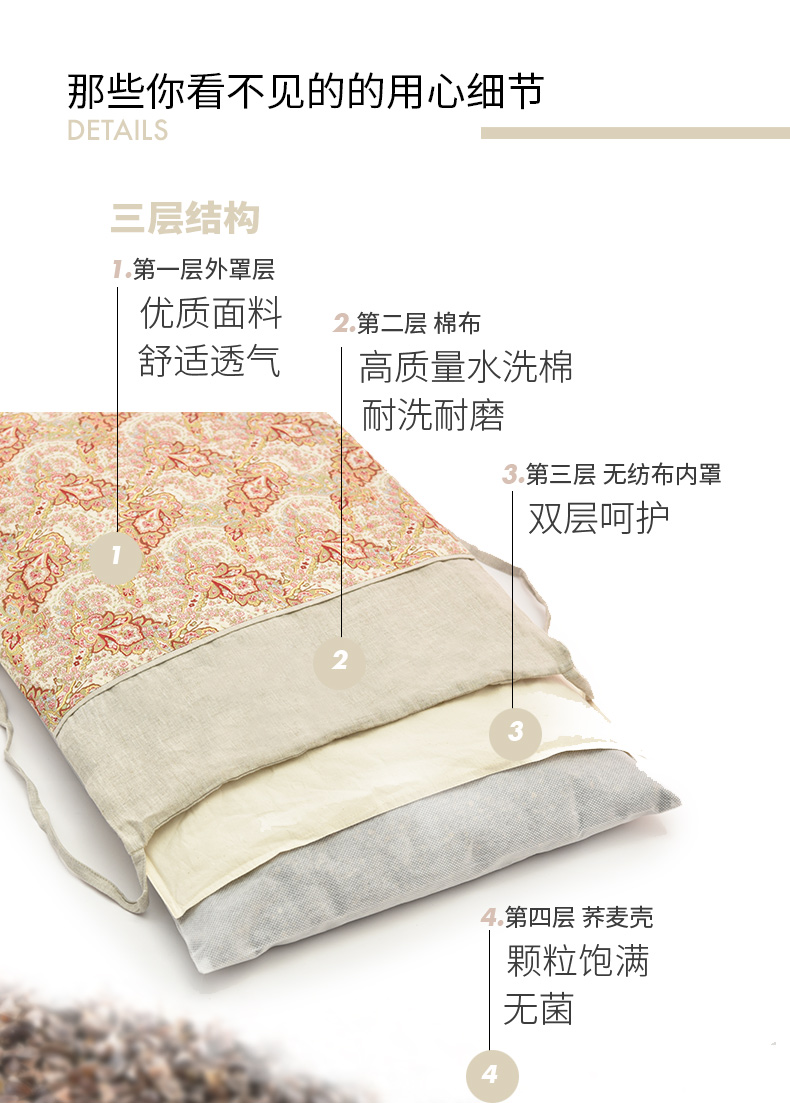 蕾丝佩斯利系列荞麦壳枕头全荞麦壳成人护颈枕