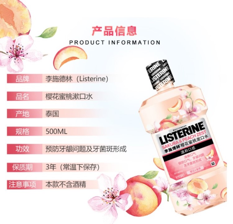 美丽市场超市李施德林樱花蜜桃漱口水500毫升