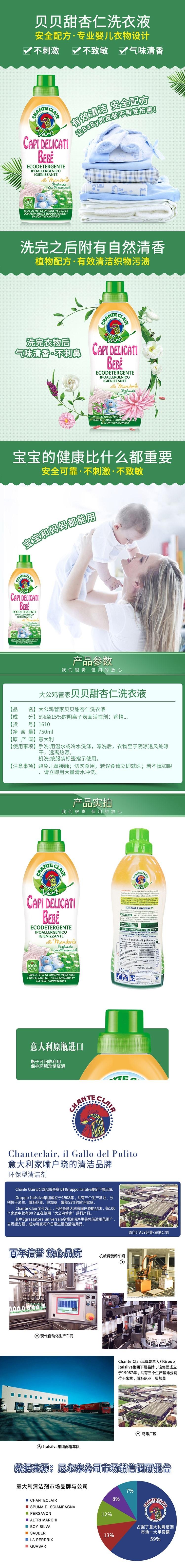 大公鸡管家 儿童甜杏仁洗衣液(橙色)750ml 8015194516109