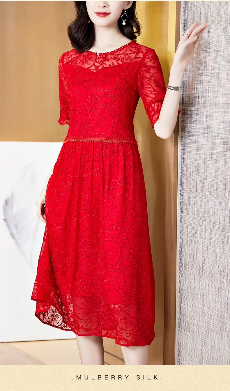 SM-8203035夏季新款婚礼宴会纯色中国风刺绣真丝连衣裙