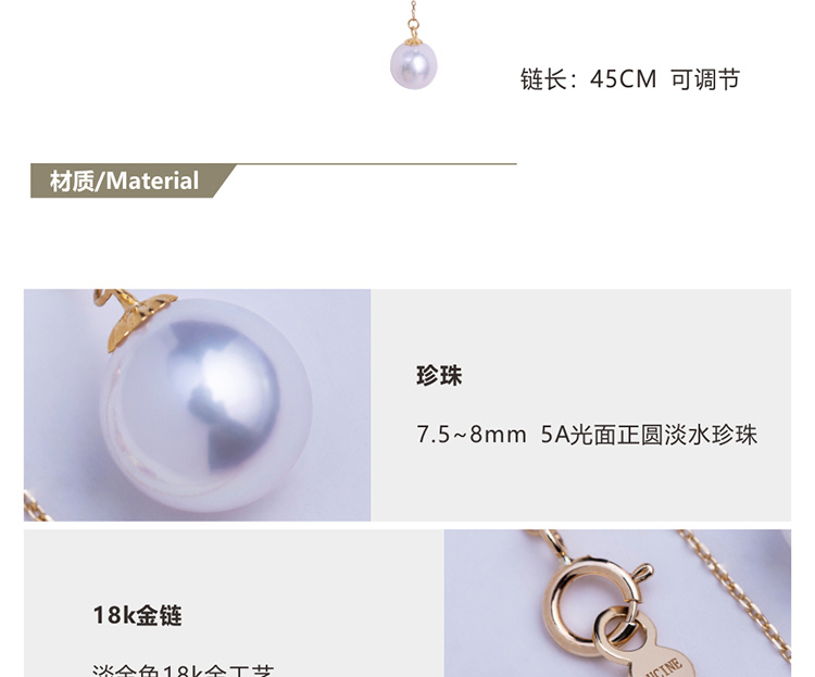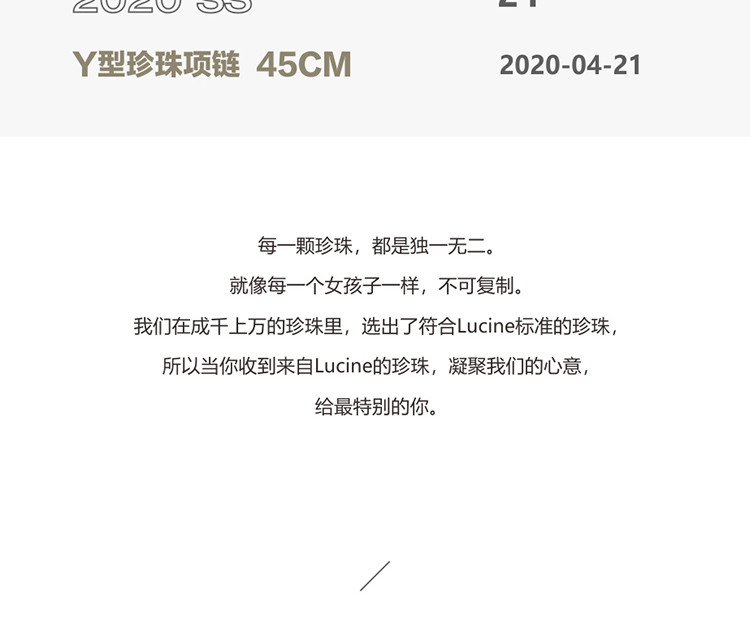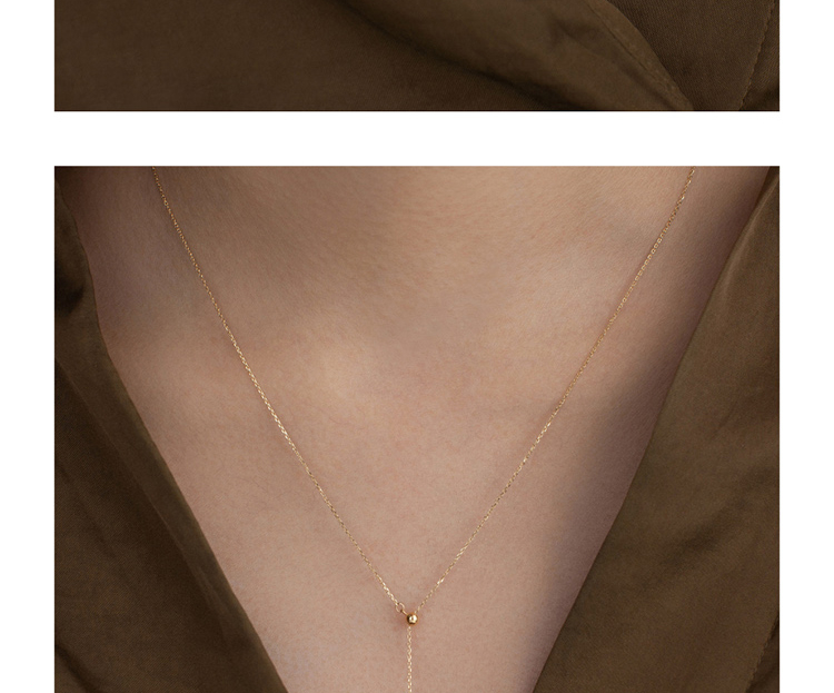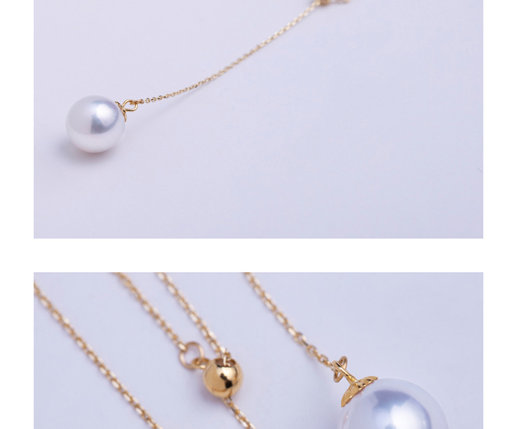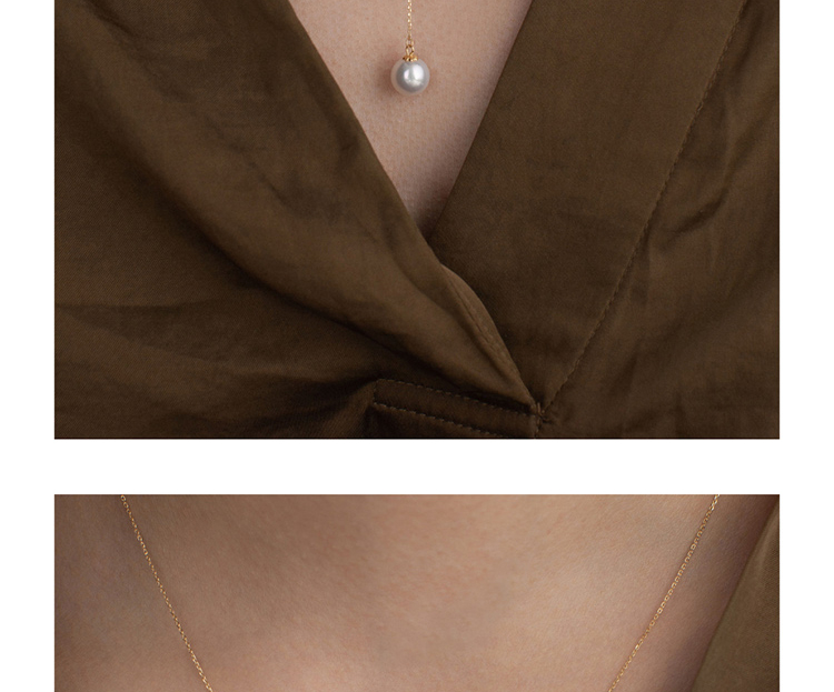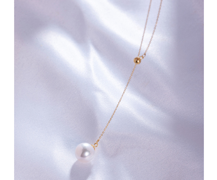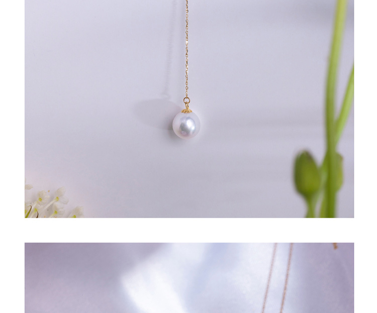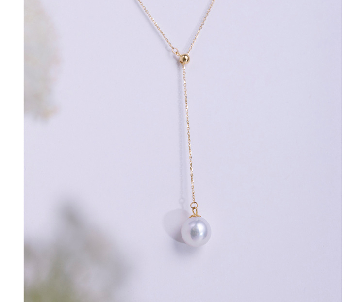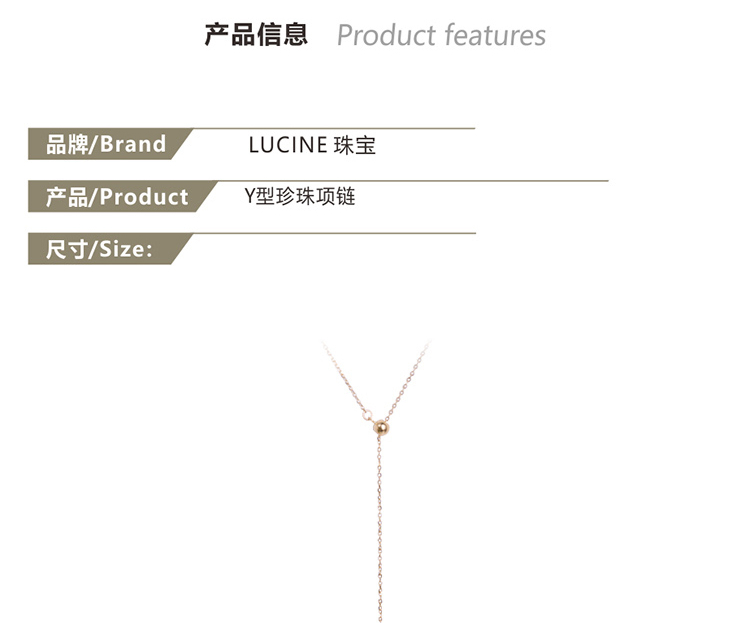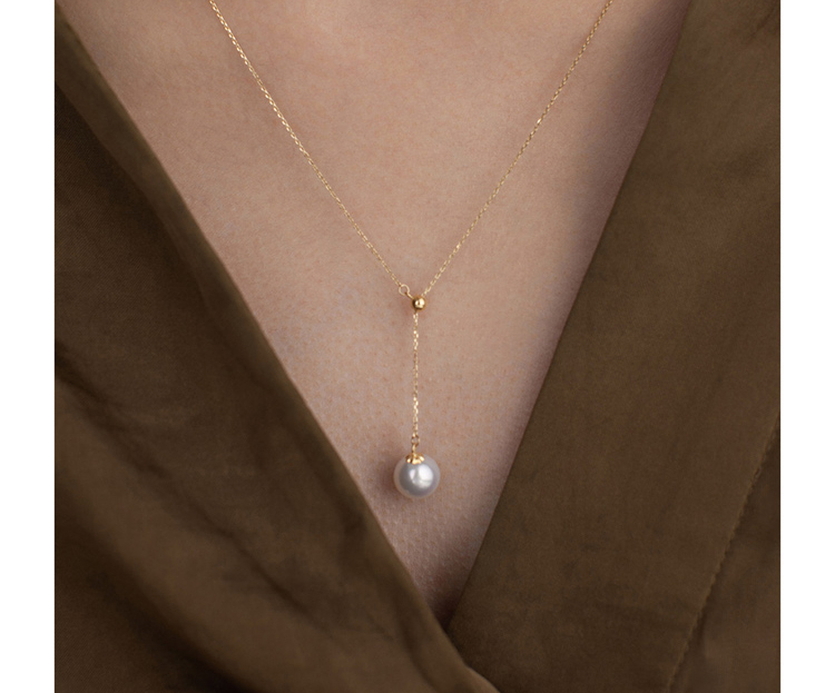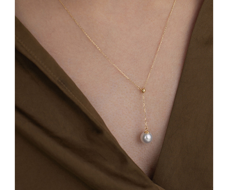 LUCINE Y型18k黄金单颗正圆淡水珍珠吊坠可调项链锁骨链年轻时尚