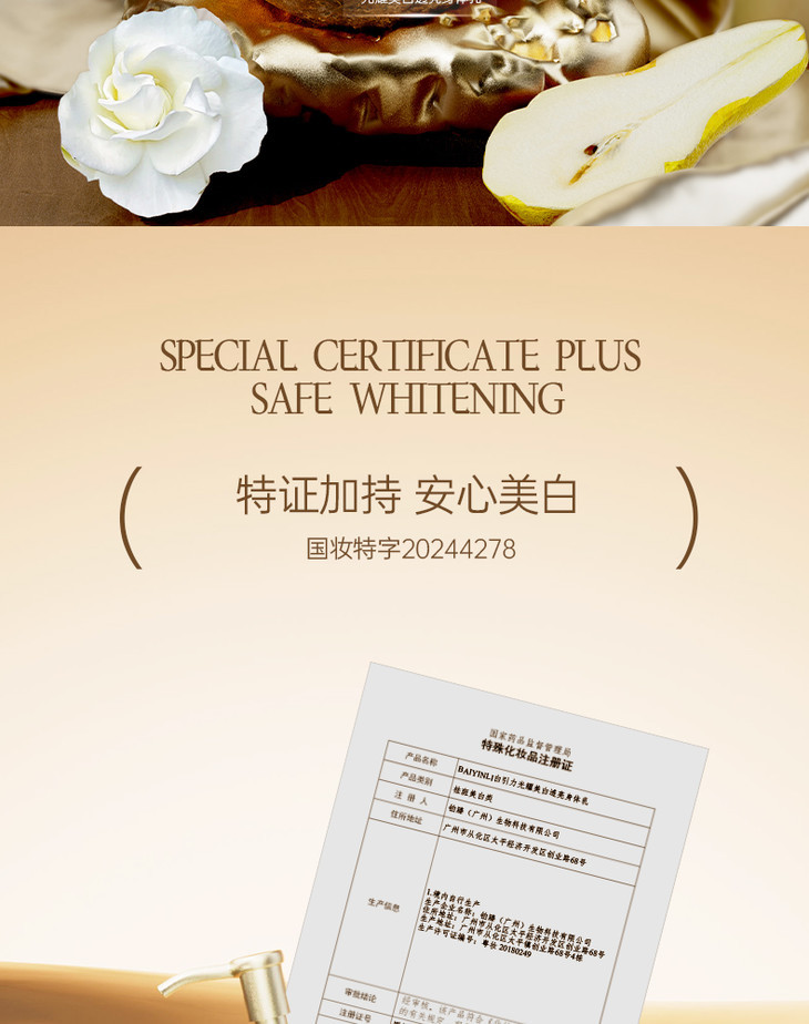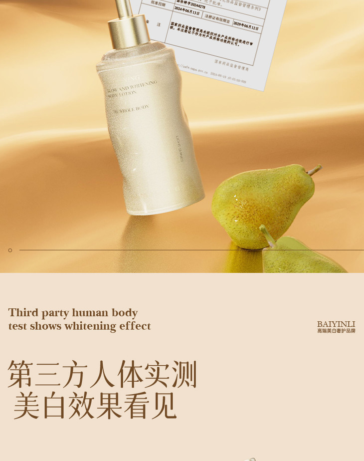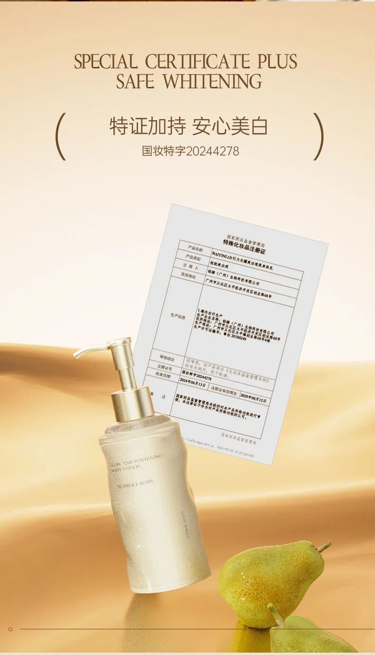 身体乳美白特征备案号:国妆特字20244278,真实可查,假冒必究!!