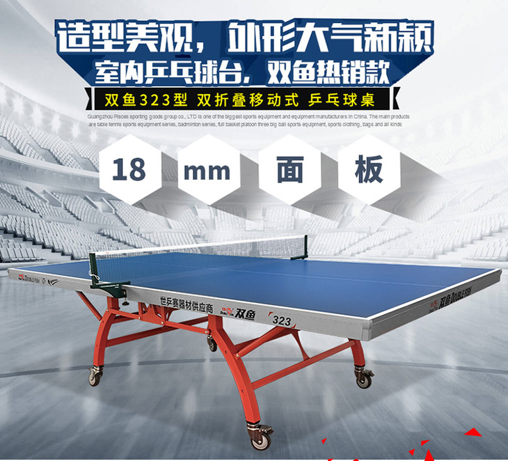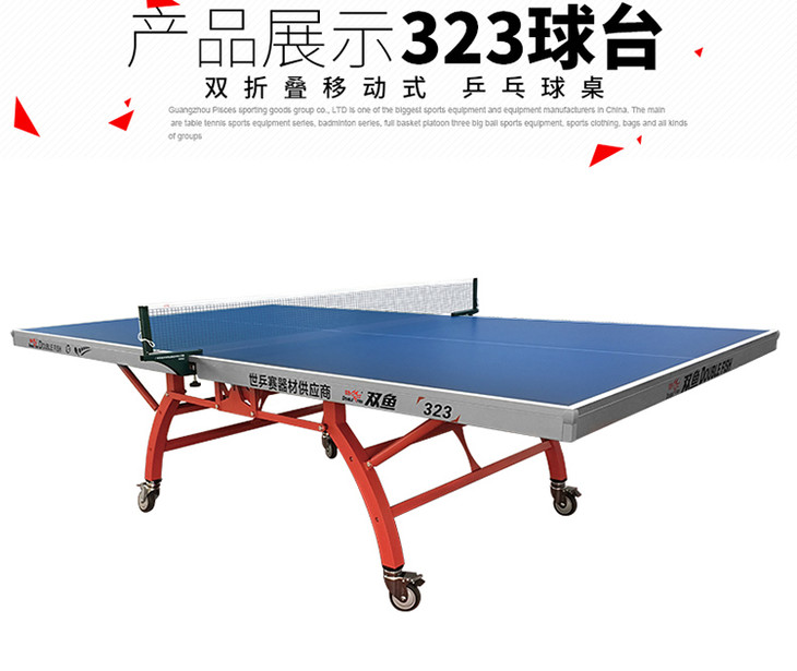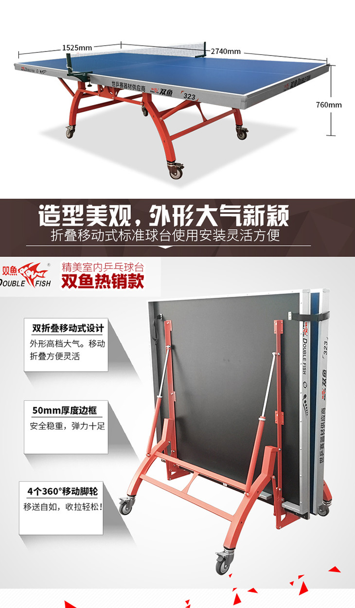 双鱼 323球台 家用折叠移动标准室内乒乓球台球桌