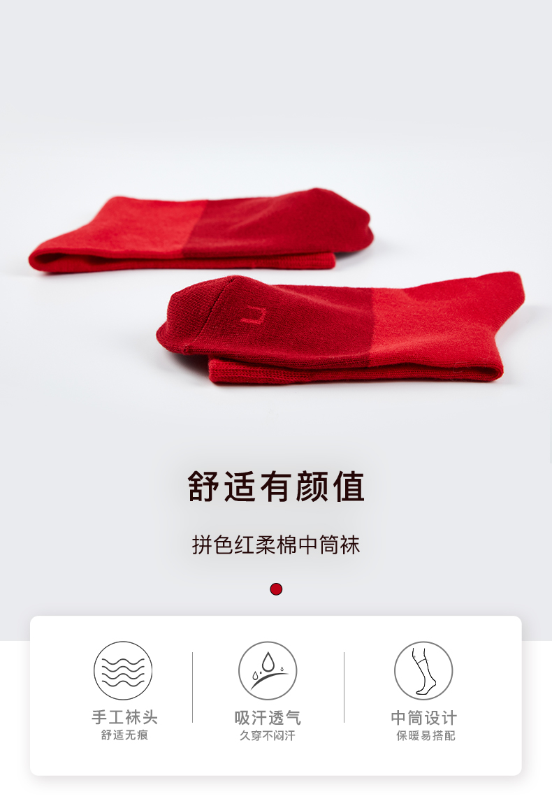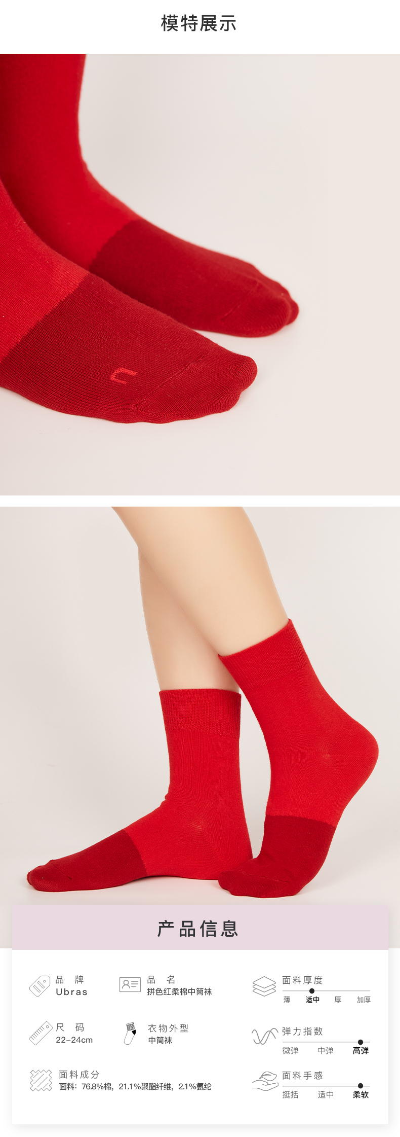 Ubras拼色柔棉中筒袜秋冬保暖袜舒适透气中筒袜ins潮